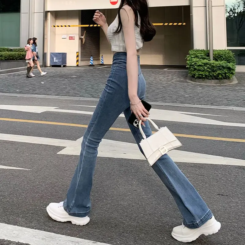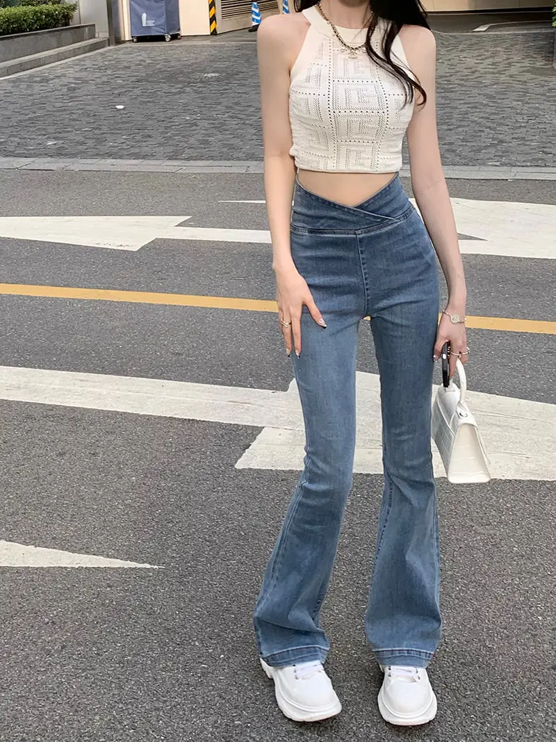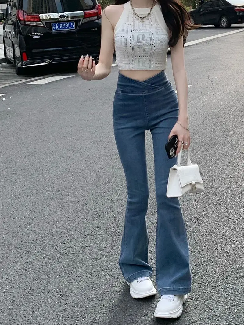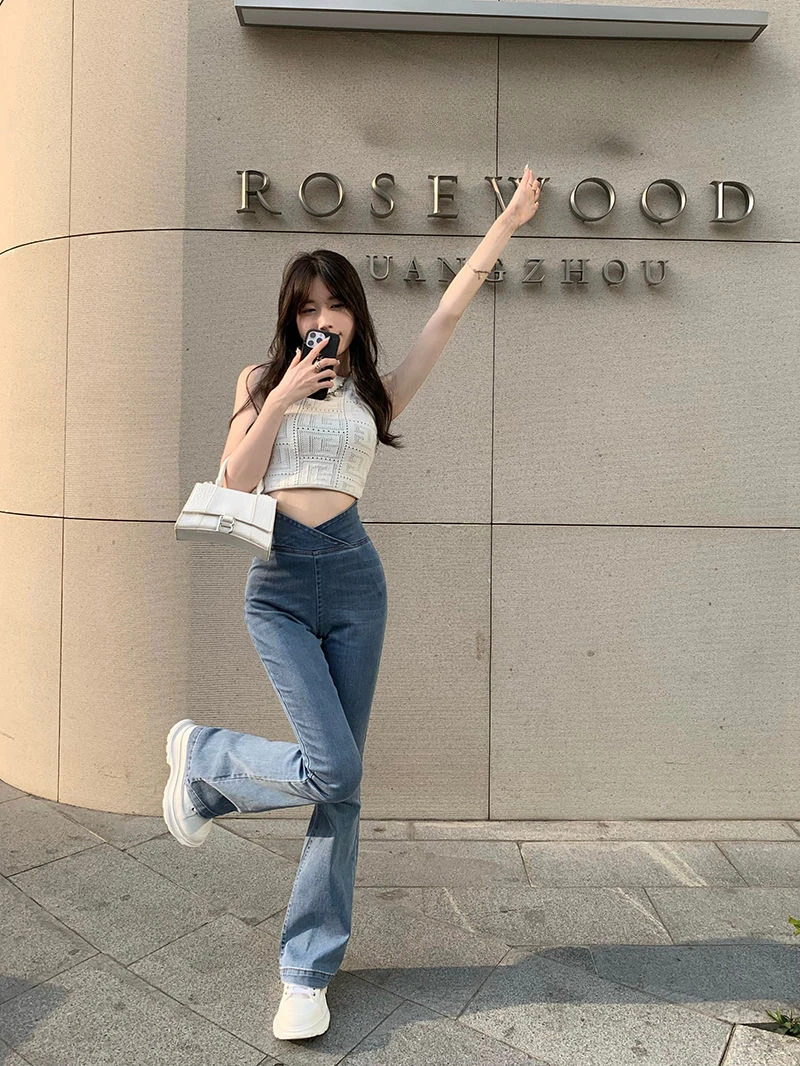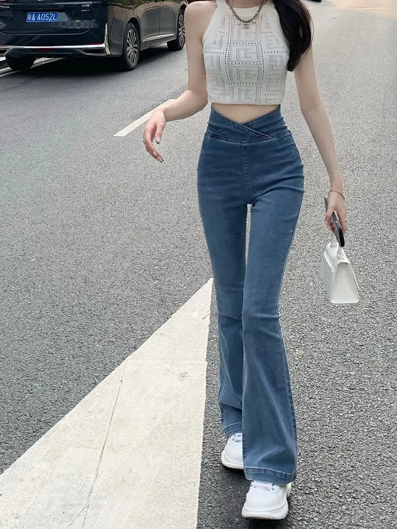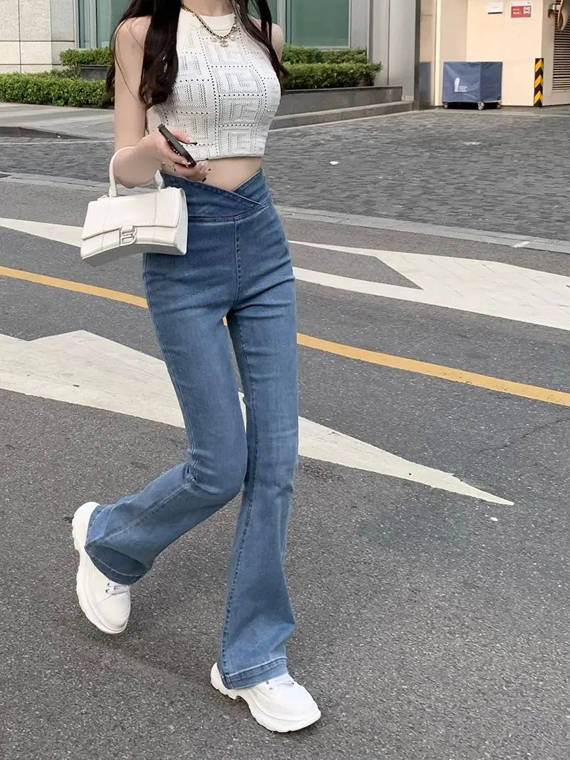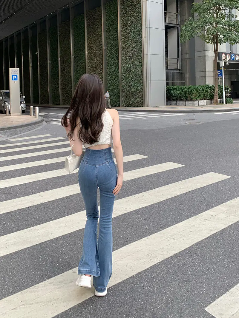 الأزرق الإناث كاوبوي السراويل عالية الخصر النار تمتد المرأة مضيئة الجينز 2025 الكورية نمط فاخر مصمم جودة السراويل الفضفاضة