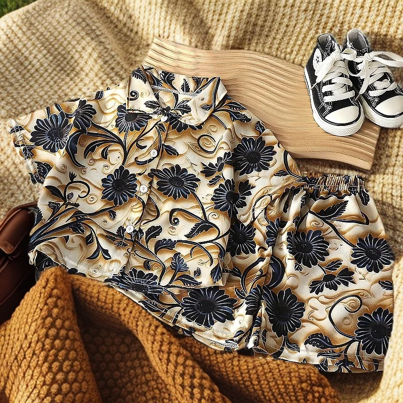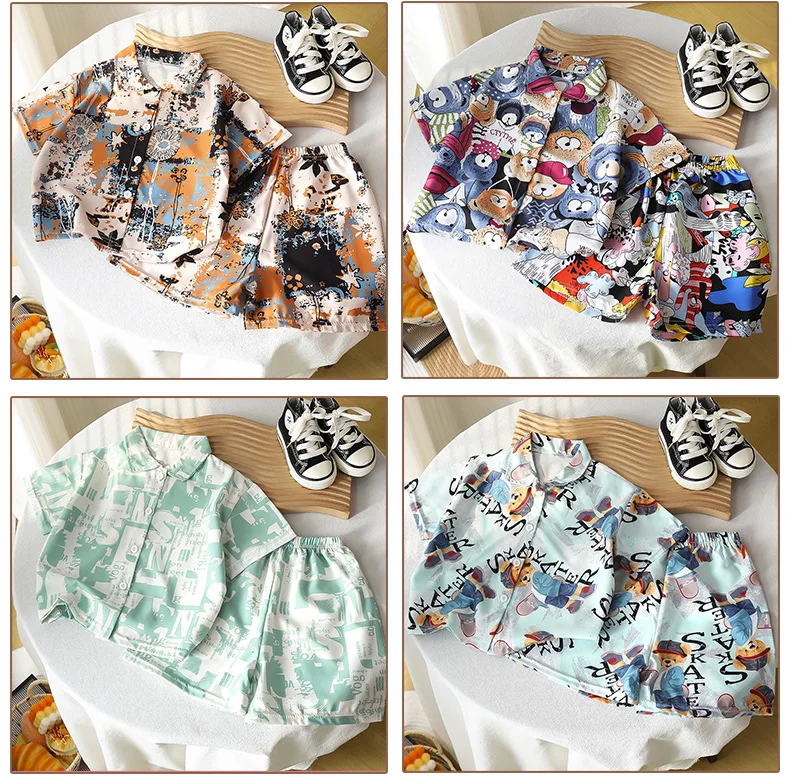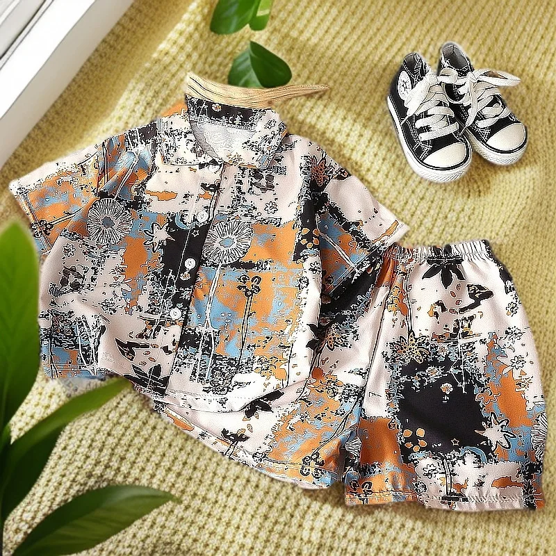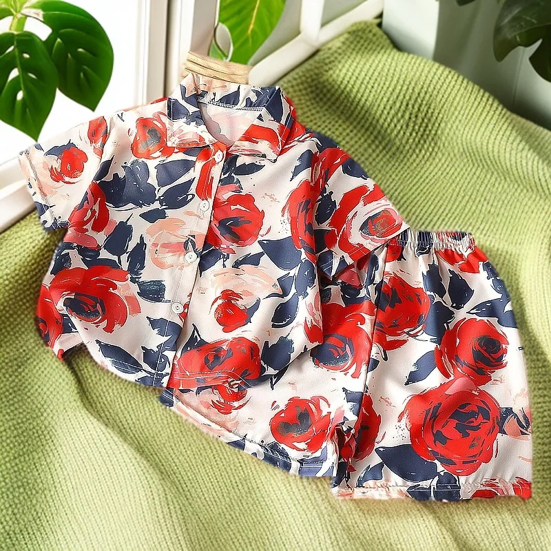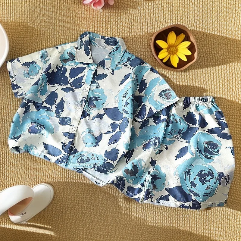 الأطفال الصيف عطلة نمط زهرة السراويل مجموعات زهرة قمصان + السراويل الأزهار 80-150 سنتيمتر الاطفال ملابس للبنين بنات
