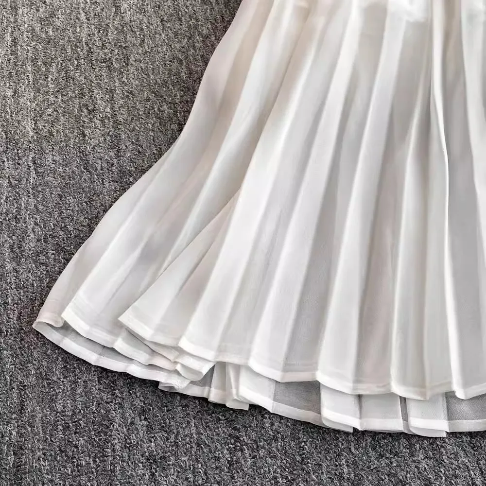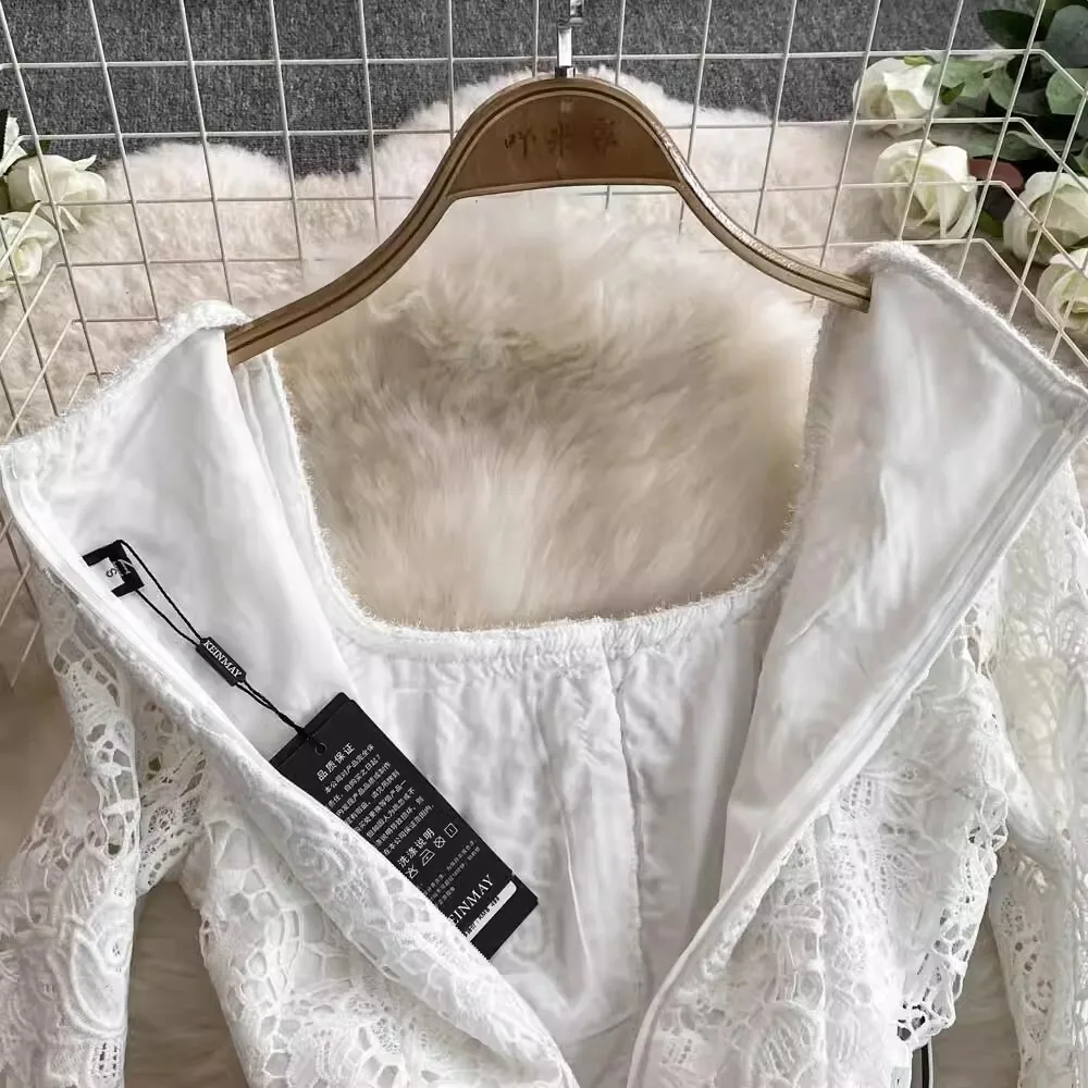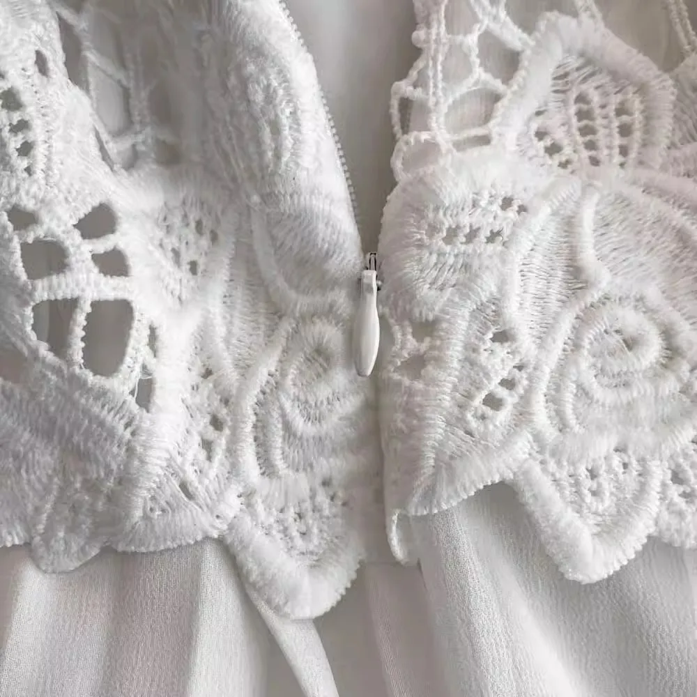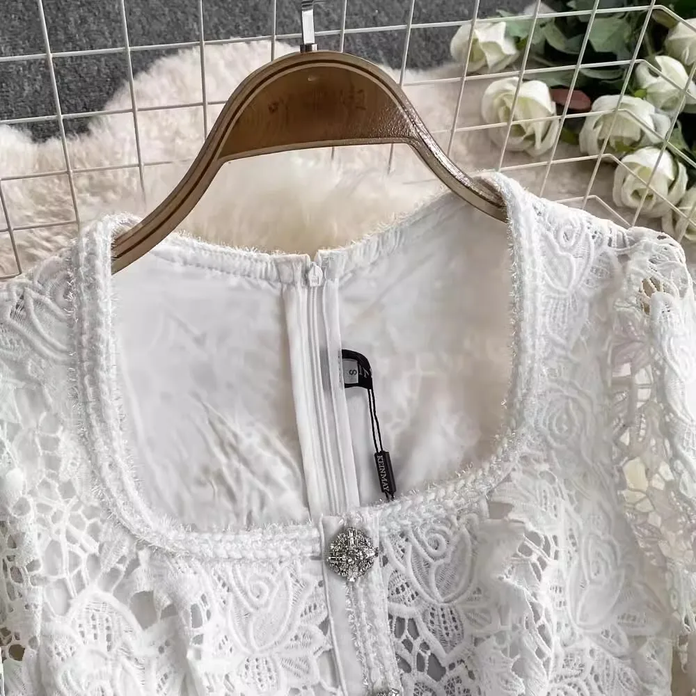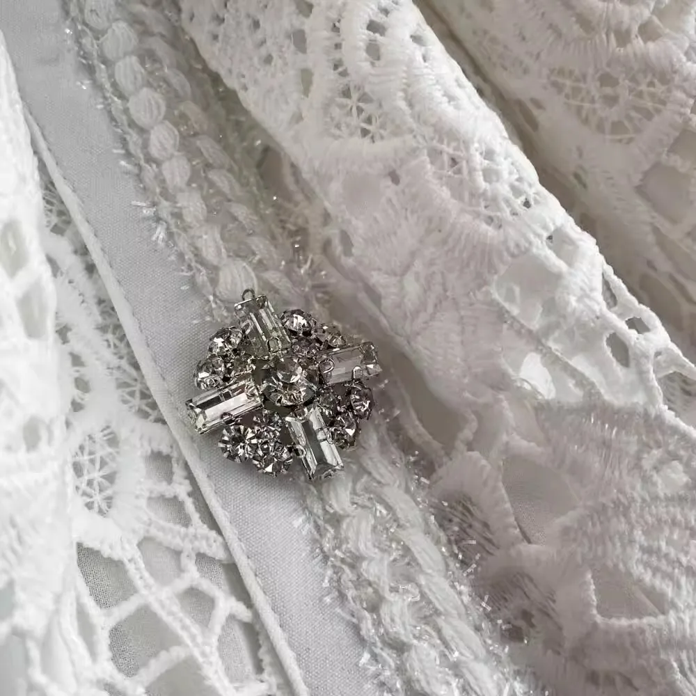 الخريف أنيقة الجوف خارج زهرة التطريز الأبيض الدانتيل فساتين الشيفون المرأة كريستال الماس حزام مطوي ماكسي فساتين الحفلات