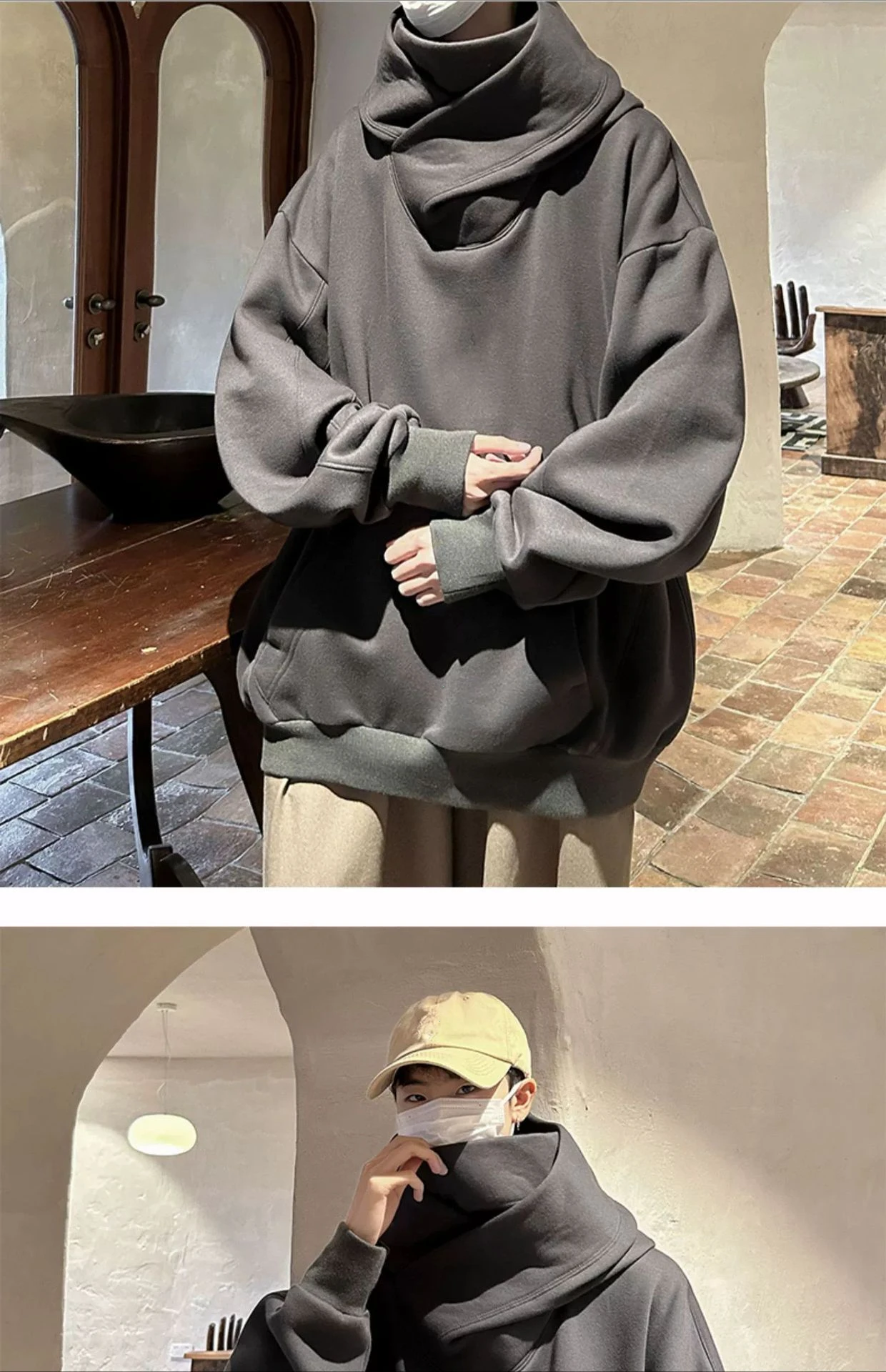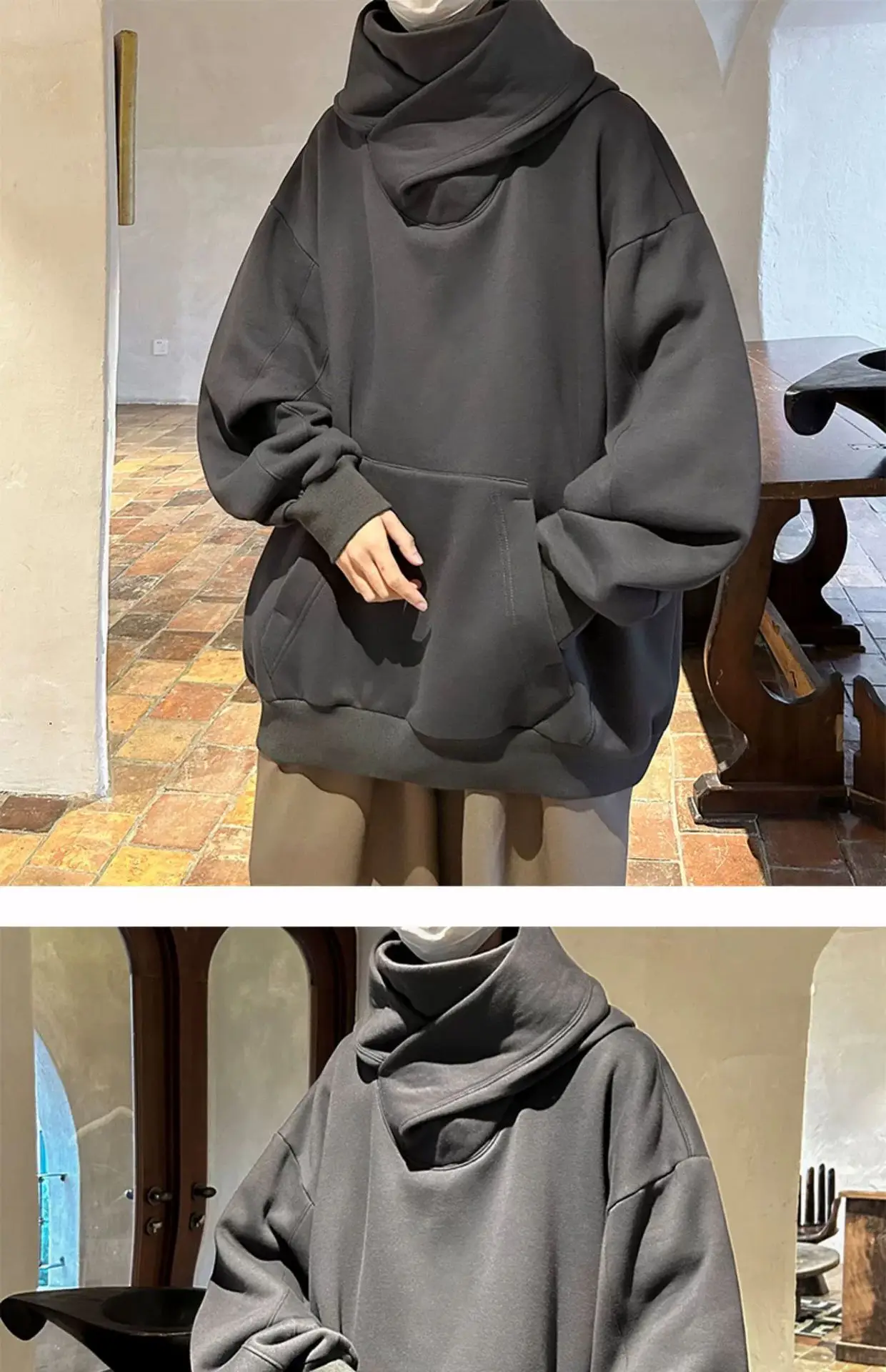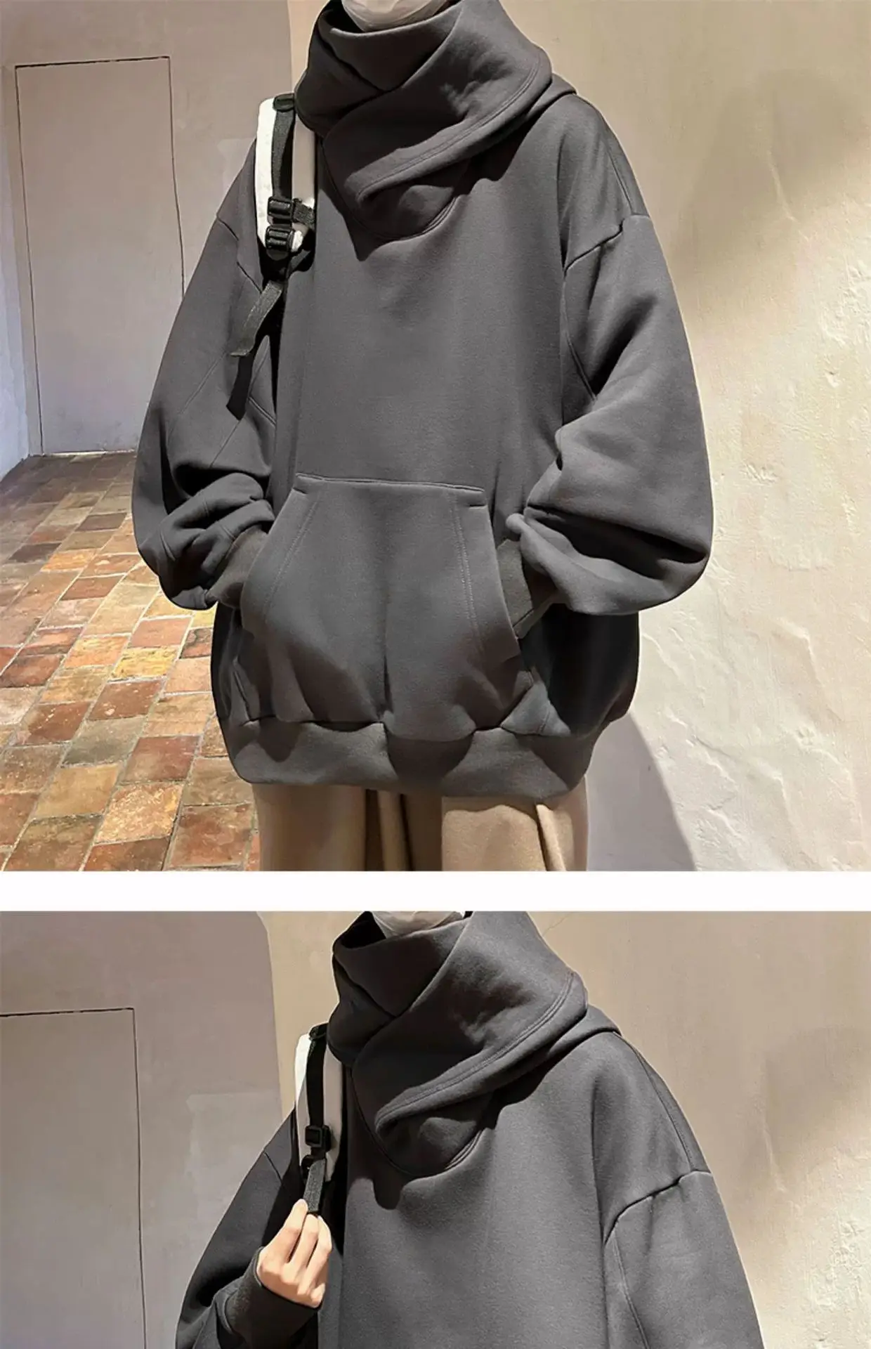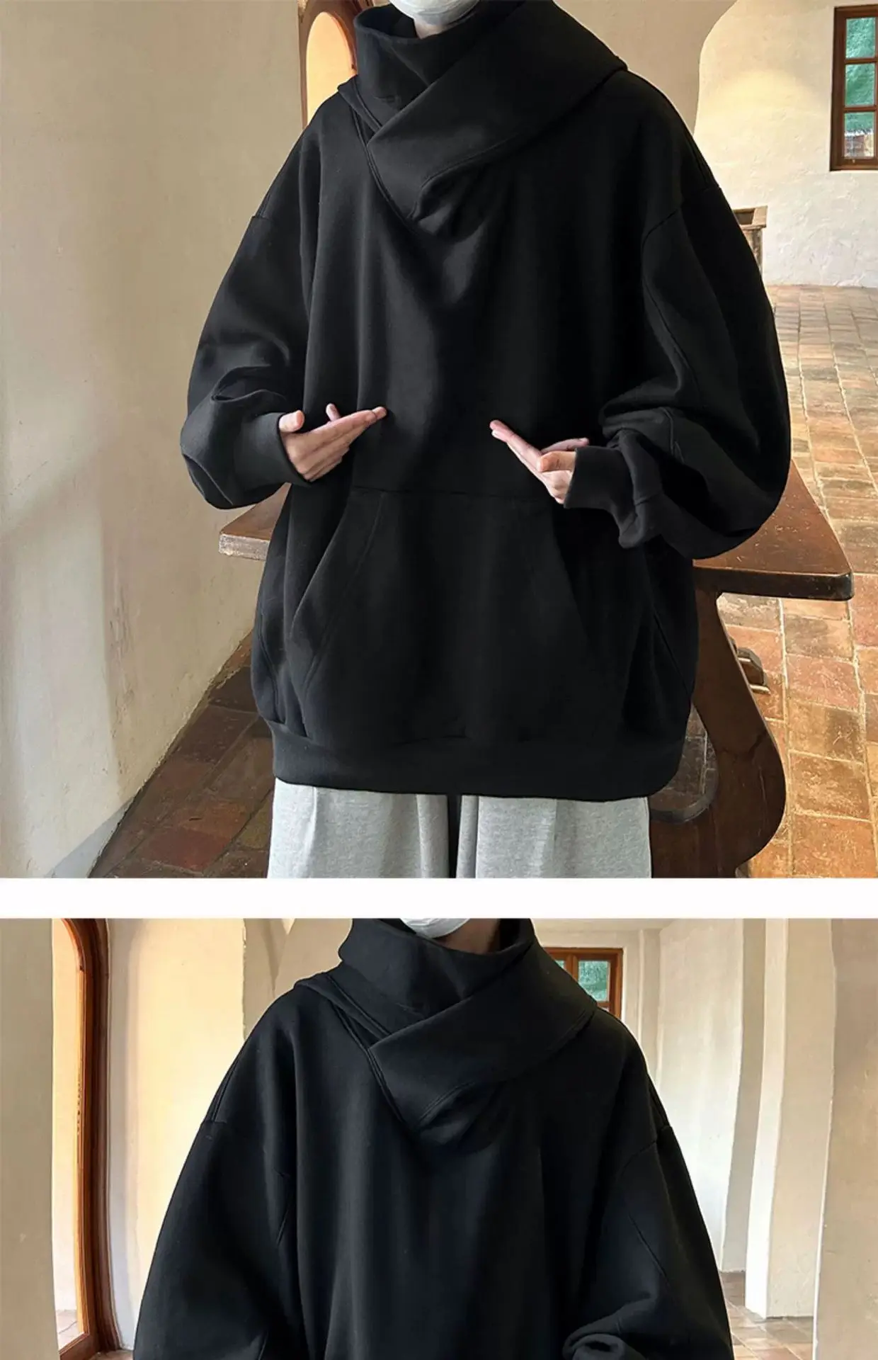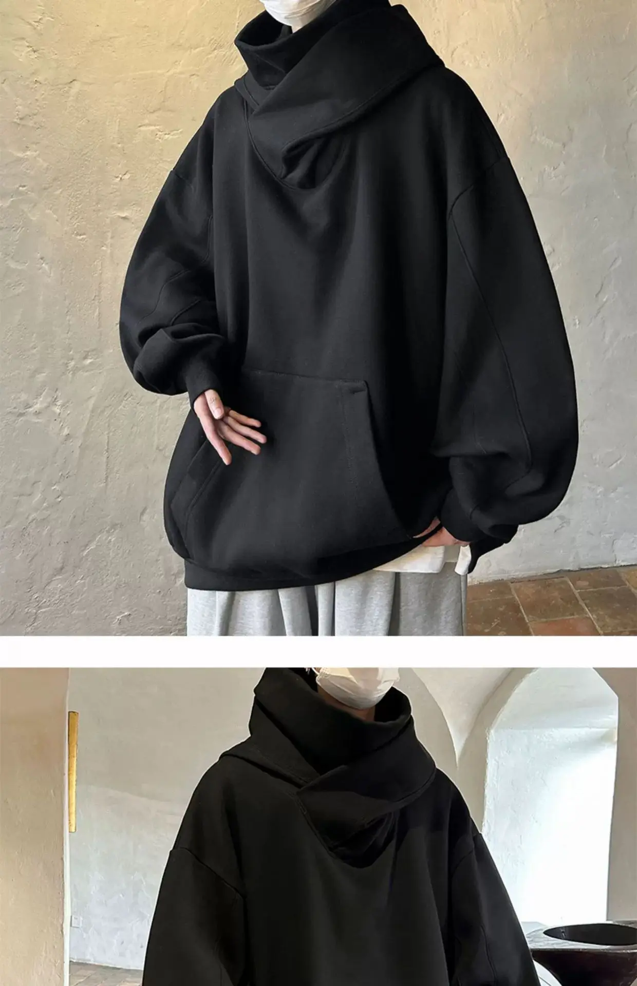 الخريف بلون النينجا الياقة المدورة هوديس للرجال Y2K خمر الصوف بلوزات الهيب هوب اليابانية الشارع الشهير المتضخم هوديي