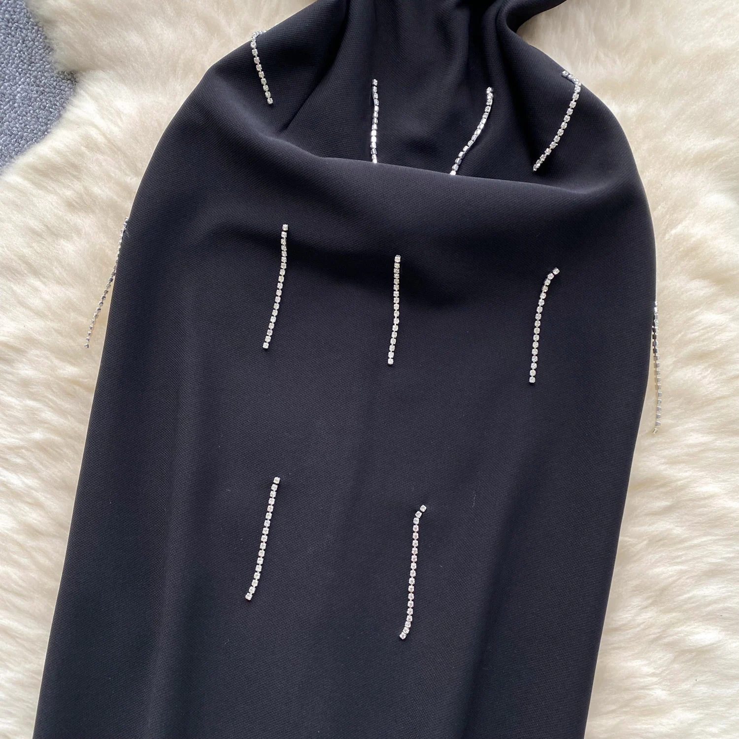 الديكور حجر الراين شرابات الرسن أكمام اللباس الأساسي أزياء مثير أنيقة أنيقة فساتين النساء ضئيلة النساء