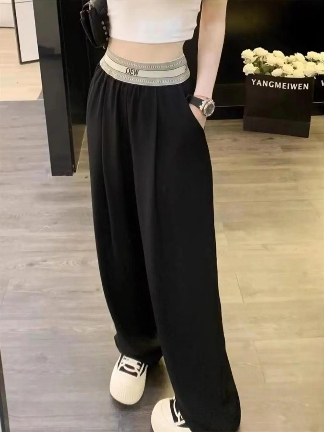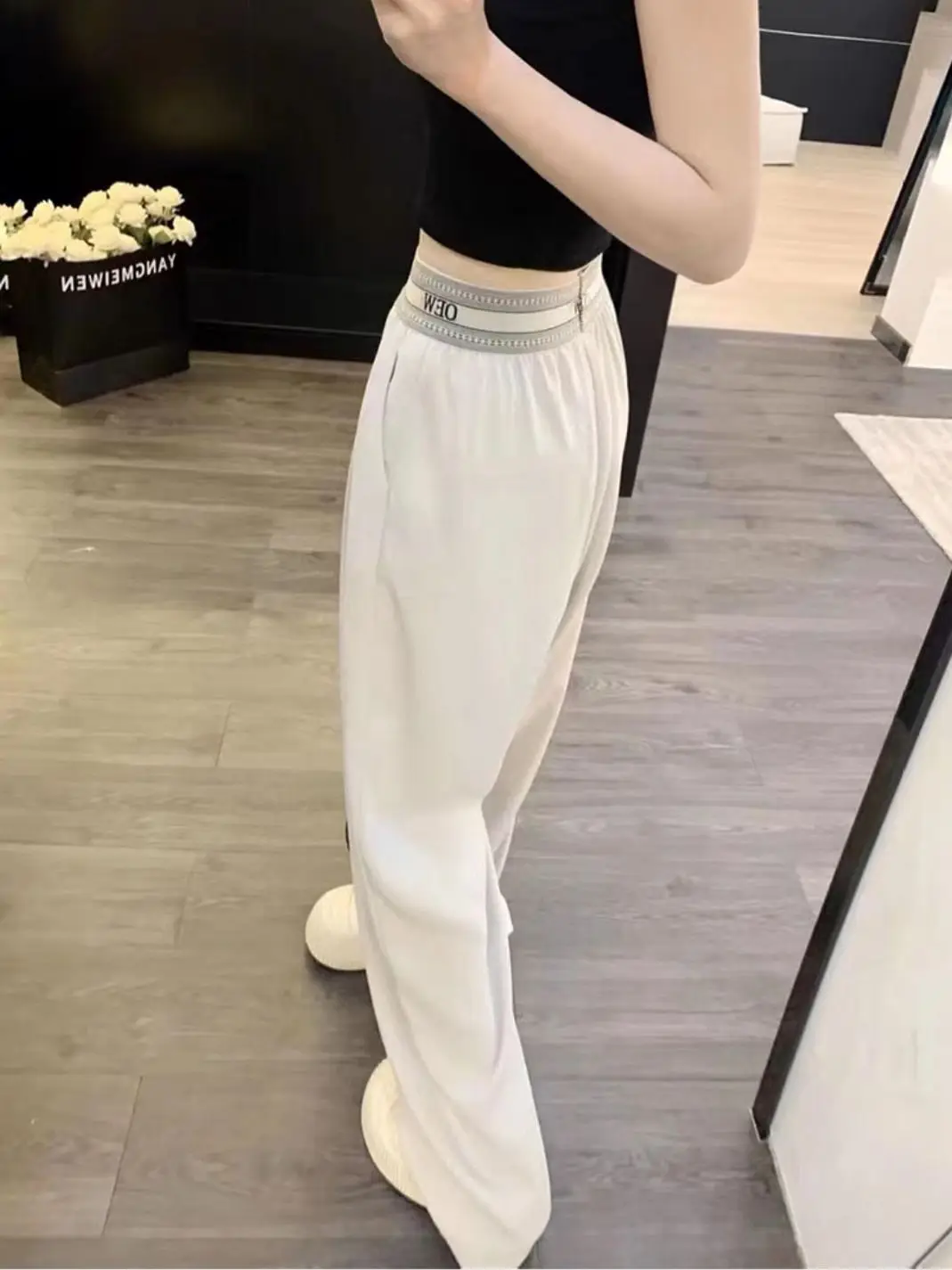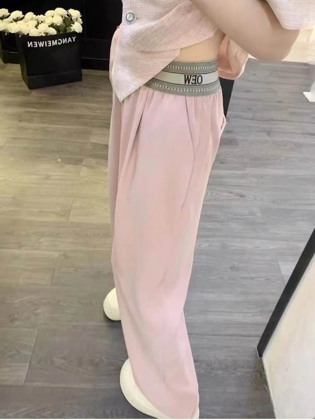 الربيع الصيف البساطة مكتب سيدة واسعة الساق المرأة موضة عالية الخصر فضفاضة تظهر رقيقة مستقيم الاتجاه كل مباراة سراويل تقليدية
