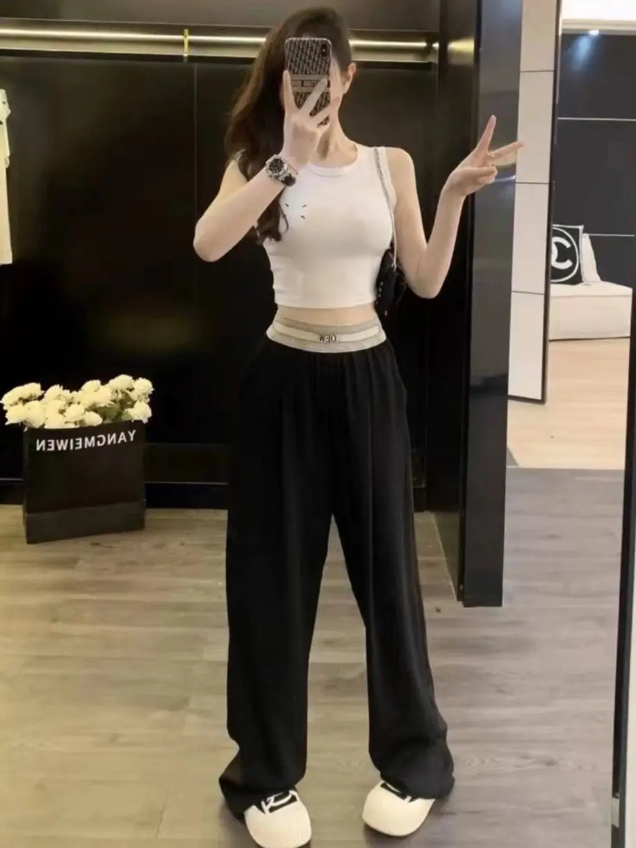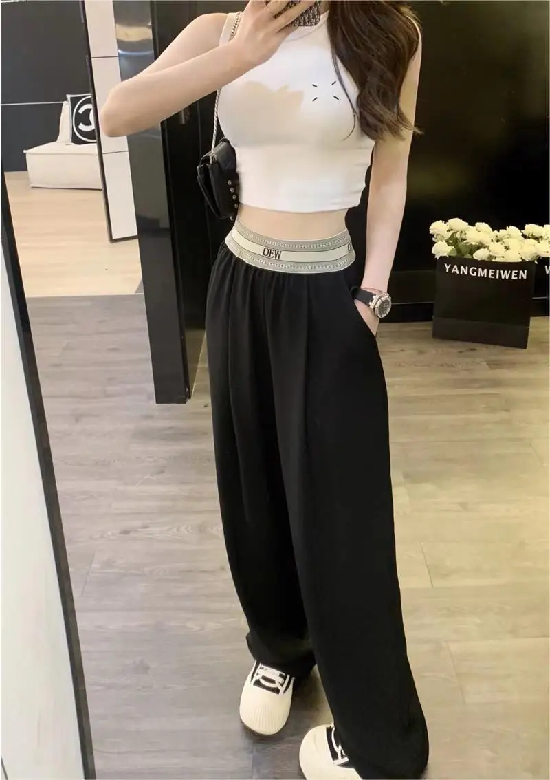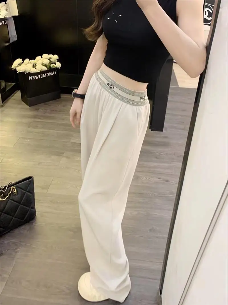 الربيع الصيف البساطة مكتب سيدة واسعة الساق المرأة موضة عالية الخصر فضفاضة تظهر رقيقة مستقيم الاتجاه كل مباراة سراويل تقليدية