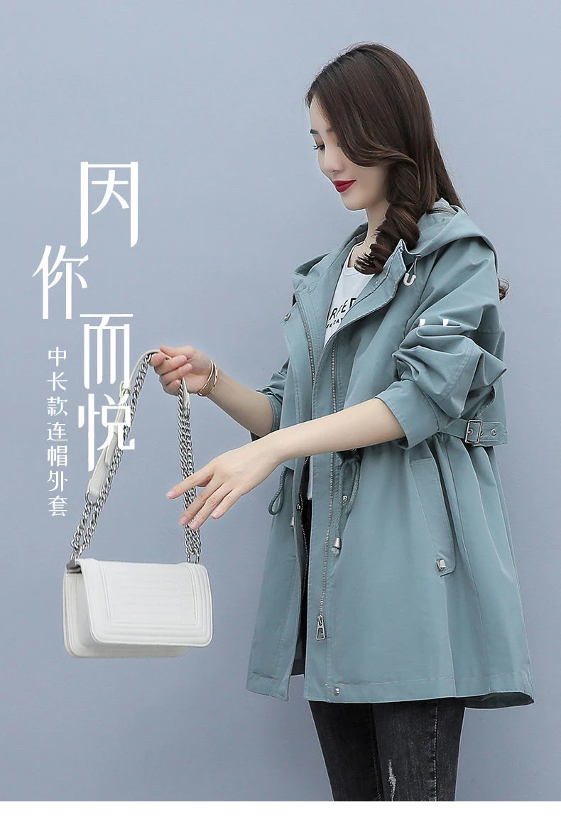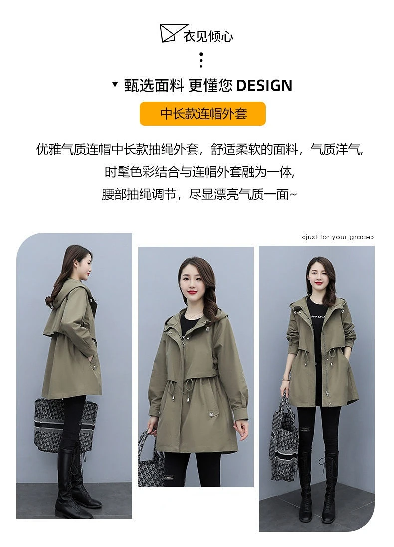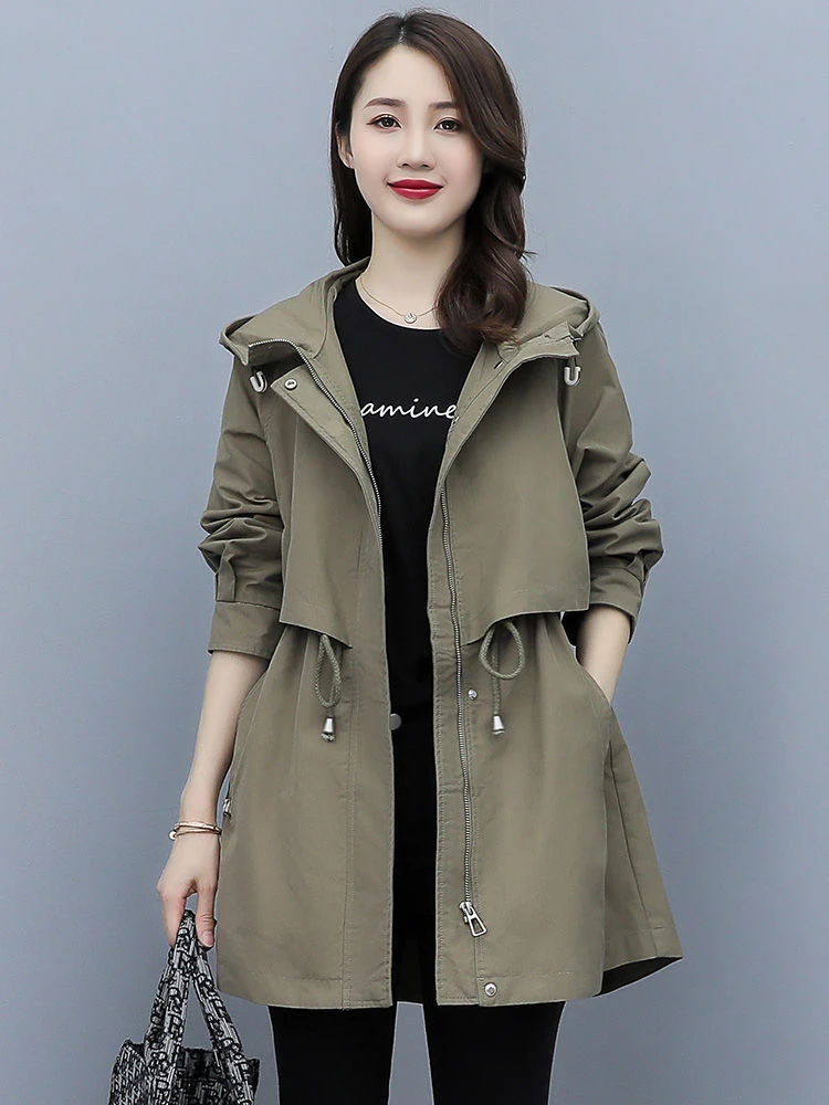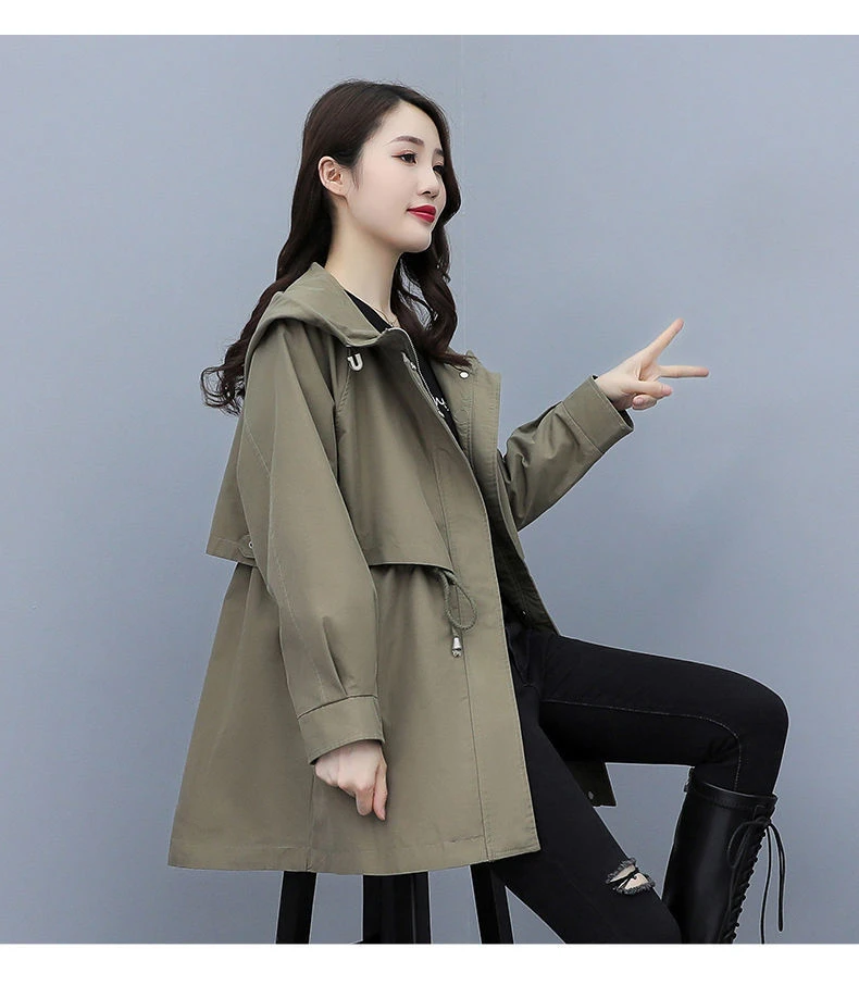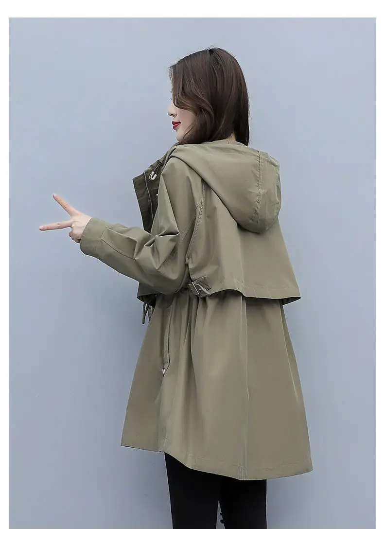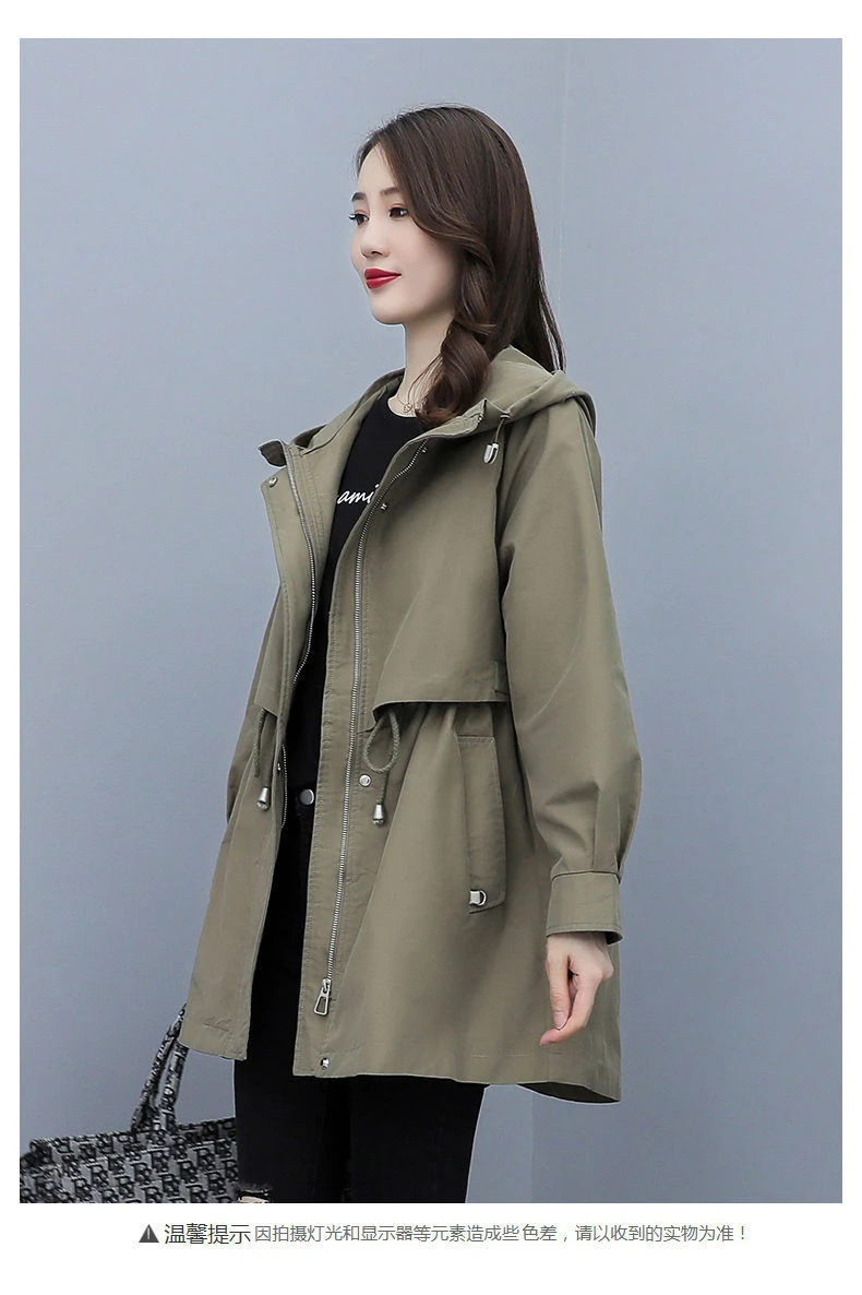 الربيع والخريف 2023 المرأة منتصف طول خندق معطف مقنعين سستة التعادل في السترات النمط البريطاني معاطف فضفاضة الملابس النسائية