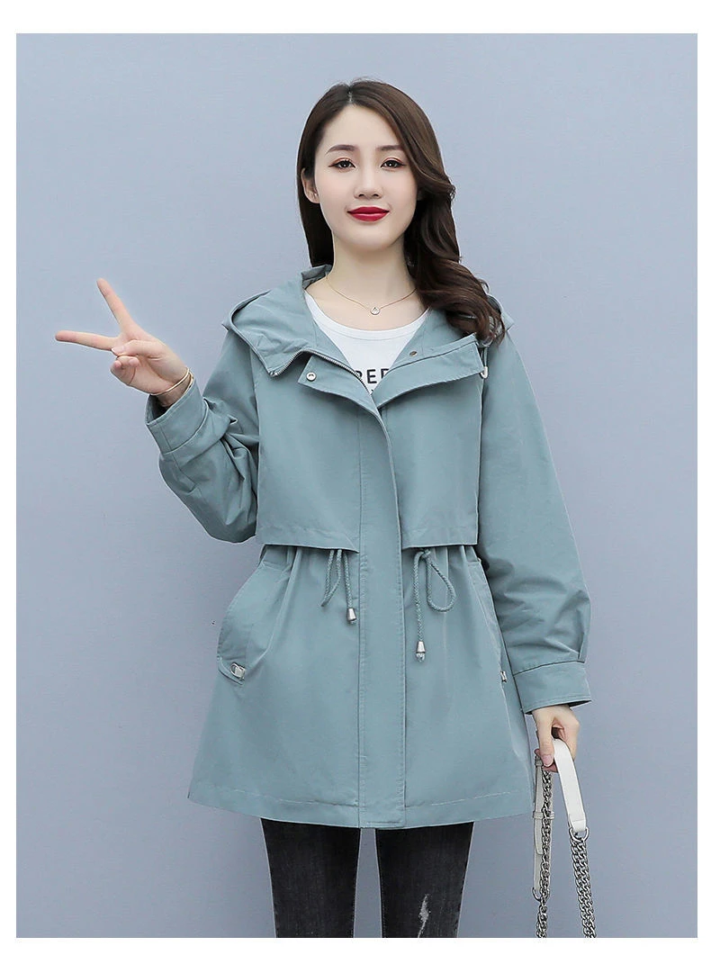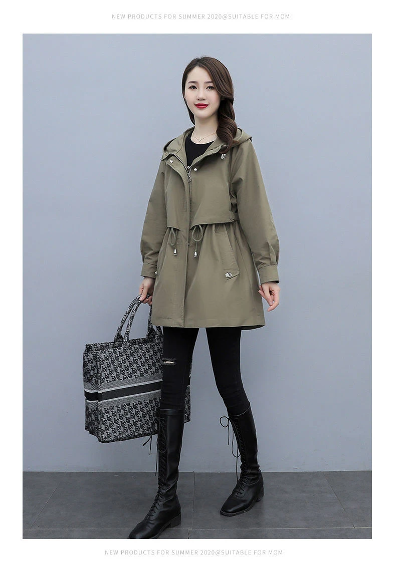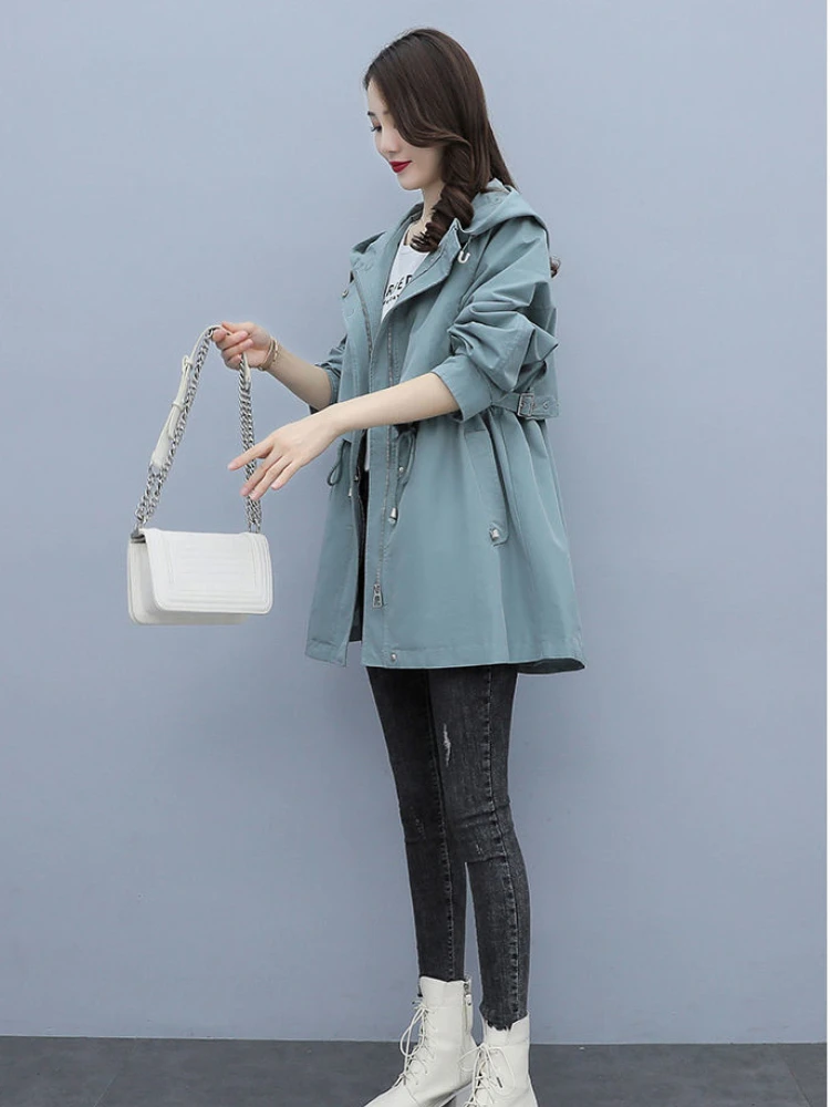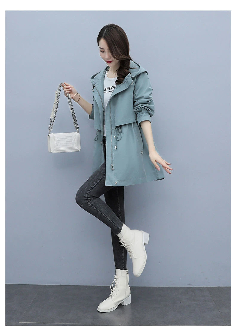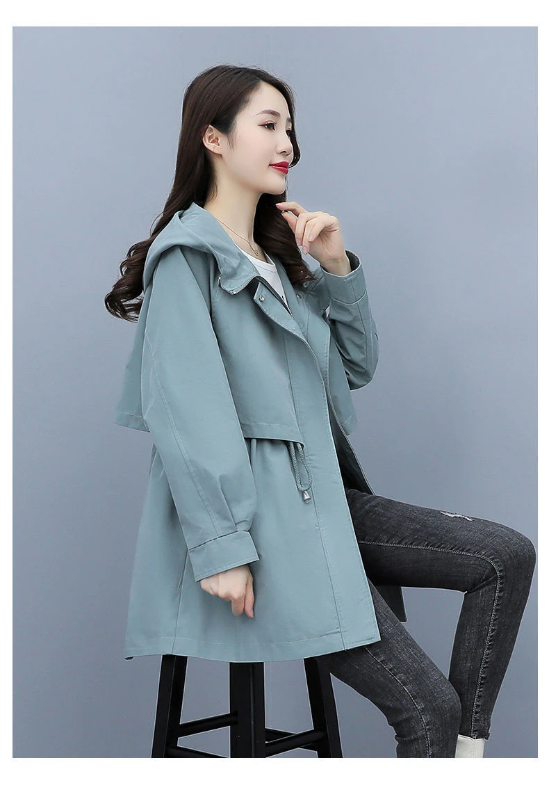 الربيع والخريف 2023 المرأة منتصف طول خندق معطف مقنعين سستة التعادل في السترات النمط البريطاني معاطف فضفاضة الملابس النسائية