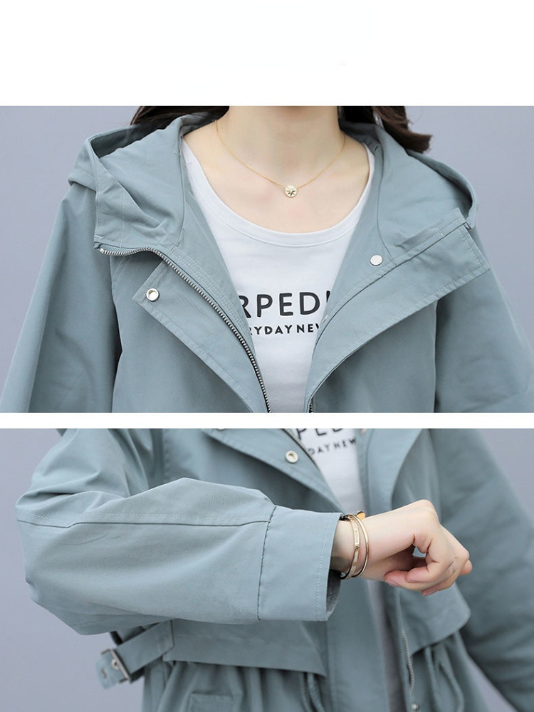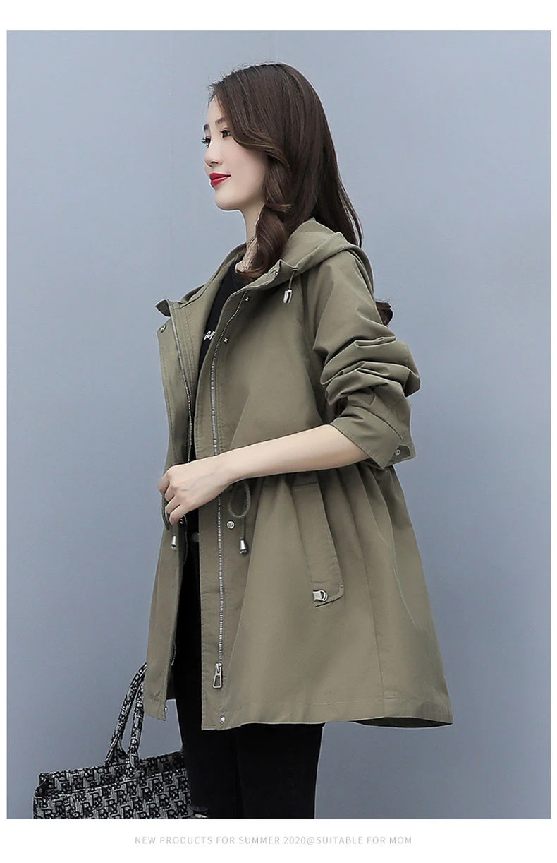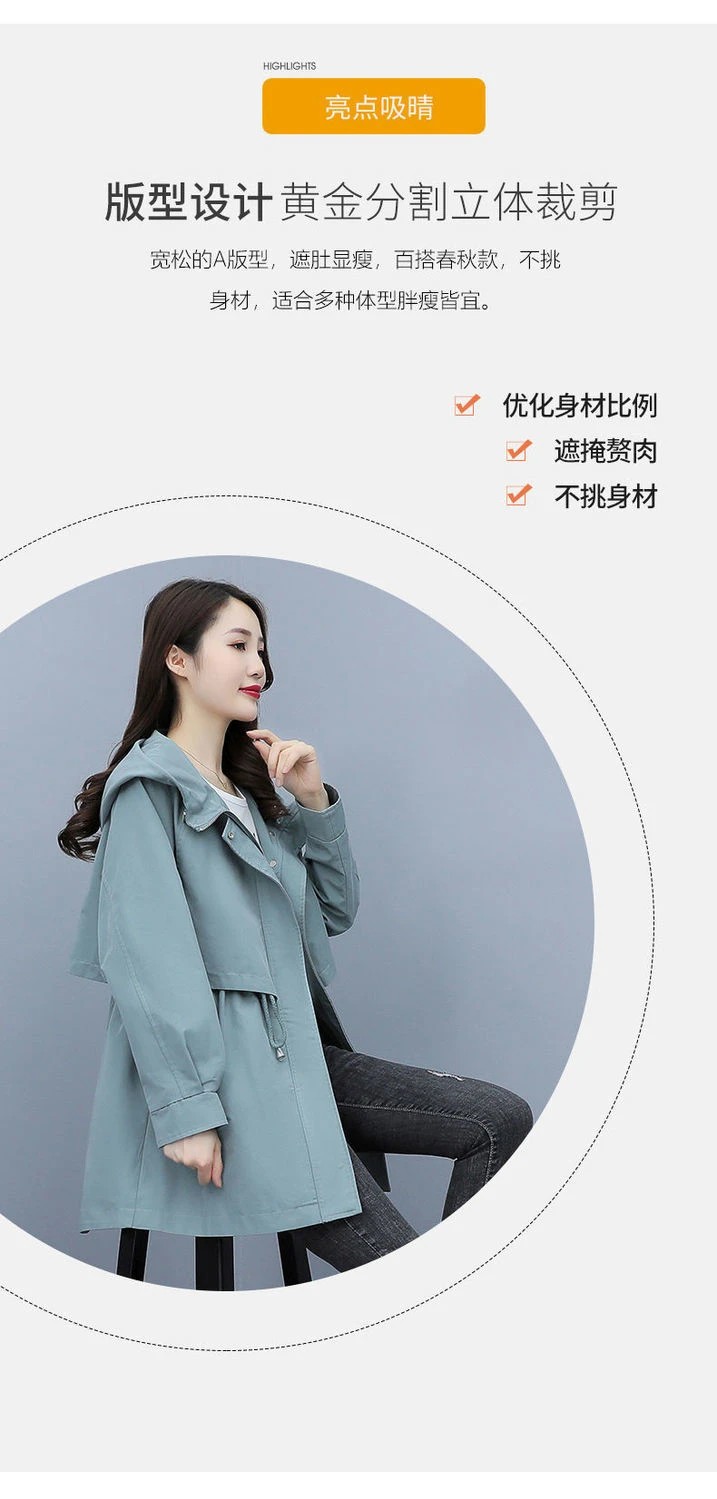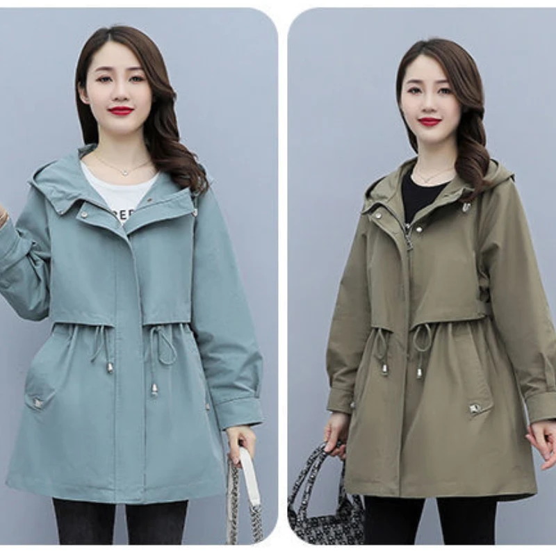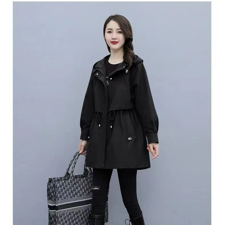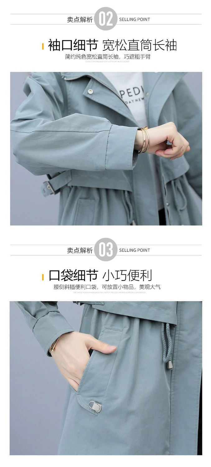 الربيع والخريف 2023 المرأة منتصف طول خندق معطف مقنعين سستة التعادل في السترات النمط البريطاني معاطف فضفاضة الملابس النسائية