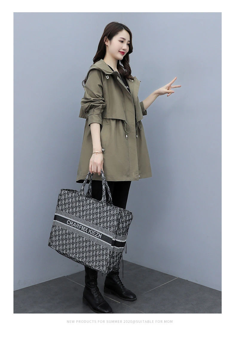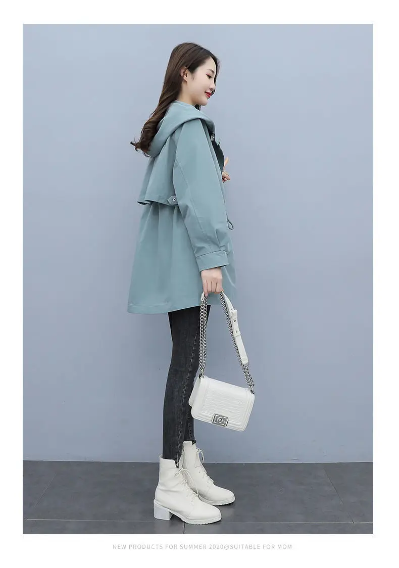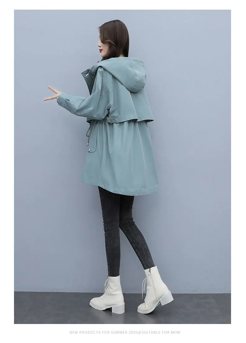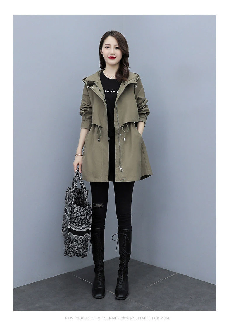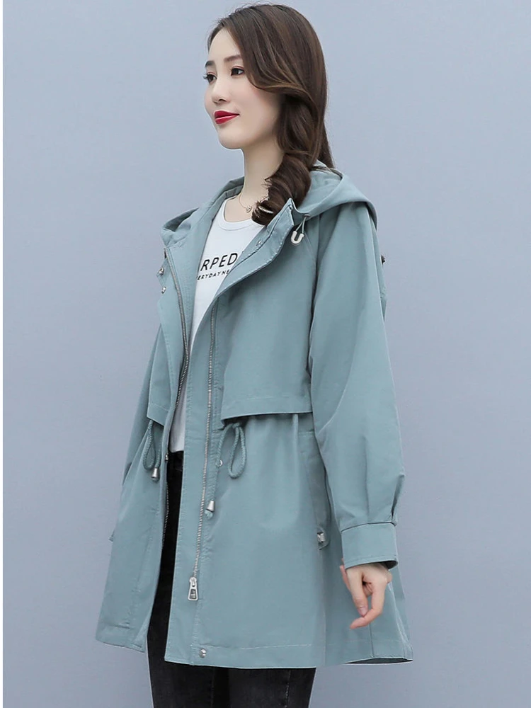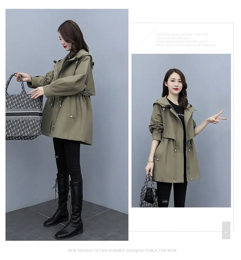 الربيع والخريف 2023 المرأة منتصف طول خندق معطف مقنعين سستة التعادل في السترات النمط البريطاني معاطف فضفاضة الملابس النسائية
