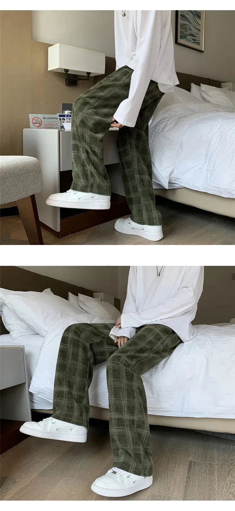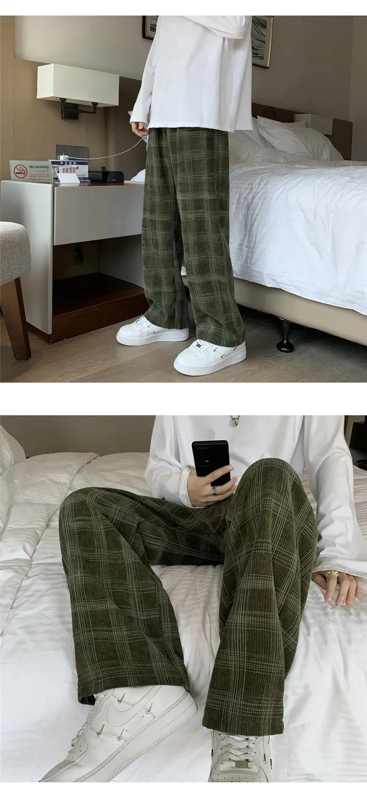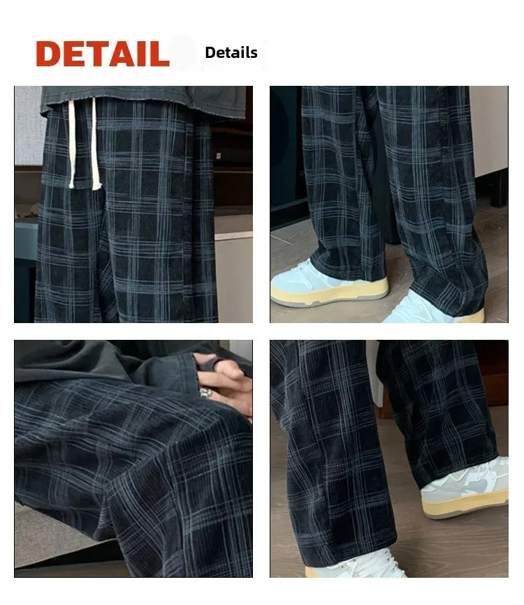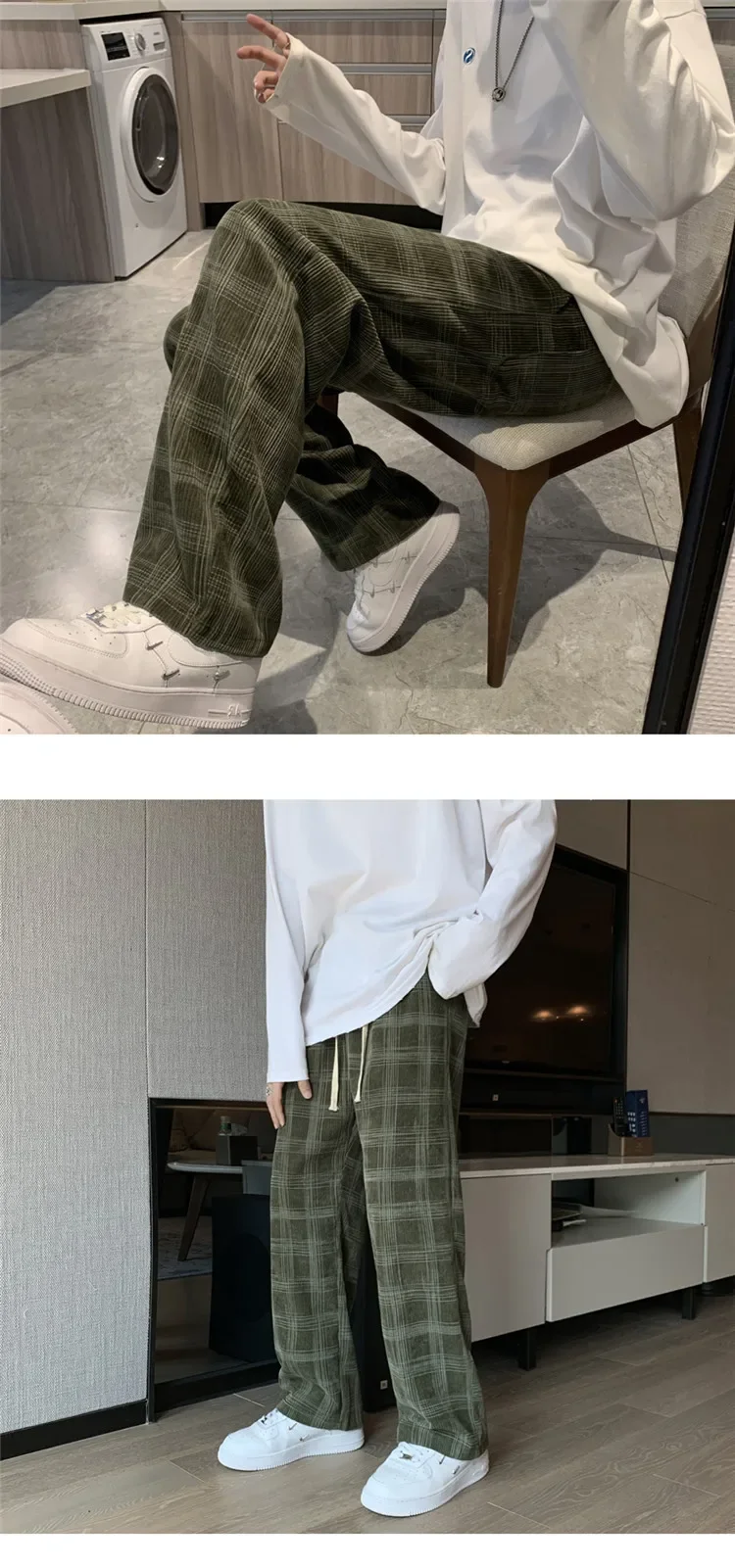 الرجال سروال قصير منقوشة سراويل تقليدية فضفاضة تناسب مستقيم الساق جرس قيعان العلامة التجارية العصرية فاسق نمط بنطلون هونغ كونغ نمط