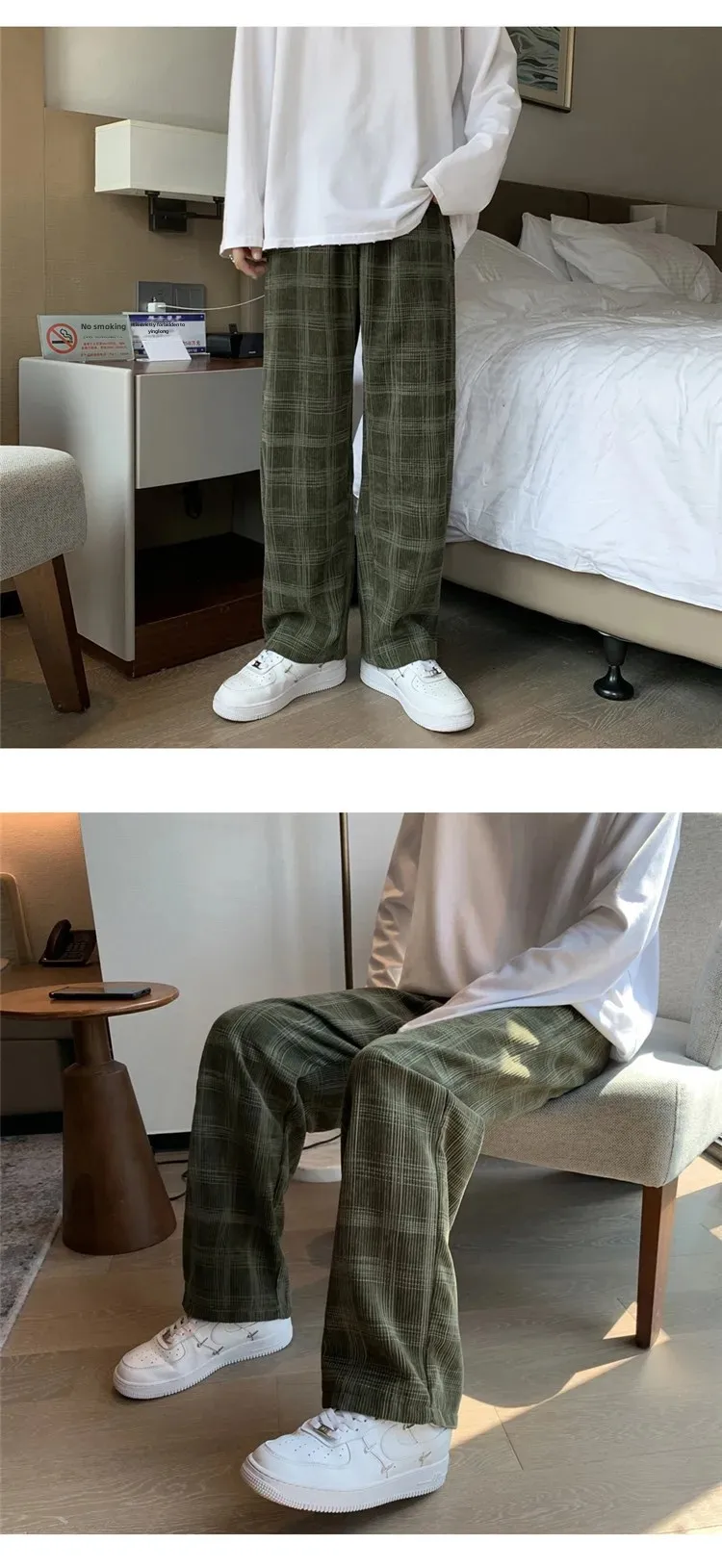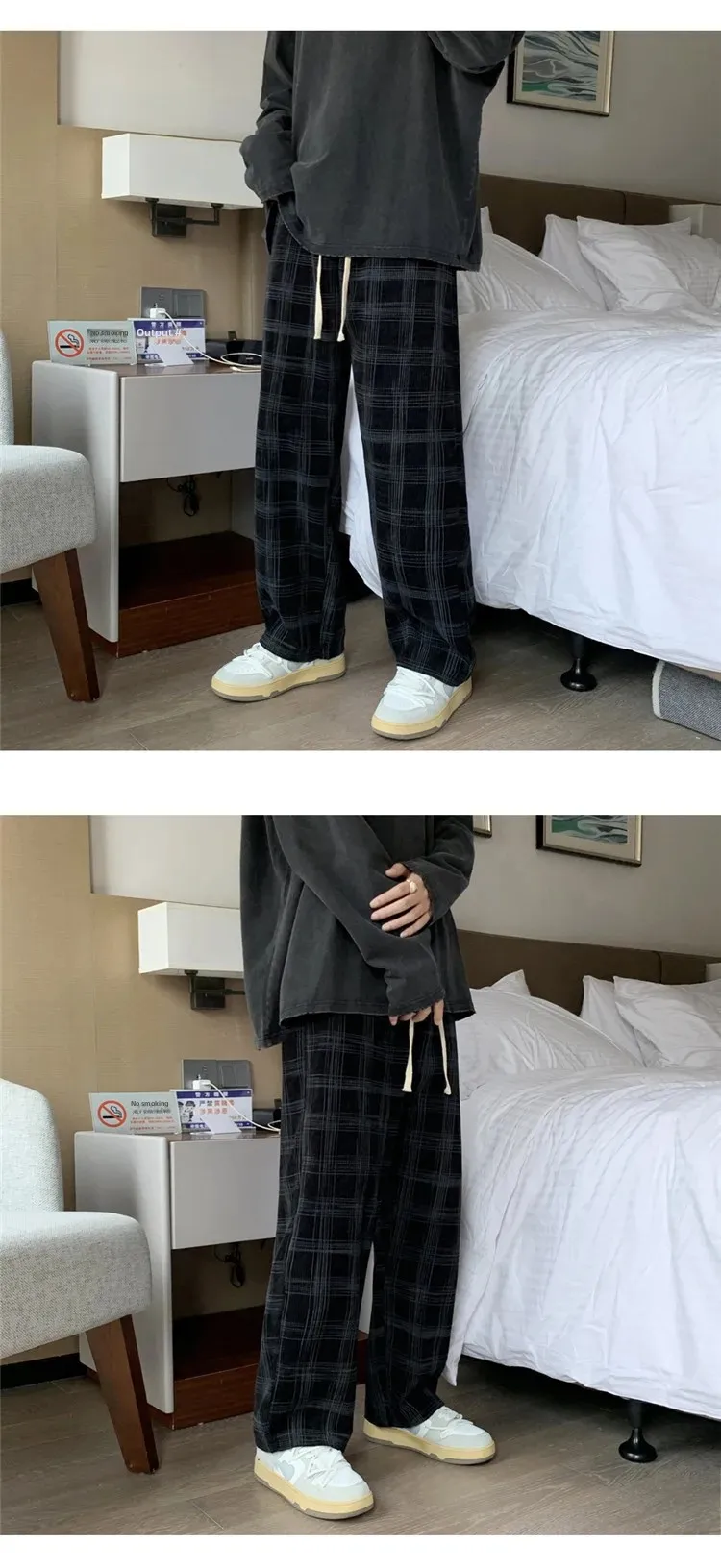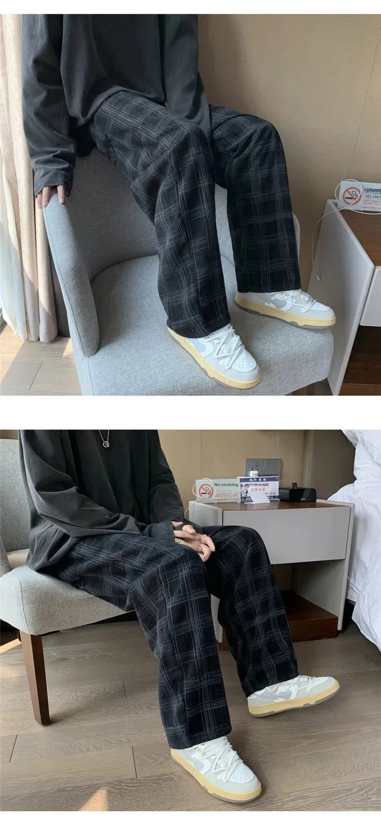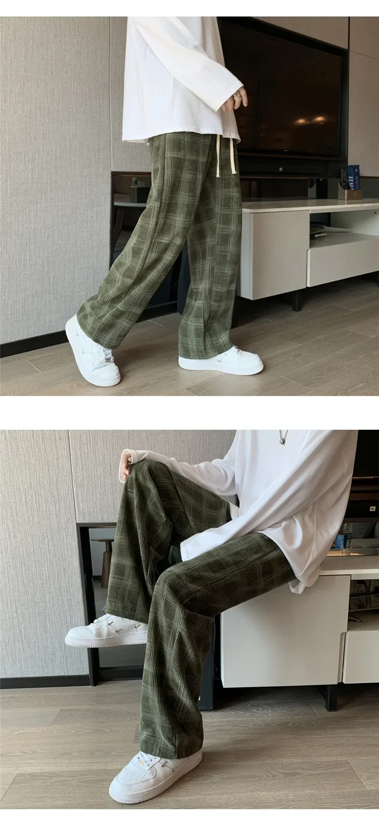 الرجال سروال قصير منقوشة سراويل تقليدية فضفاضة تناسب مستقيم الساق جرس قيعان العلامة التجارية العصرية فاسق نمط بنطلون هونغ كونغ نمط