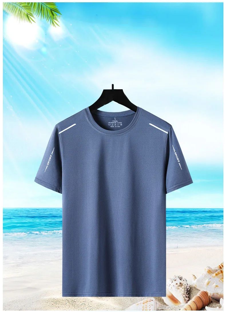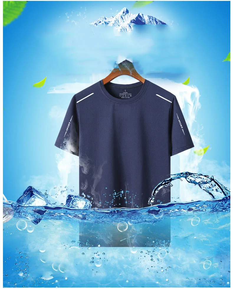 الصيف التبريد الحرير الجليد تي شيرت للرجال قصيرة الأكمام فضفاضة تنفس اللياقة البدنية الرجال الرياضة تي شيرت سريعة الجافة تشغيل الملابس
