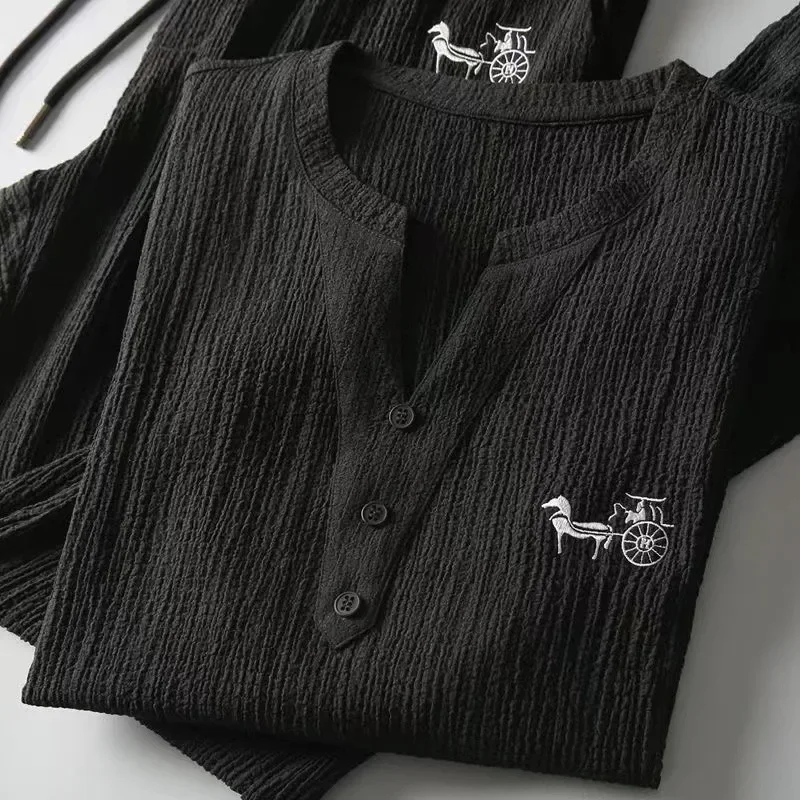 • نمط الرقبة على شكل حرف V:يضيف التصميم ذو الرقبة على شكل حرف V على الطراز الصيني لمسة من الأناقة إلى هذه البدلة الرياضية الكاجوال، مما يجعلها إضافة متعددة الاستخدامات لخزانة ملابسك.