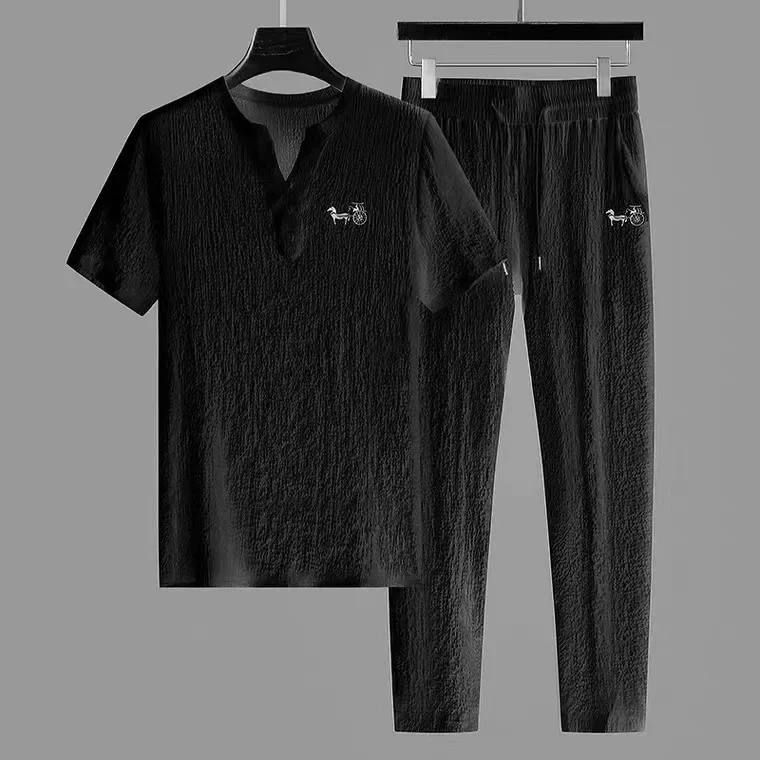 • تصميم روتش العصري:تتميز هذه المجموعة الصيفية الرجالية المكونة من قطعتين بتصميم مكشكش عصري، مما يوفر ملاءمة أنيقة ومريحة لأي نزهة غير رسمية.