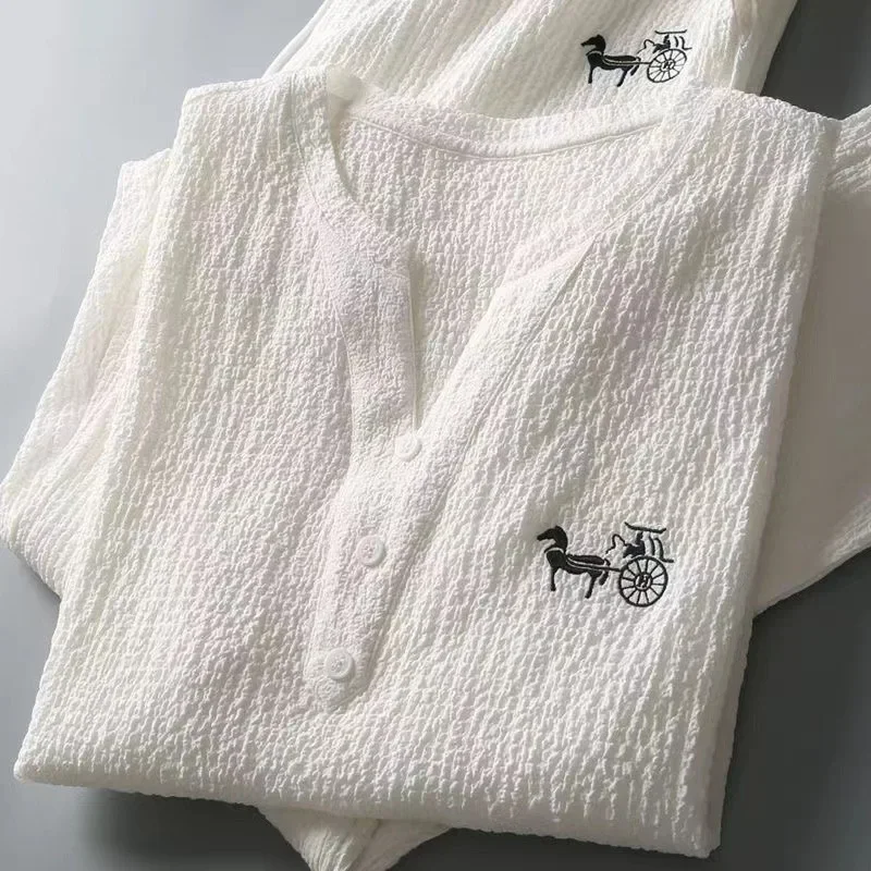 • 4XL | White V-neck embroidery
