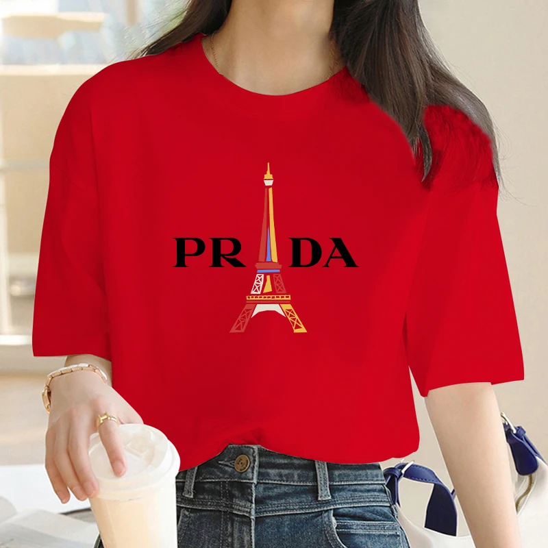 المرأة عالية الجودة تي شيرت موضة مطبوعة أنثى فضفاضة قصيرة الأكمام القطن النمط الكلاسيكي البلوز قمصان ملابس الصيف