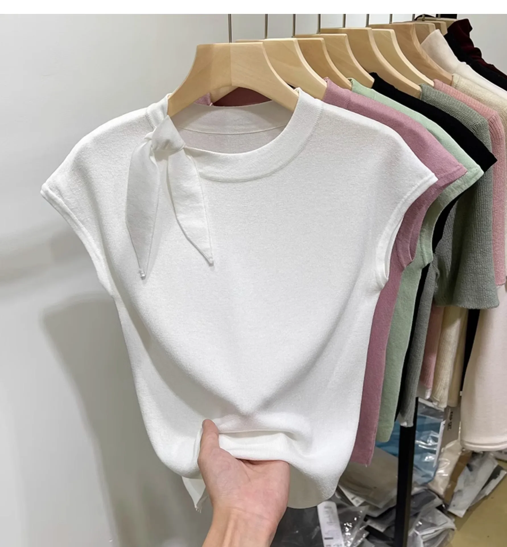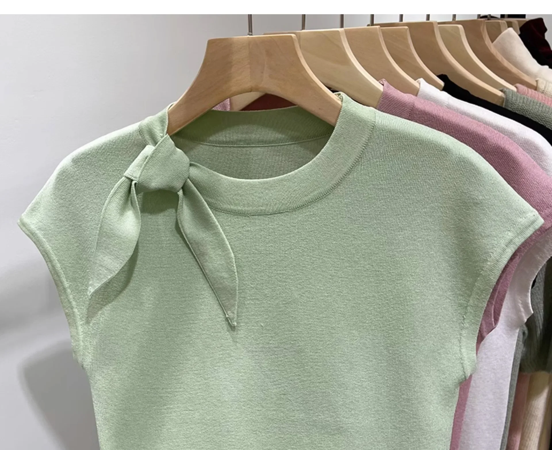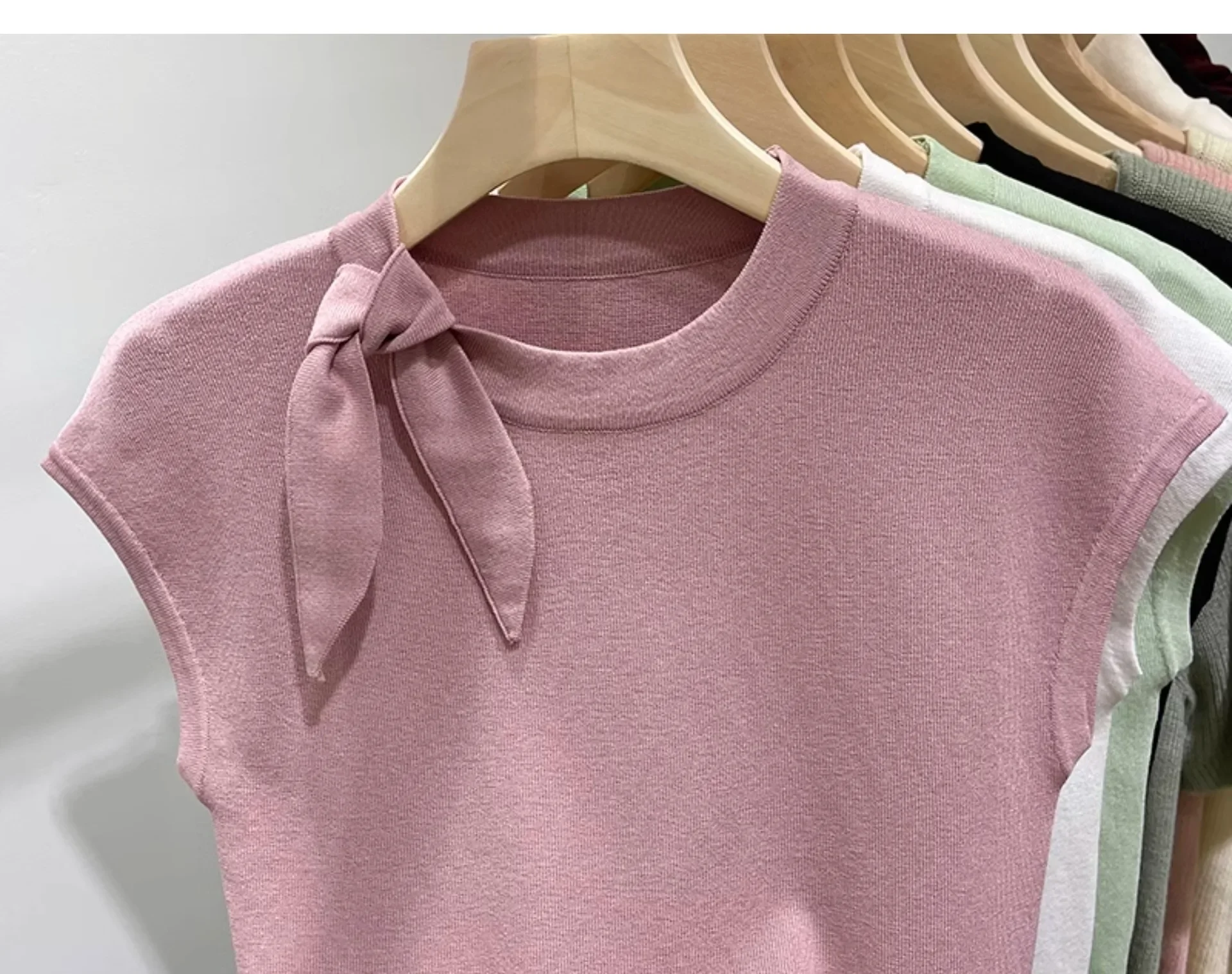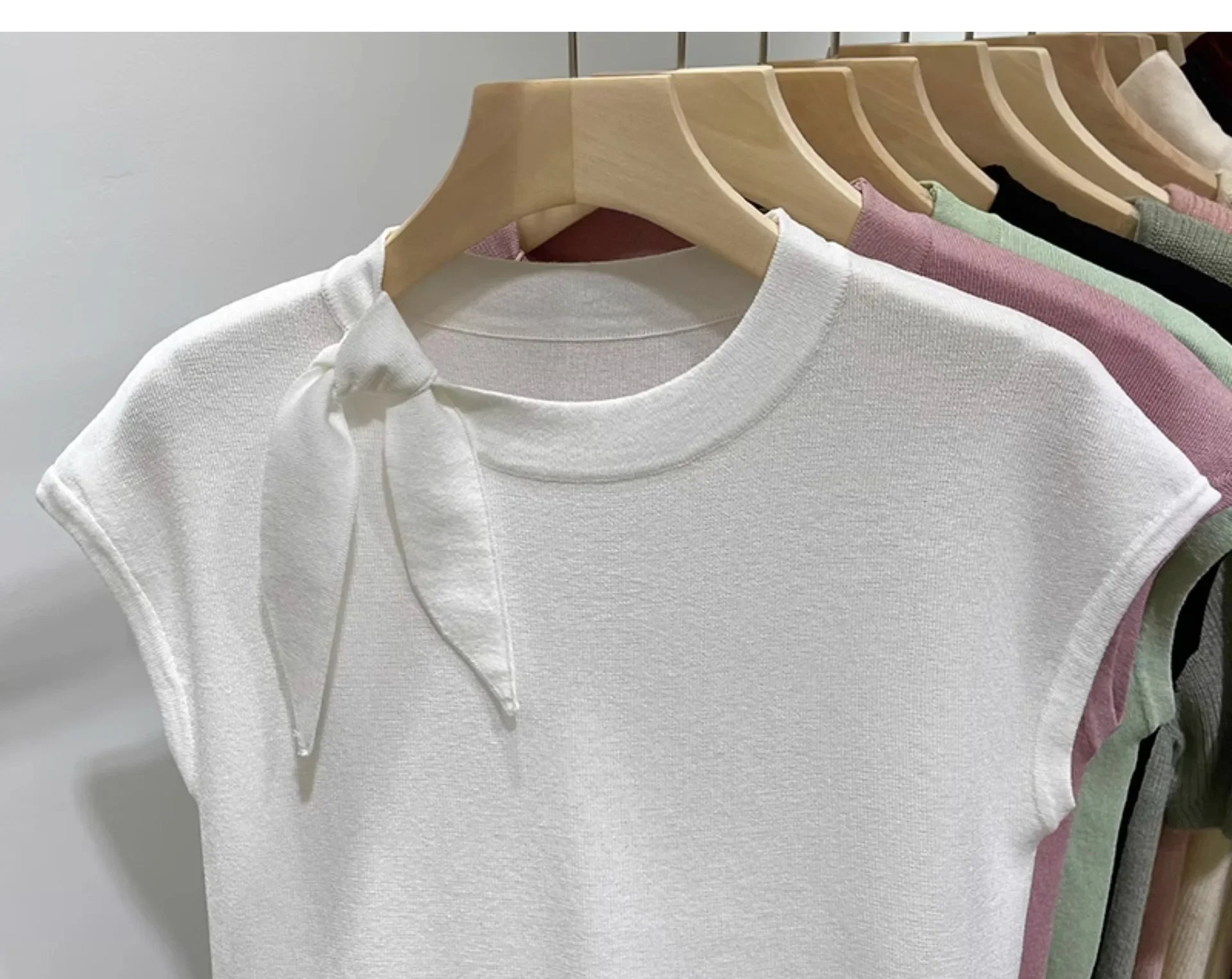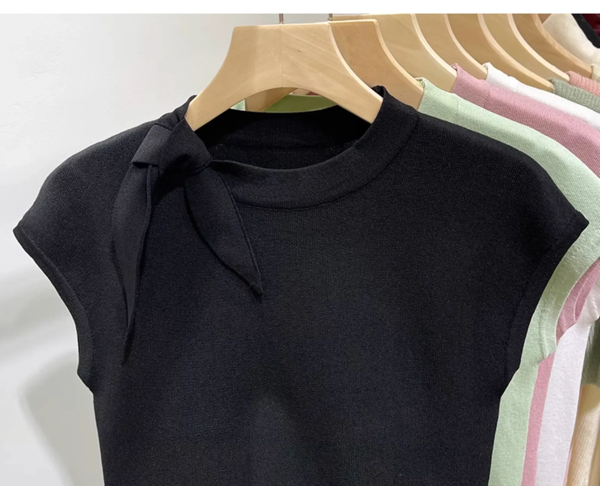 المرأة قصيرة الأكمام الجولة الرقبة متماسكة تي شيرت طاقم الرقبة الديكور ألياف البوليستر صيف 2024 جديد سليم صالح تنوعا ليتل يطير
