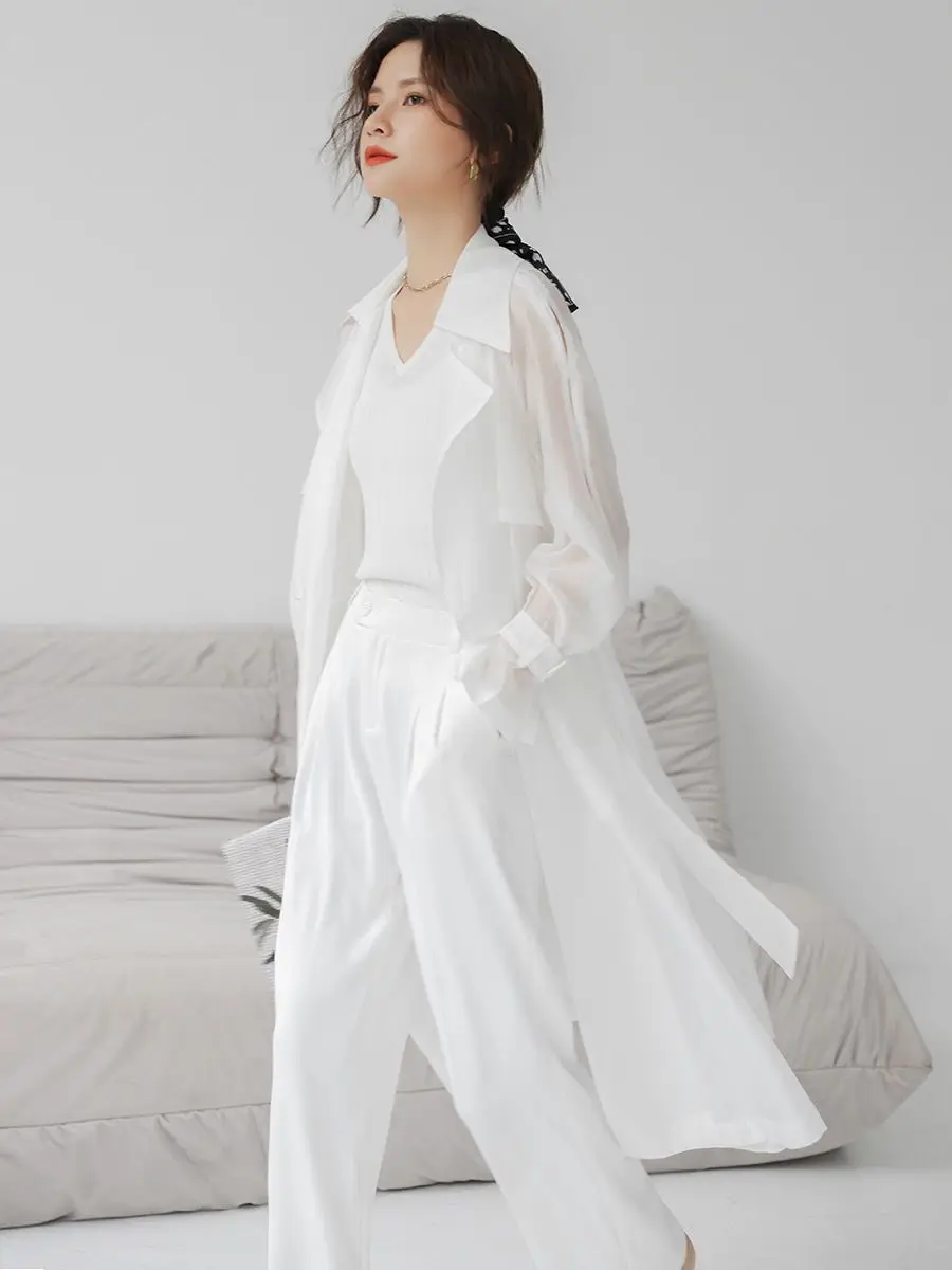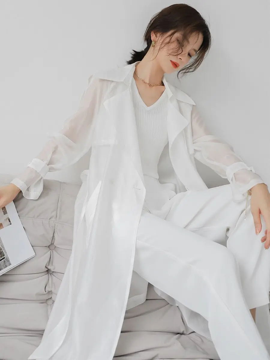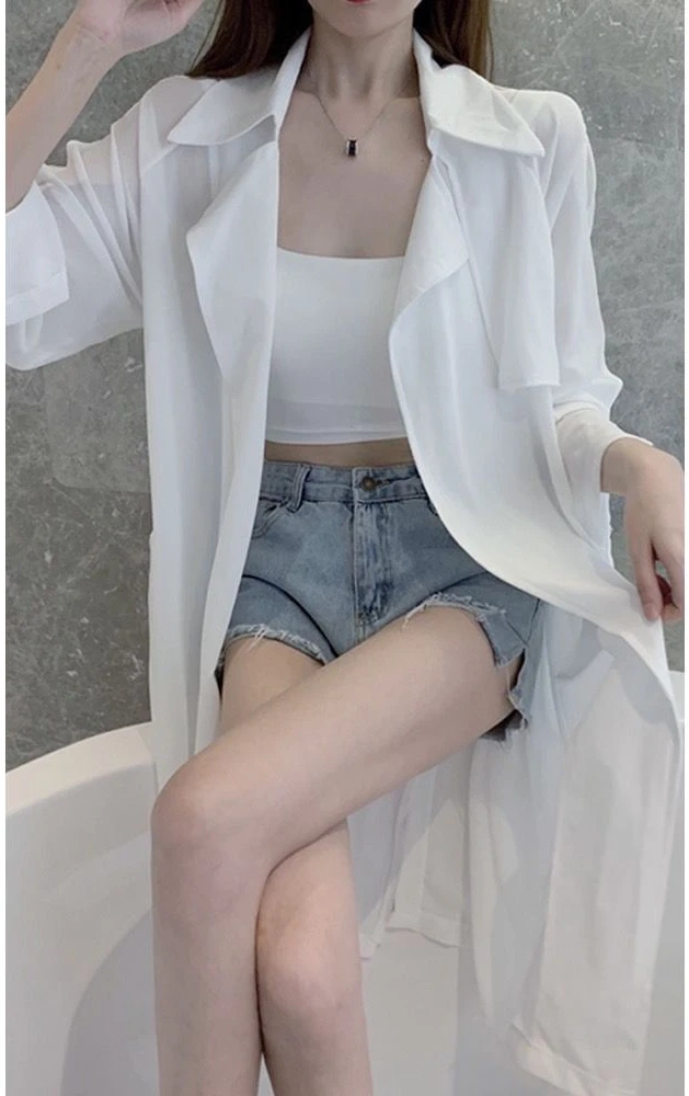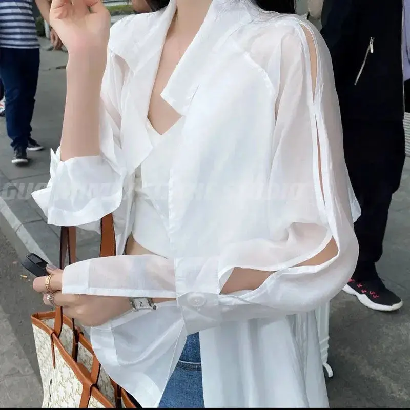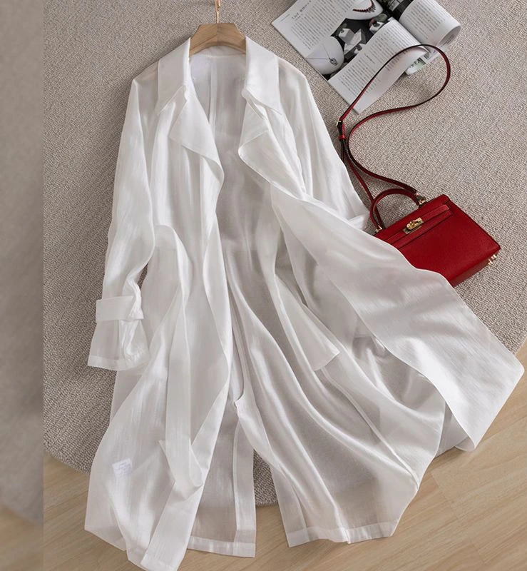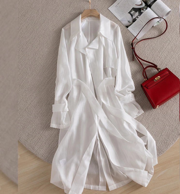 المرأة معطف واقية من الأشعة فوق البنفسجية ، والأزياء الكورية ، وقميص نمط رقيقة وبلوزة ، والملابس النسائية ، والخريف ، والصيف ، جديد