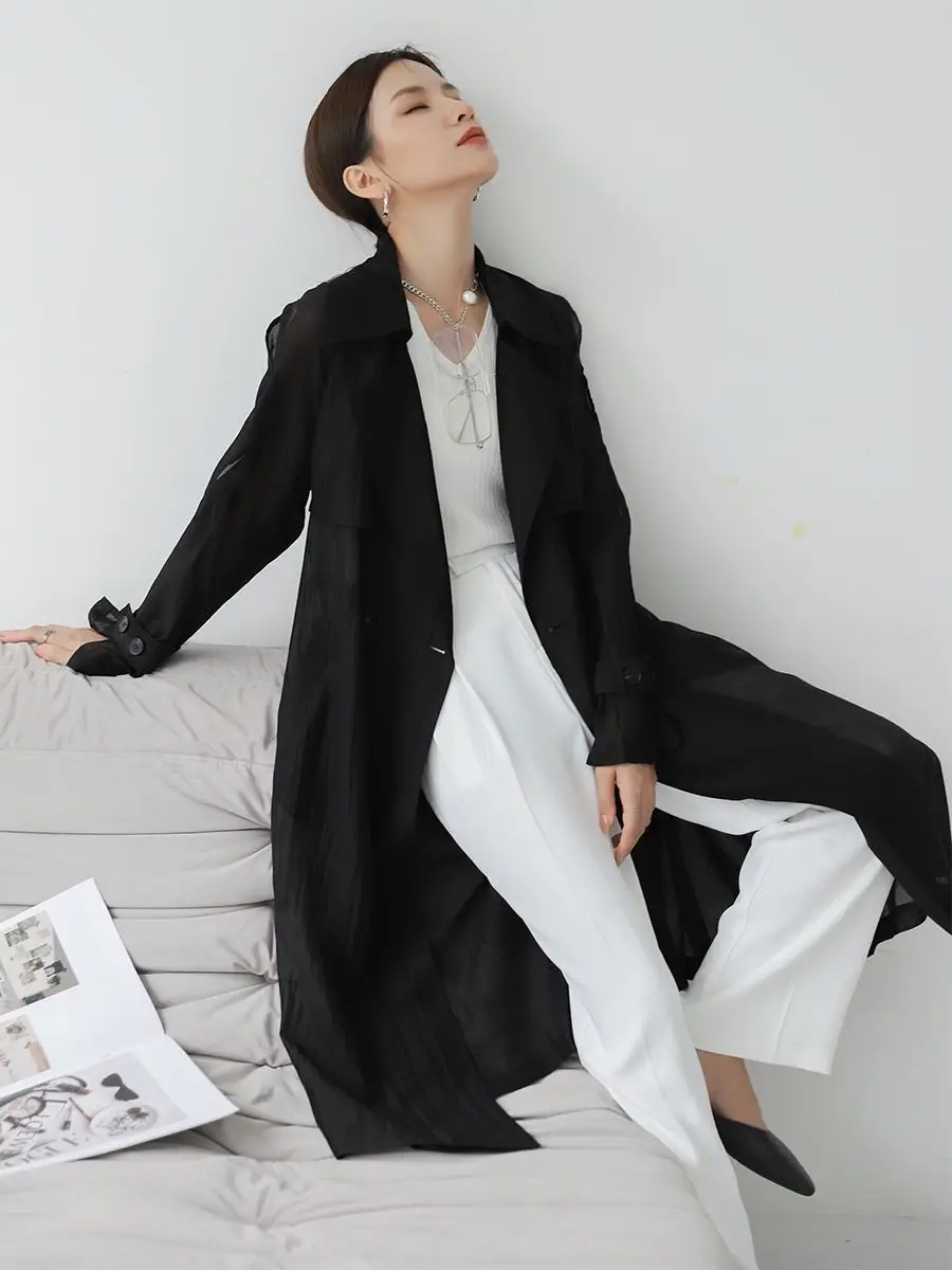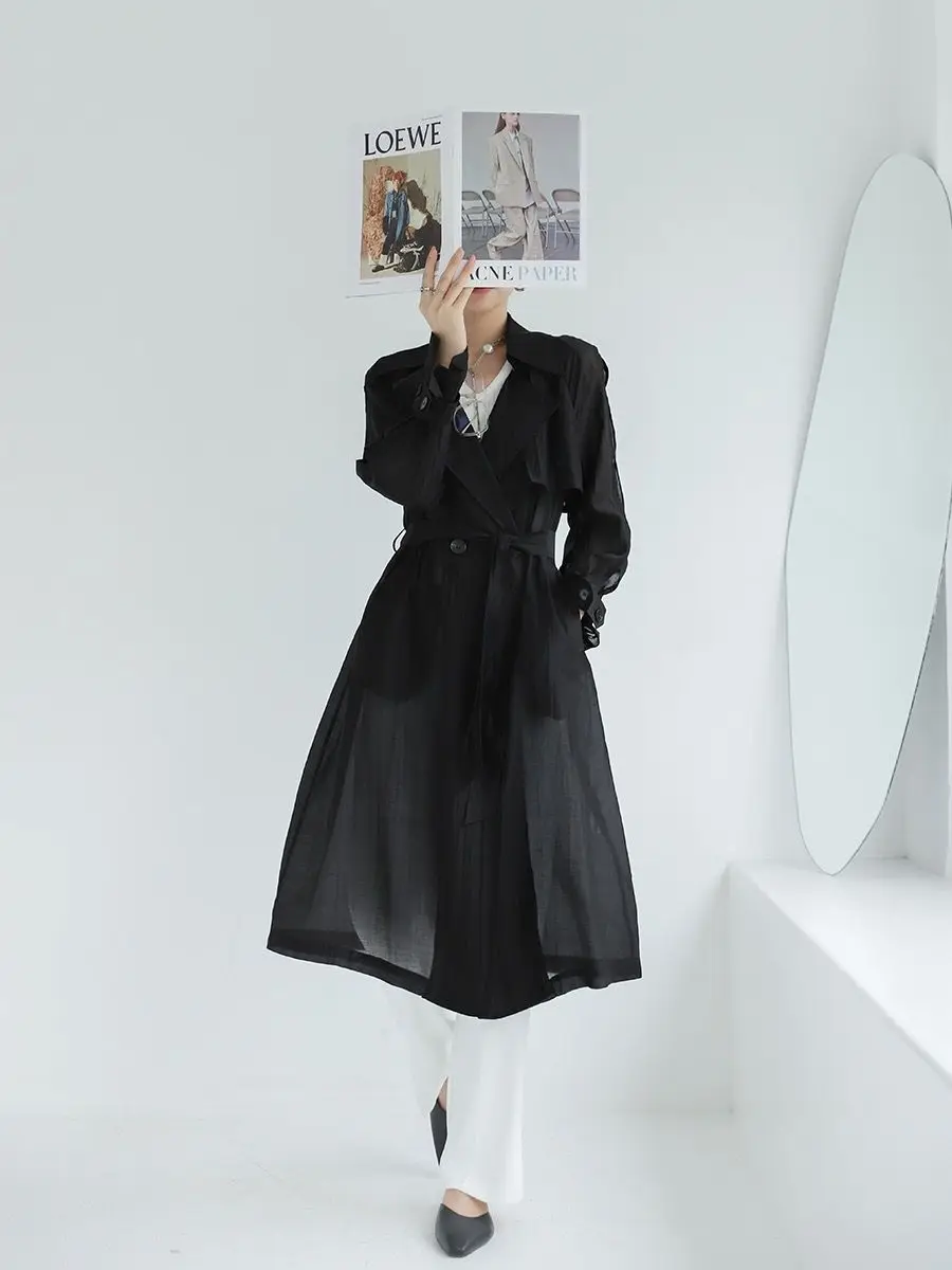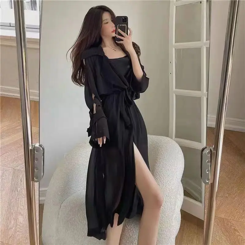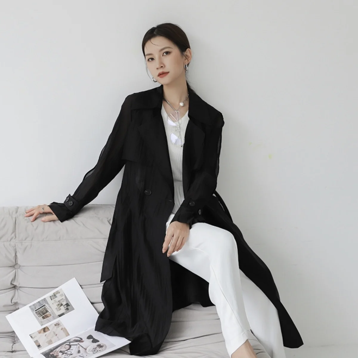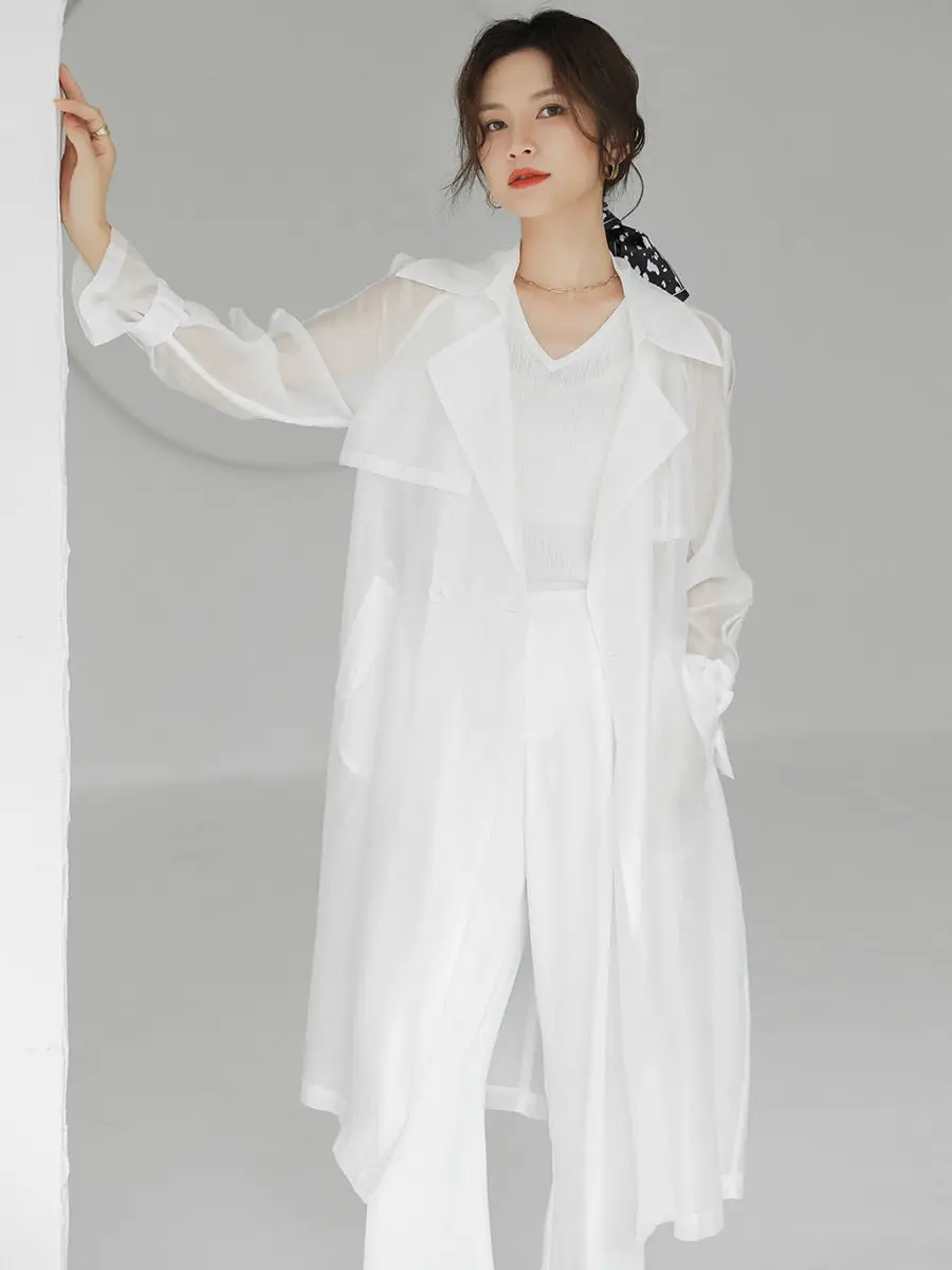 المرأة معطف واقية من الأشعة فوق البنفسجية ، والأزياء الكورية ، وقميص نمط رقيقة وبلوزة ، والملابس النسائية ، والخريف ، والصيف ، جديد