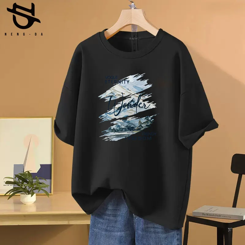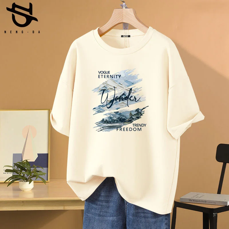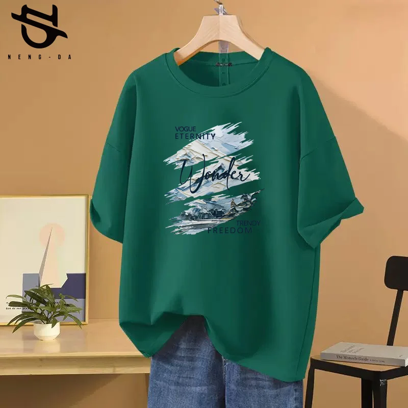 المرأة 100 القطن فضفاض الكاكي تي شيرت الكورية العصرية الجرافيك تي شيرت بسيط قميص مطبوع فتاة لطيف نمط تيز المرأة 2025 جديد