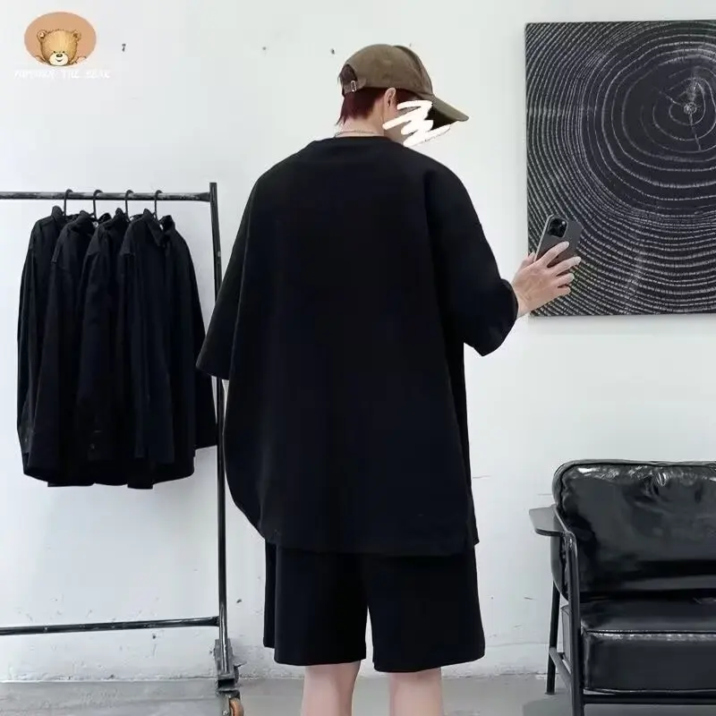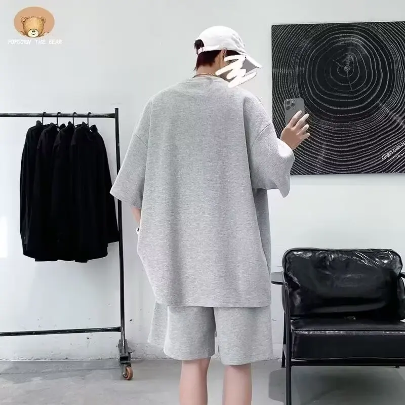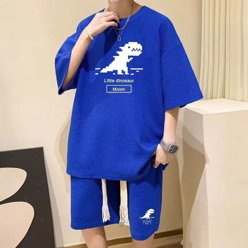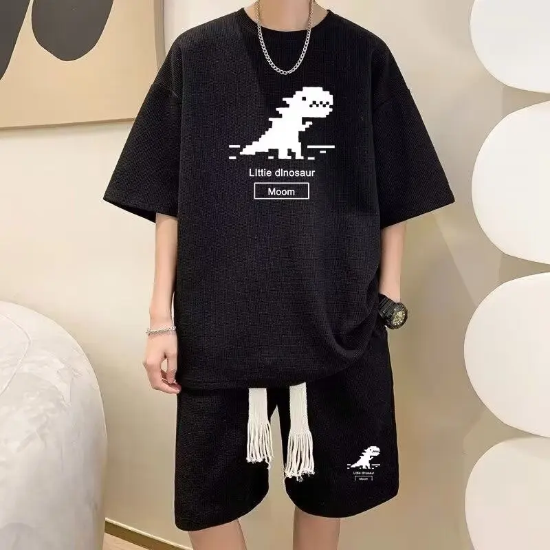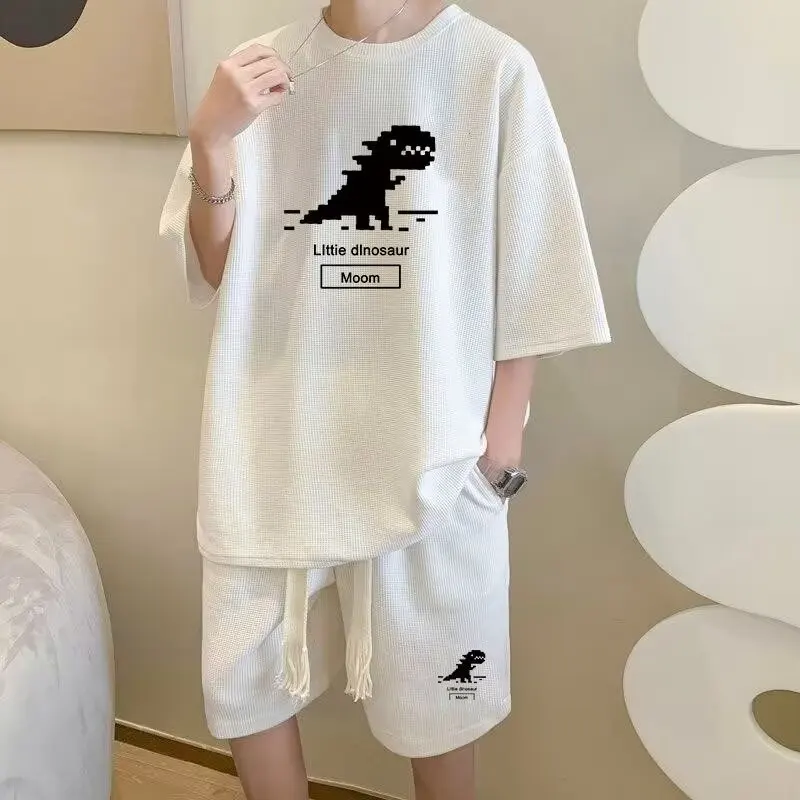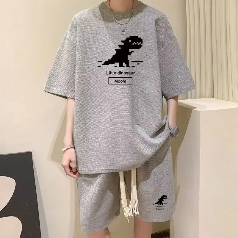 بدلة رياضية للرجال بطباعة ديناصور كرتونية ، قمصان الوافل ، شورت ، ملابس الشارع ، الهيب هوب ، الروك ، كاجوال ، الصيف ، طقم من قطعتين ، ، ،
