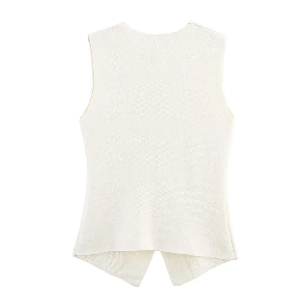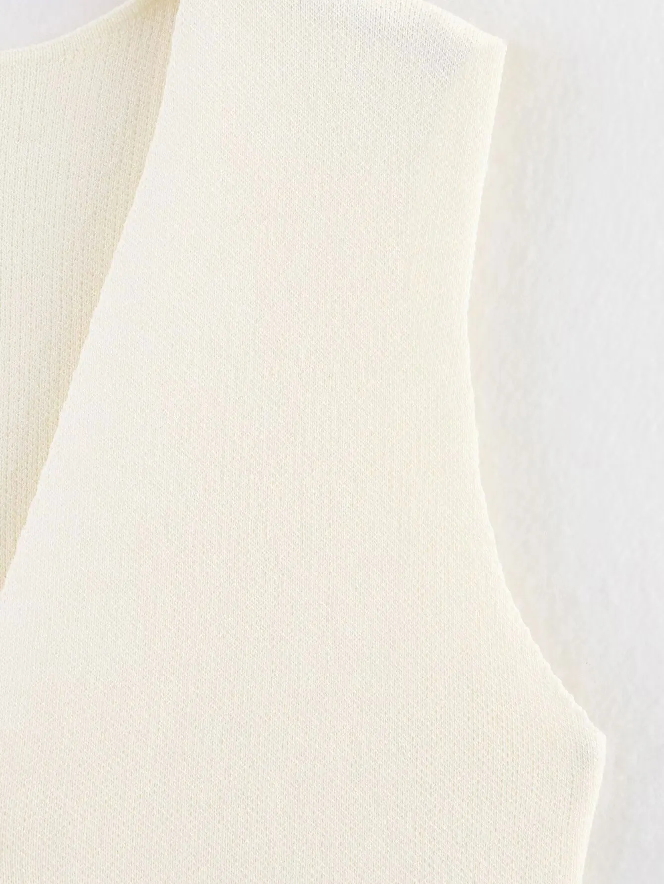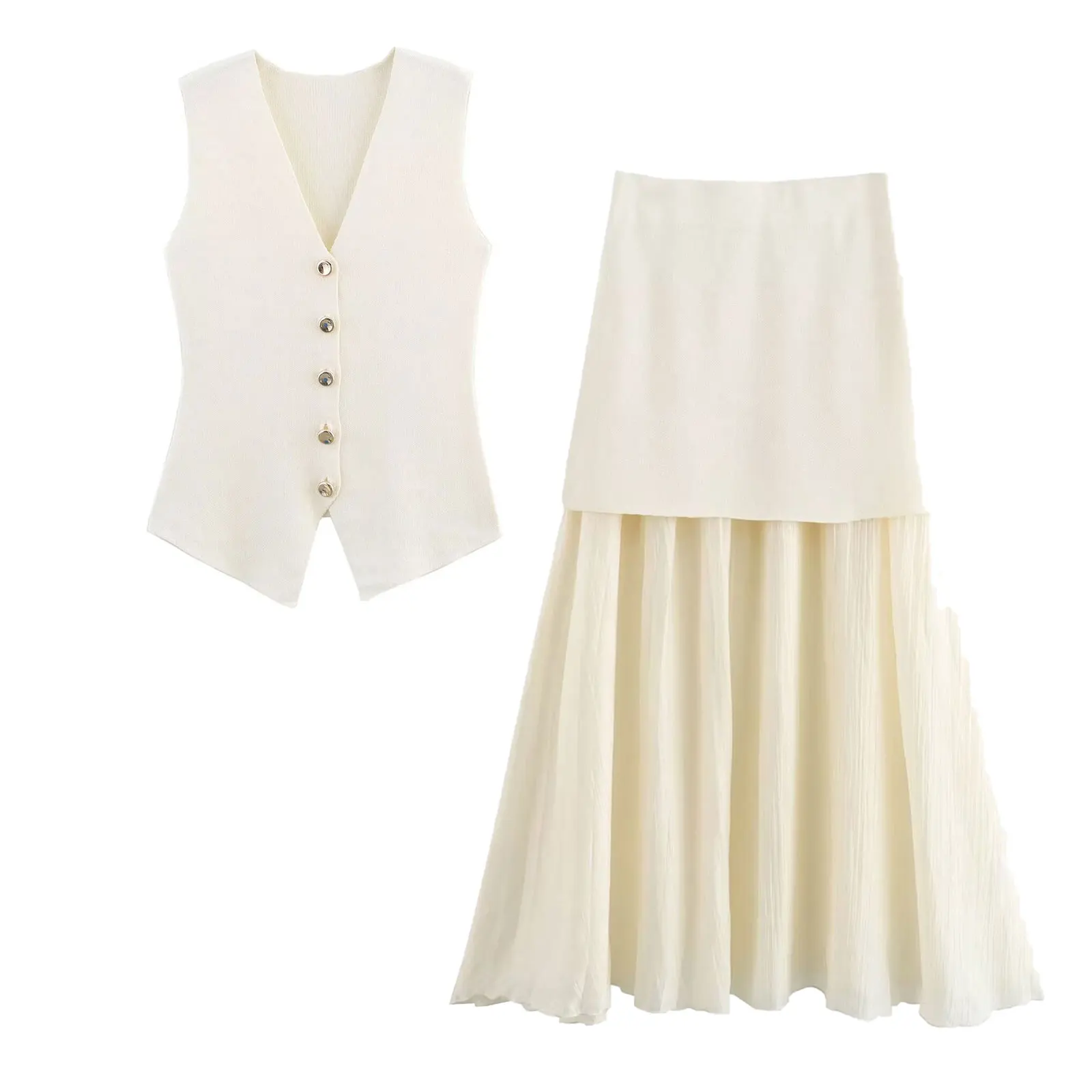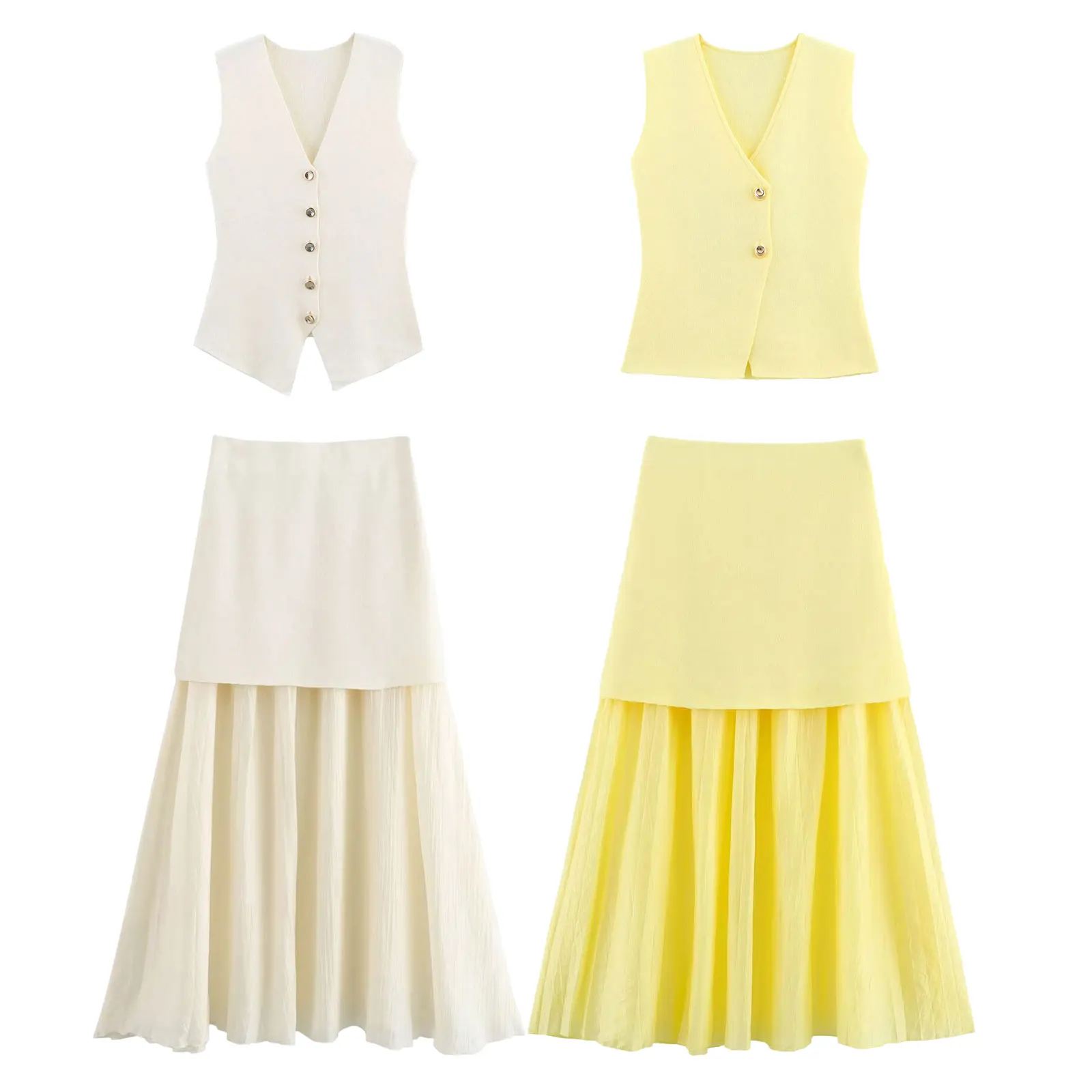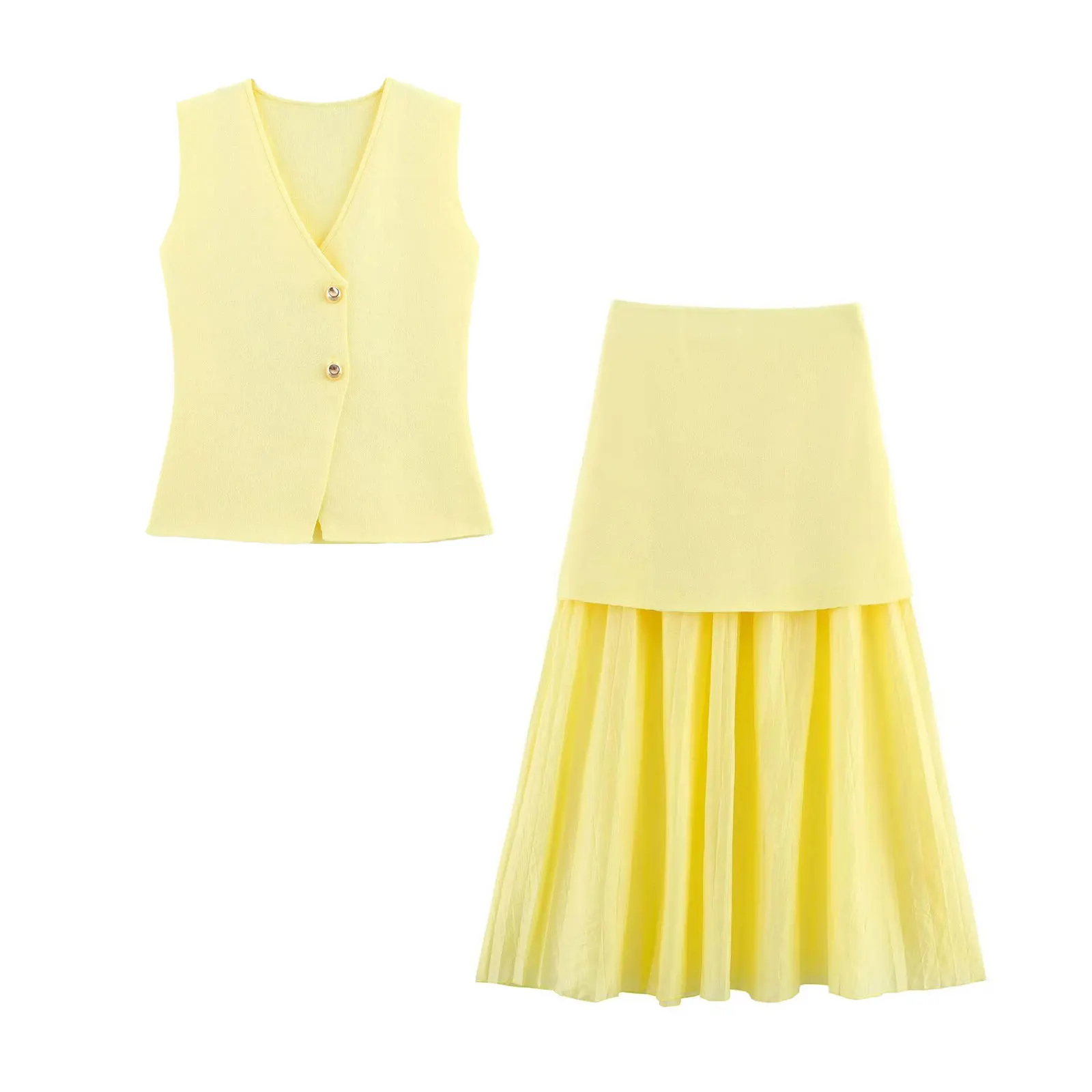 بدلة نسائية محبوكة أنيقة من TRAFZA بدون أكمام ورقبة على شكل حرف v سترة واحدة الصدر + على شكل حرف a عالية الخصر مقسمة مجموعة التنورة العصرية