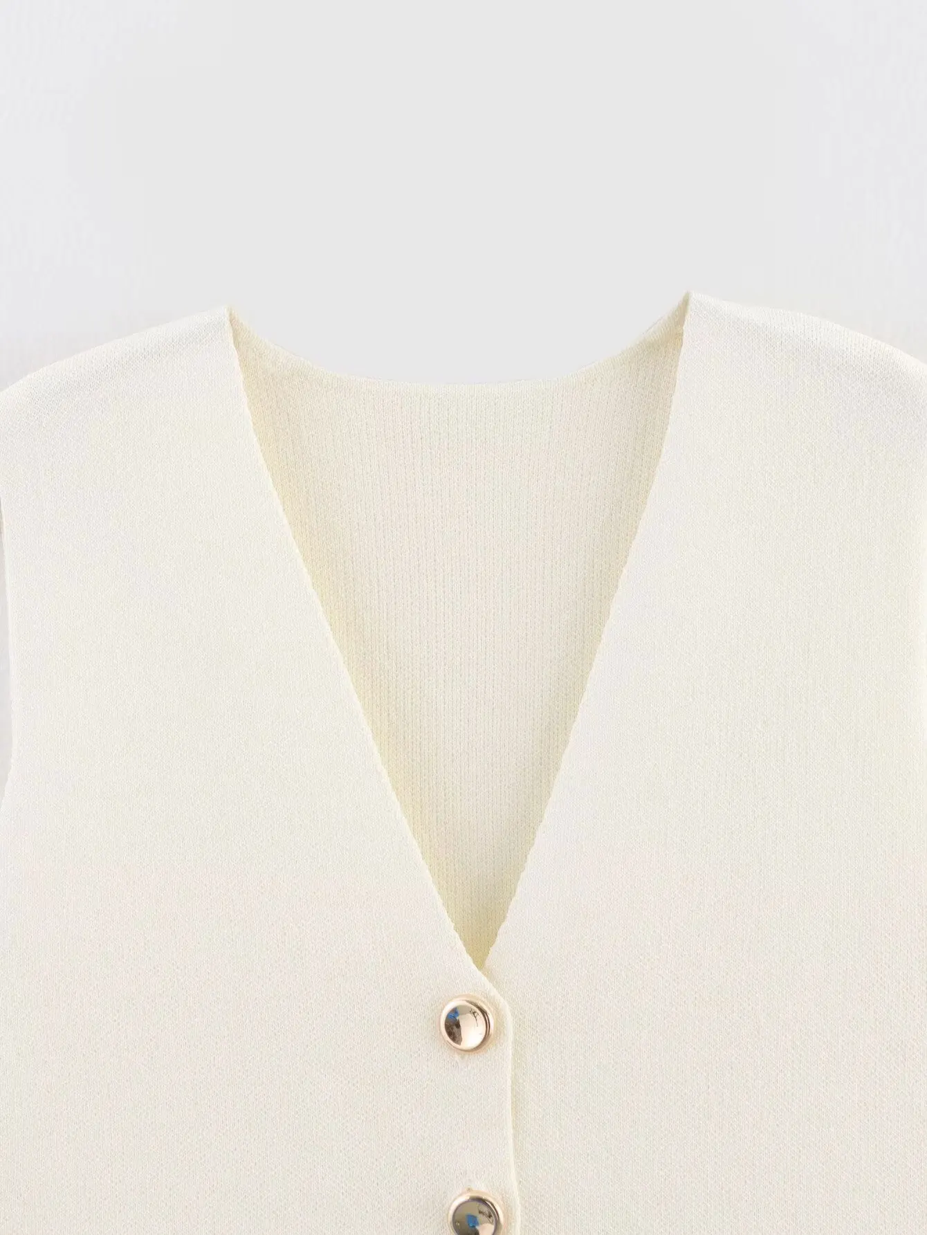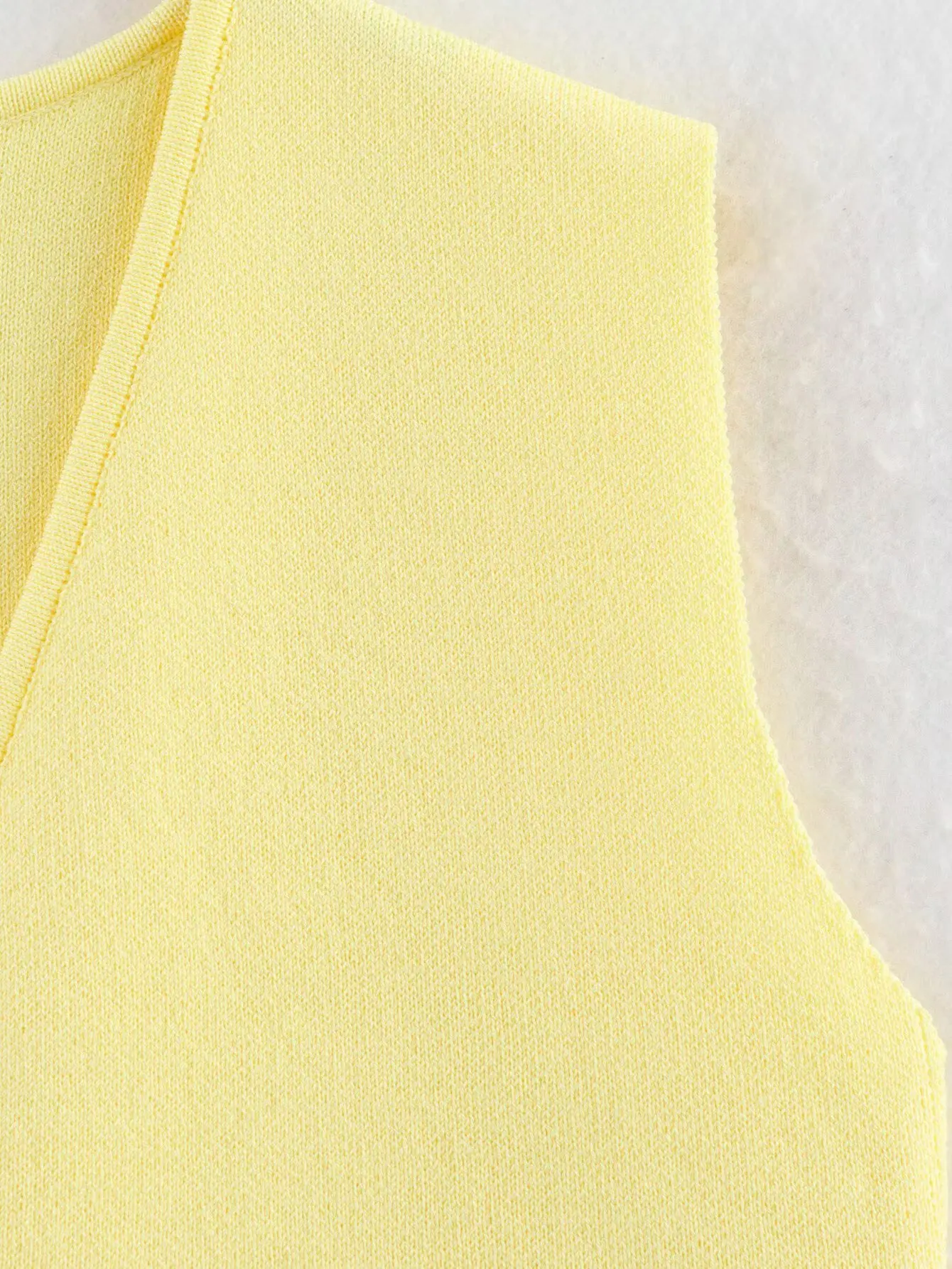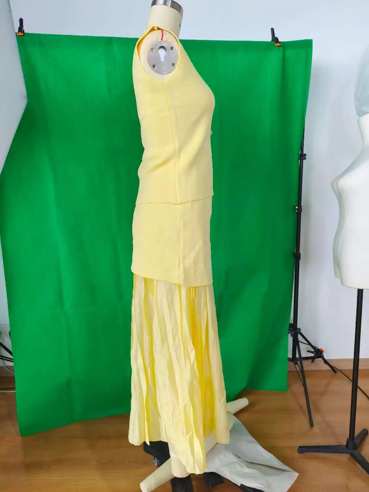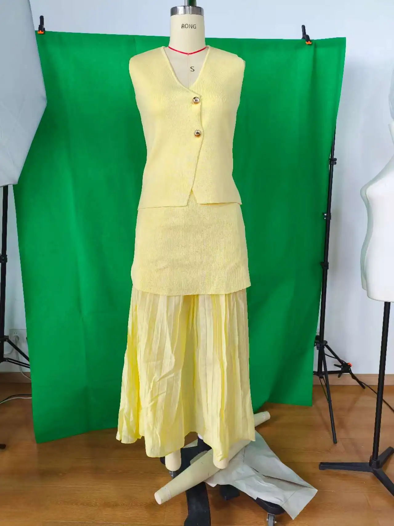 بدلة نسائية محبوكة أنيقة من TRAFZA بدون أكمام ورقبة على شكل حرف v سترة واحدة الصدر + على شكل حرف a عالية الخصر مقسمة مجموعة التنورة العصرية