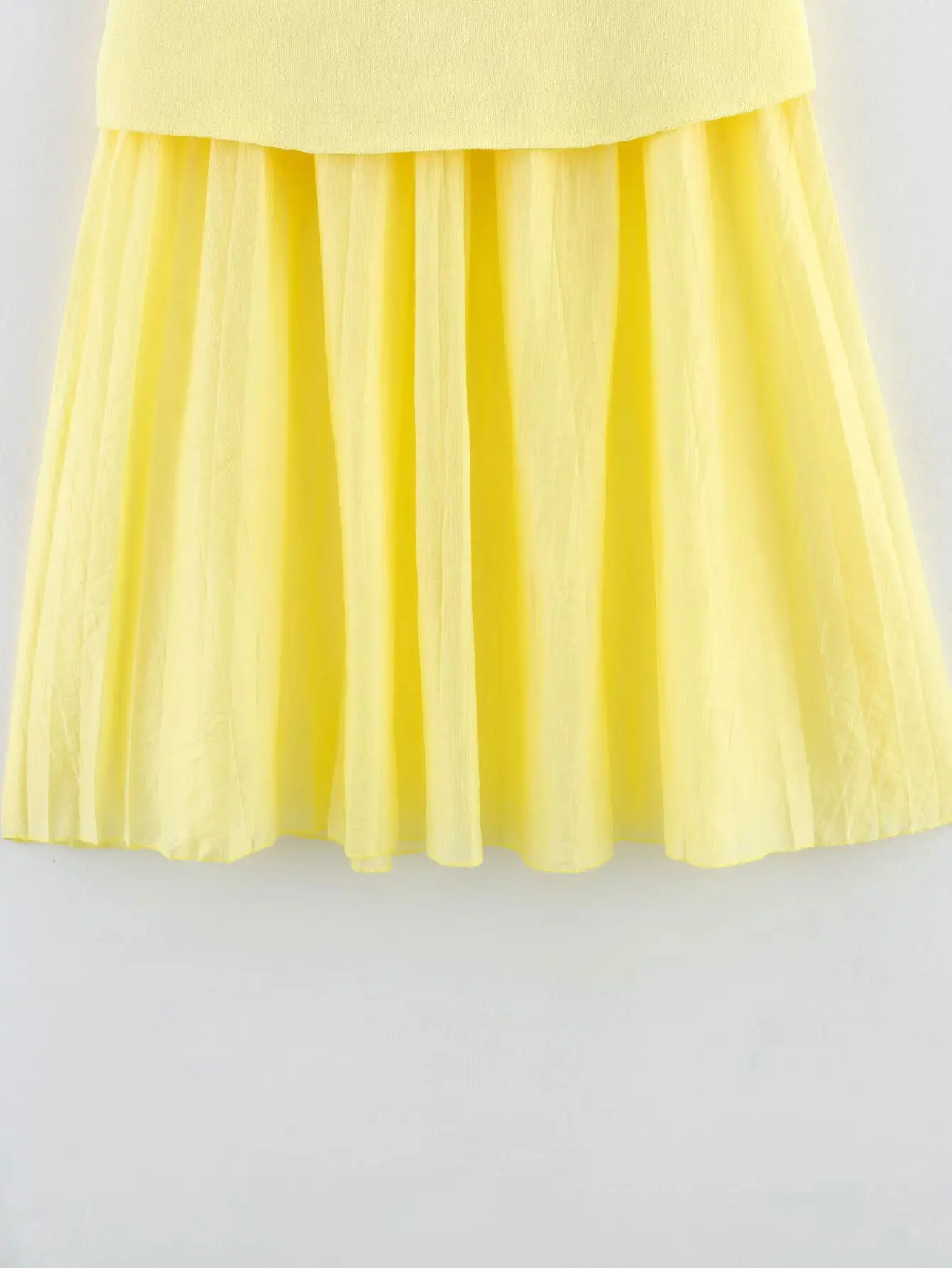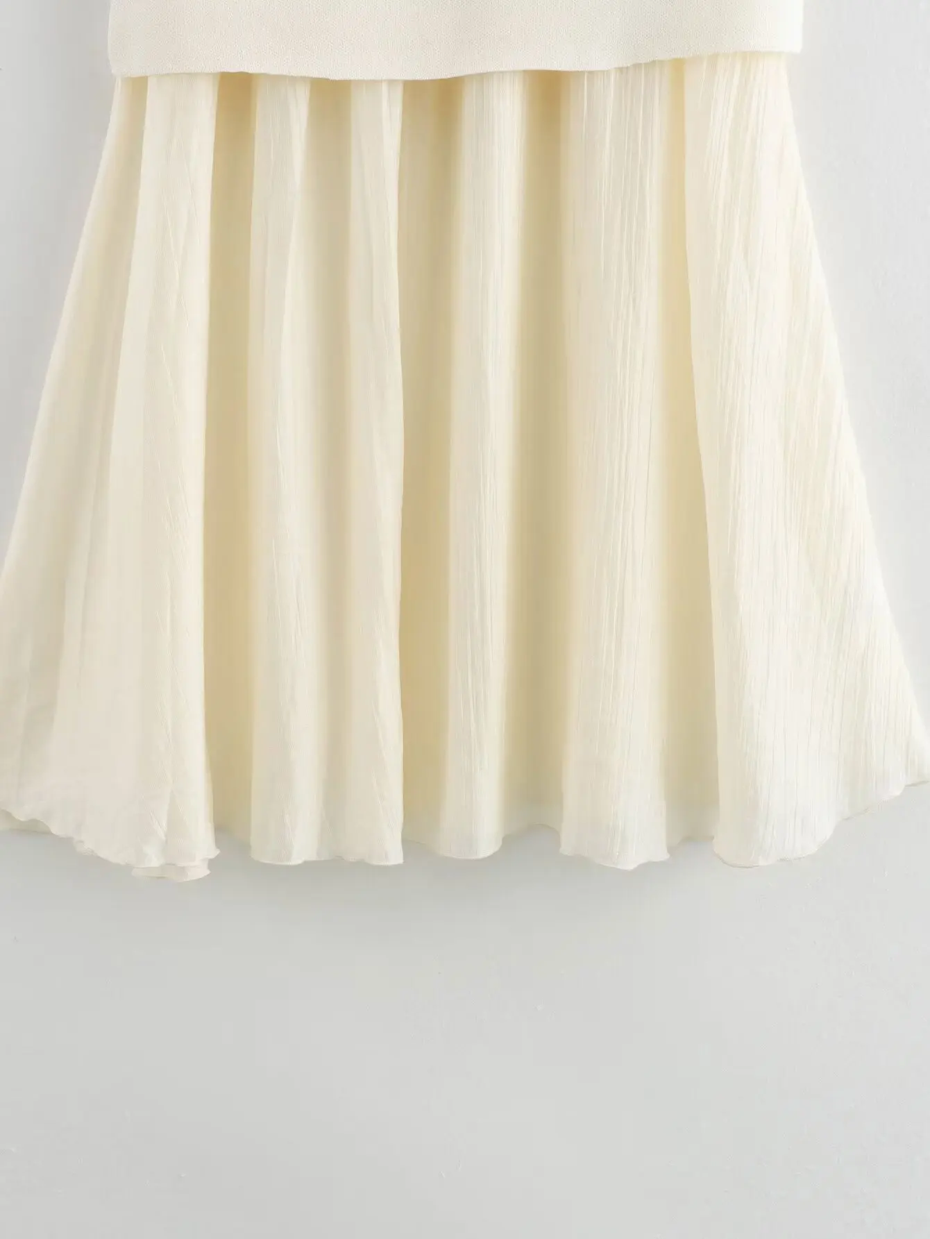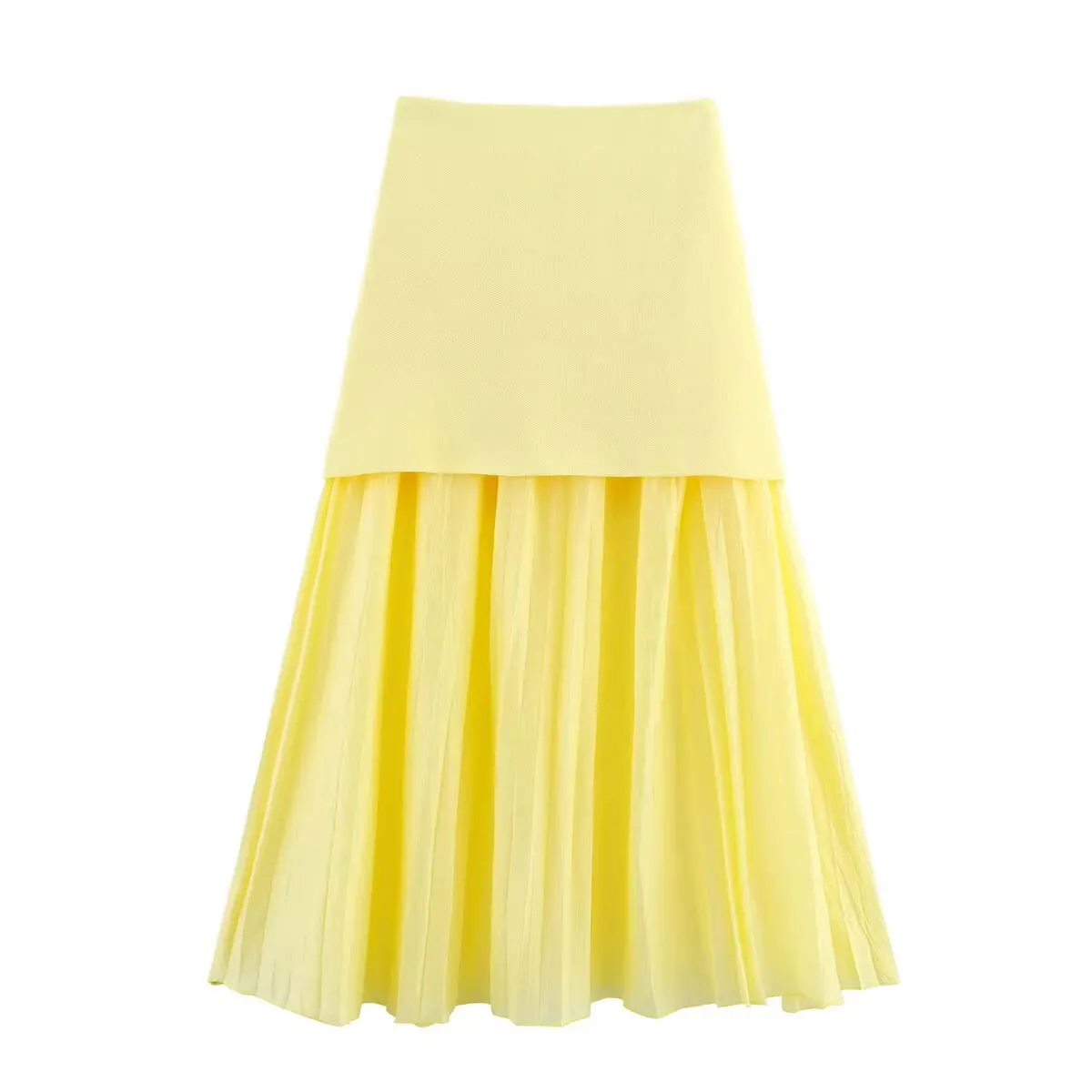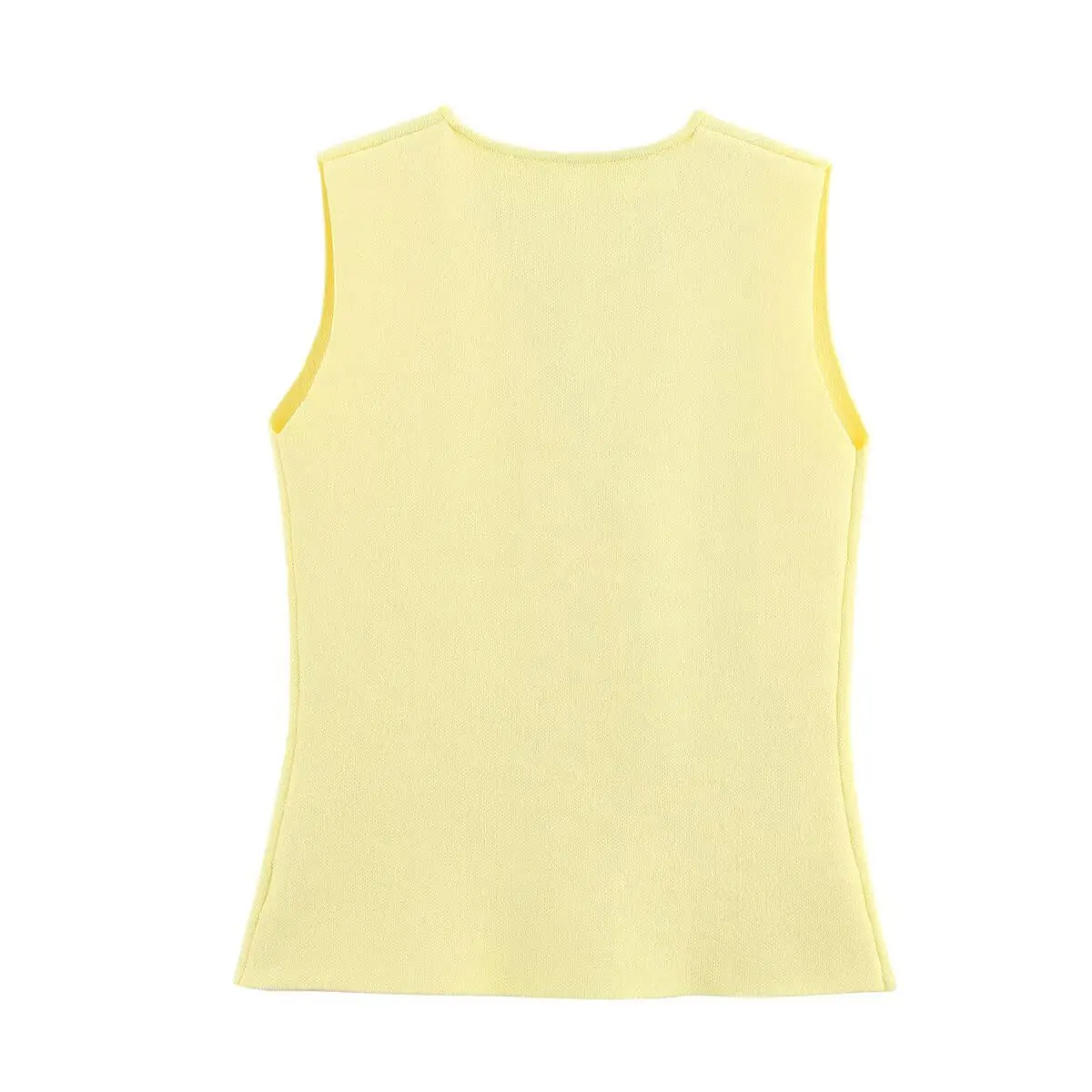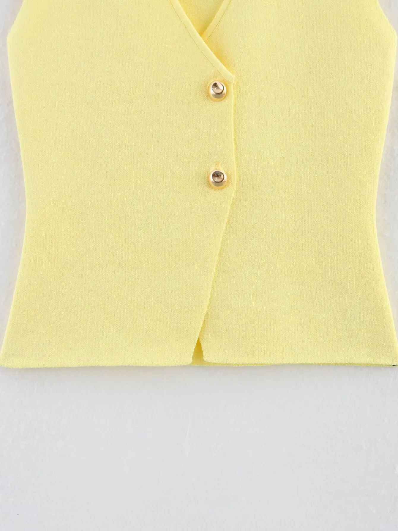 بدلة نسائية محبوكة أنيقة من TRAFZA بدون أكمام ورقبة على شكل حرف v سترة واحدة الصدر + على شكل حرف a عالية الخصر مقسمة مجموعة التنورة العصرية