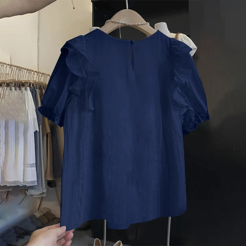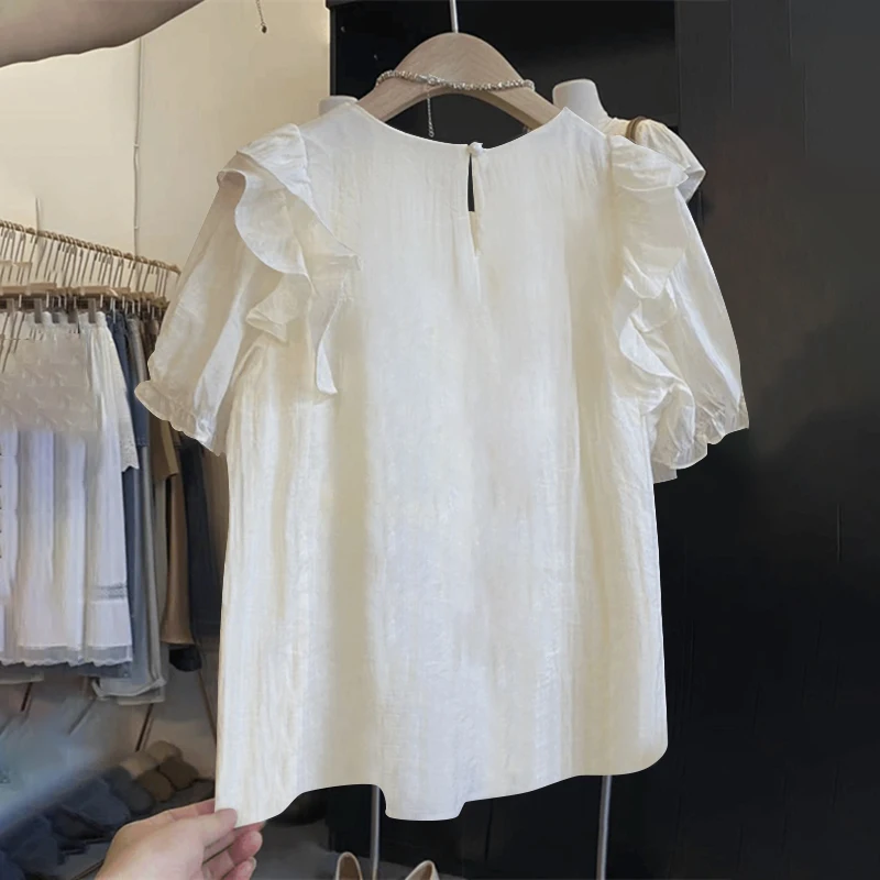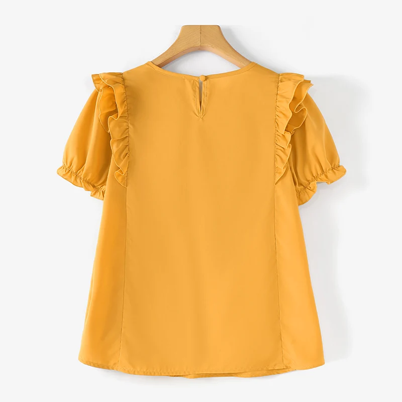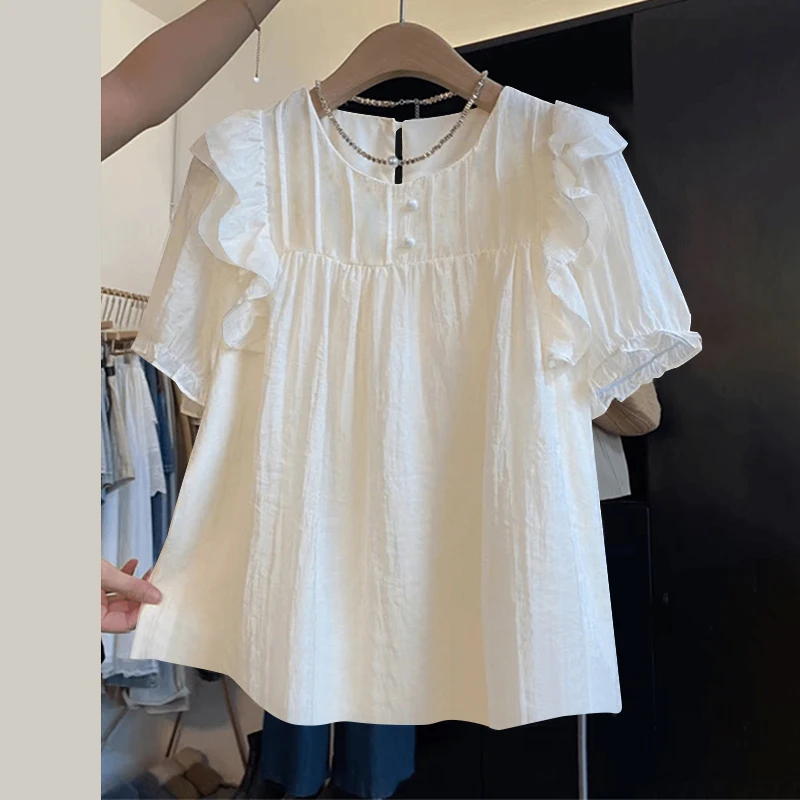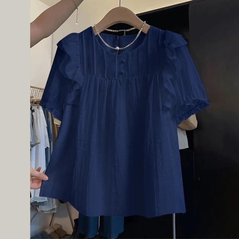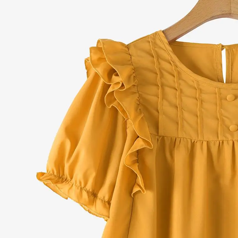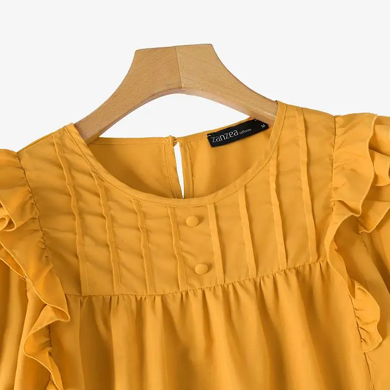 بلوزة زينزيا مرقعة مكشكشة للنساء ، أكمام قصيرة منفوخة ، قمم أنيقة ، سترة للعطلات ، أزرار ذات ثنيات ، موضة كورية ، عطلة