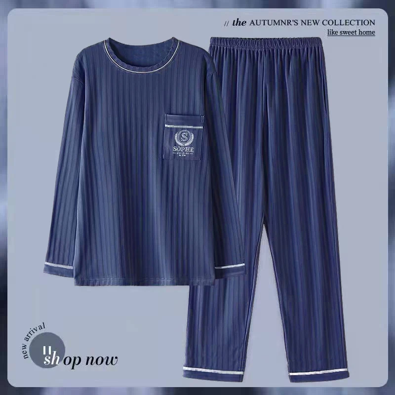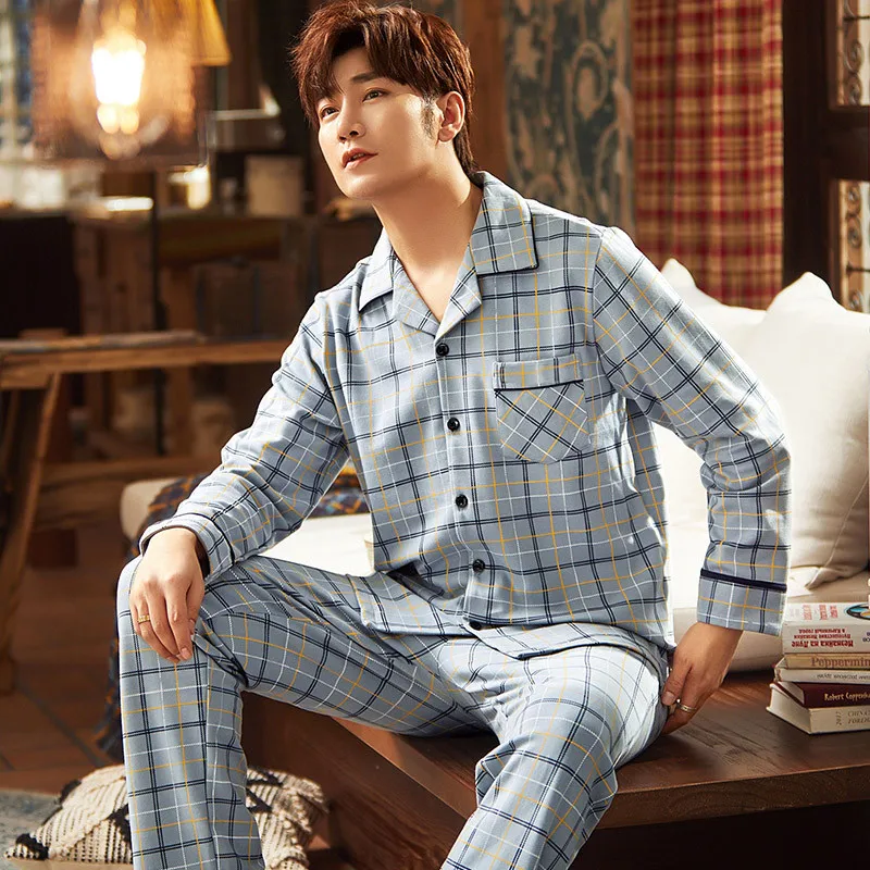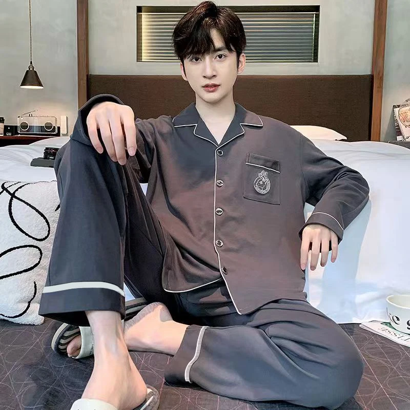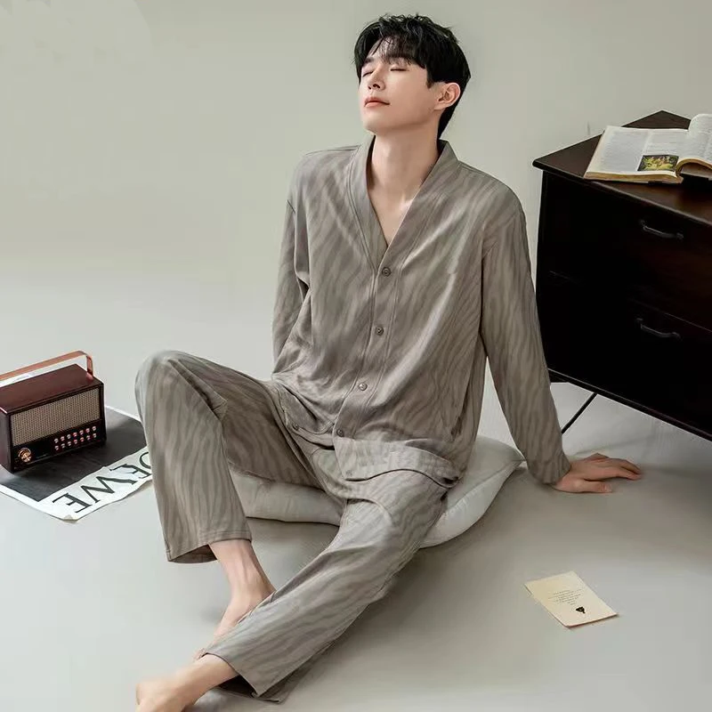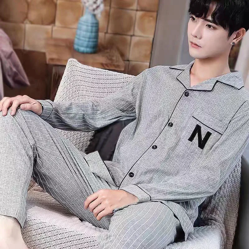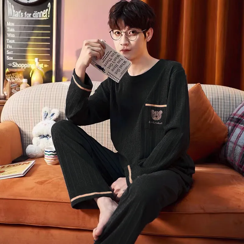 بيجامات رجالية للمراهقين بأكمام طويلة للربيع والخريف بلوفر رجالي مقاس كبير ملابس منزلية رفيعة