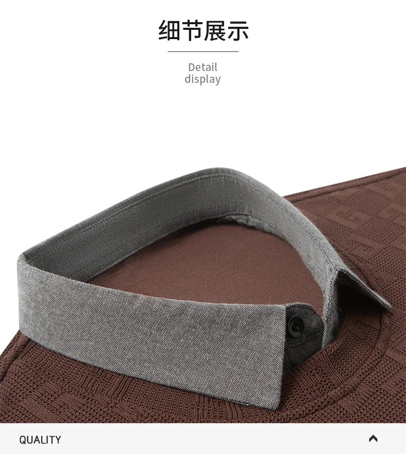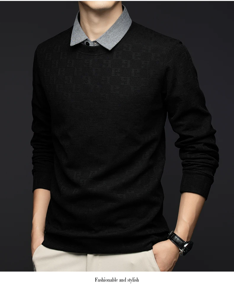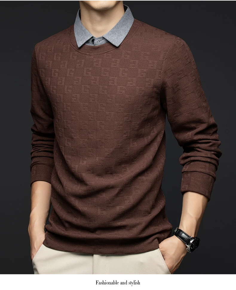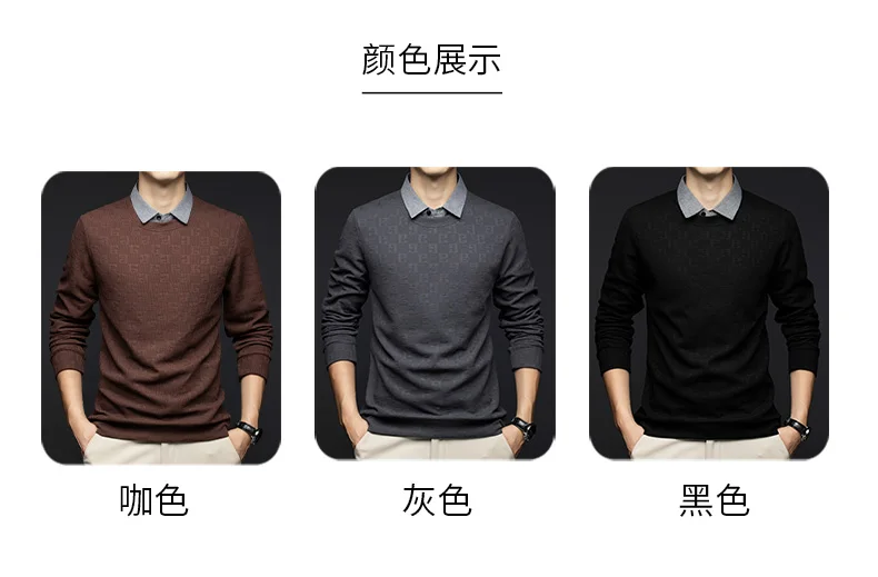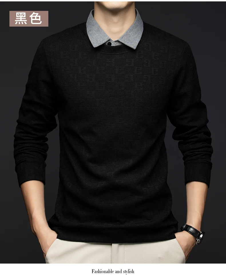 تيشيرت دافئ سميك للرجال ، توبات للعمل في الخريف والشتاء ، سترة ذات طبقات ، مع ياقة قميص مخيطة