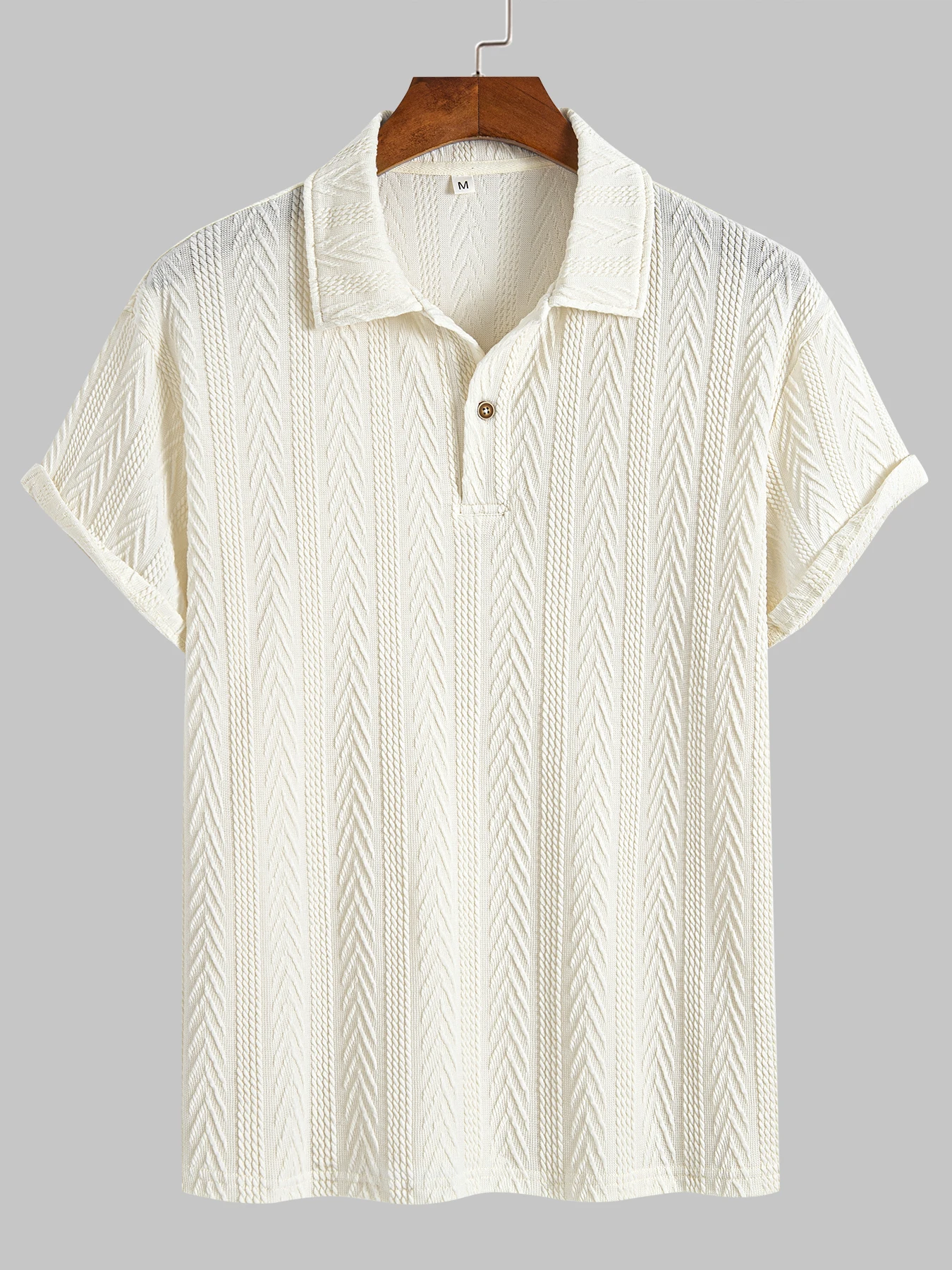 تي شيرت جاكار رجالي بلون سادة ، قمصان أساسية ، ياقة بولو مزخرفة ، نصف زر ، أكمام قصيرة ، قمصان جديدة ، صيحات