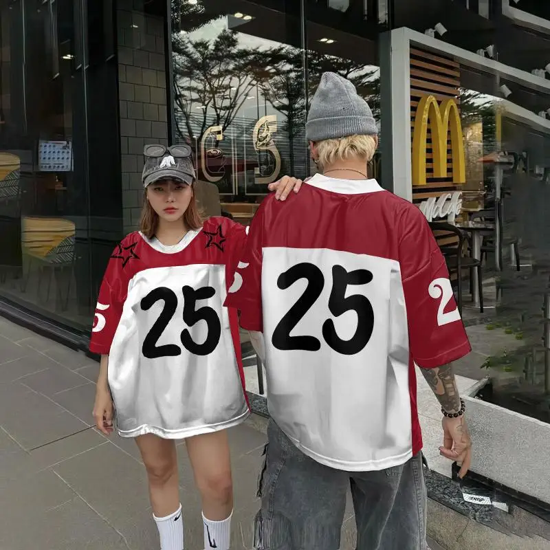 تي شيرت رجالي مطبوع رقميًا لكرة السلة ، كبير الحجم ، أكمام قصيرة ، تيشيرتات فضفاضة ، توب كاجوال يومي ، موضة زوجين ، صيف