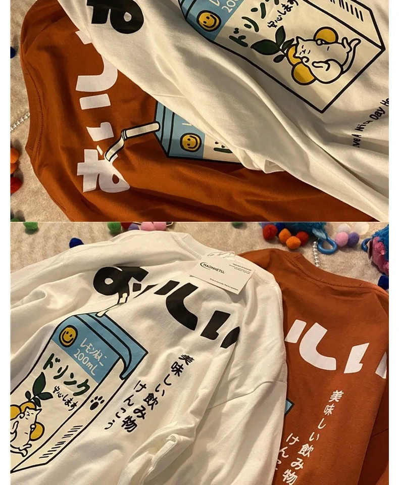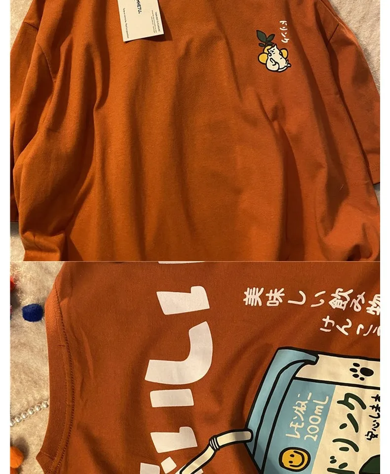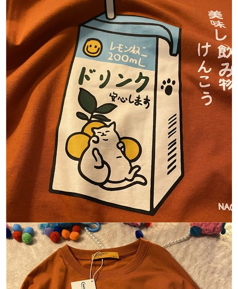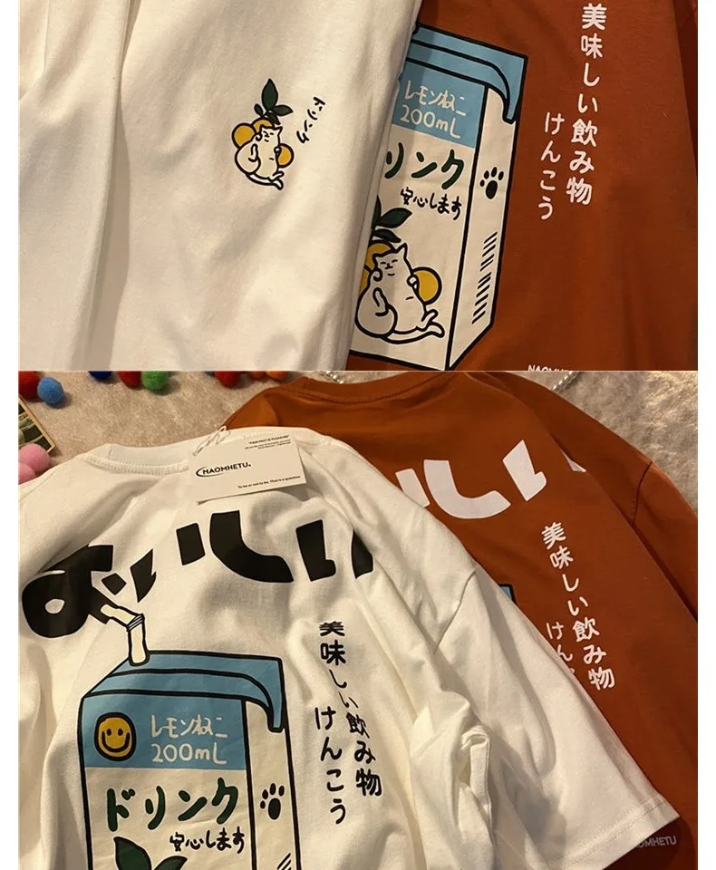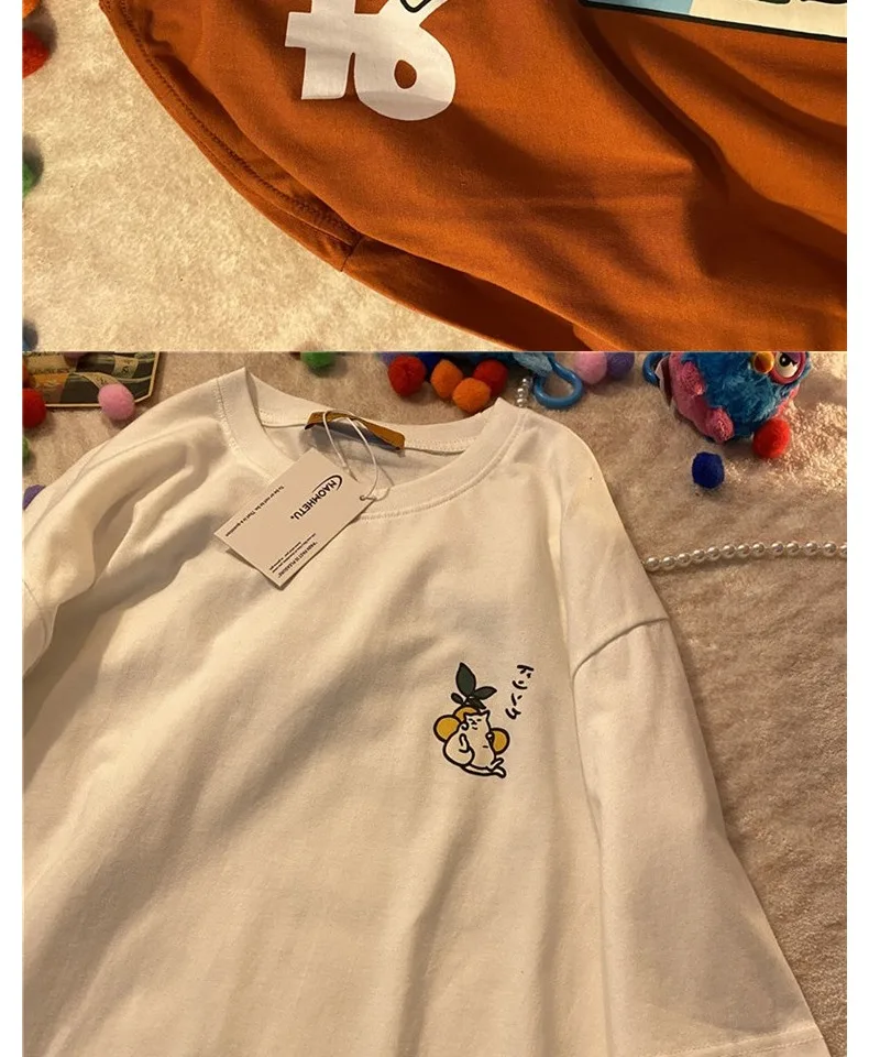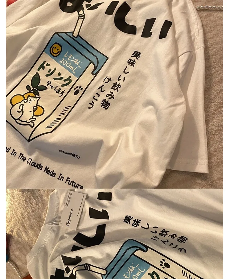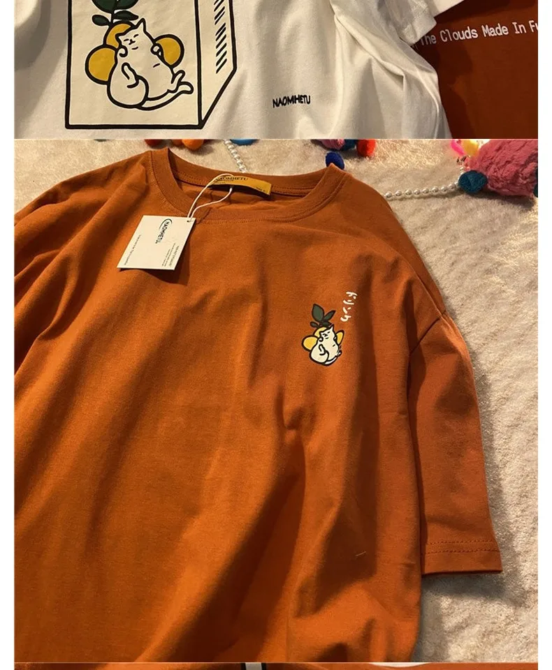 تي شيرت نسائي فضفاض بأكمام قصيرة ، توب مطبوع عليه رسوم كرتونية عتيقة ، قطن ، نسخة كورية ، جديد ، صيف ، من من من من القطن