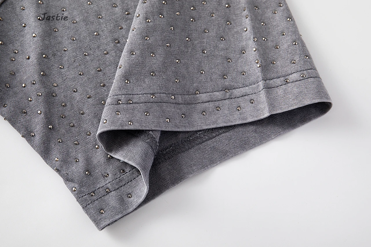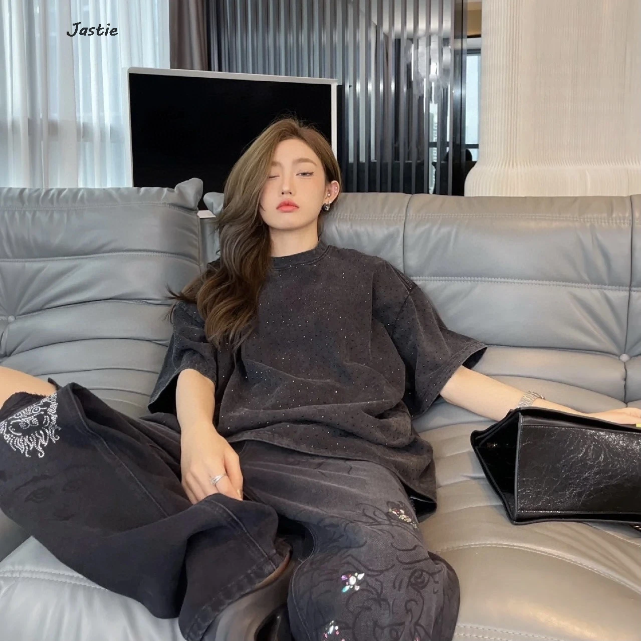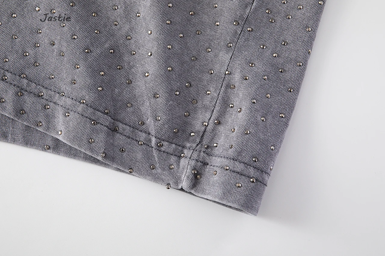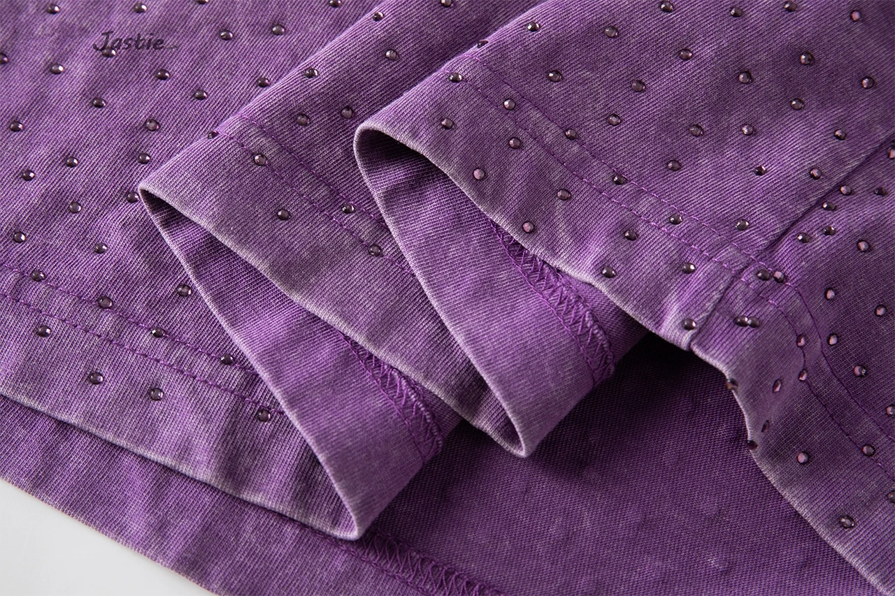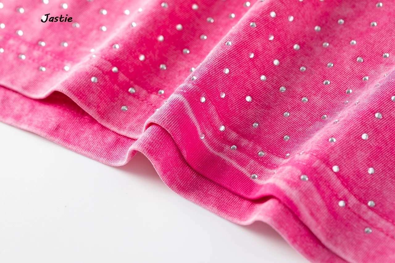 تي شيرت نسائي كاجوال من حجر الراين الأسود ، رقبة مستديرة ، تيشيرتات بأكمام قصيرة ، فضفاض ، متوسط الطول ، ملابس نساء الشوارع ، الصيف