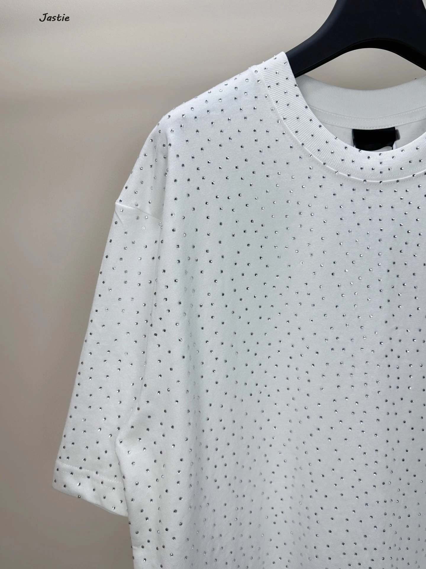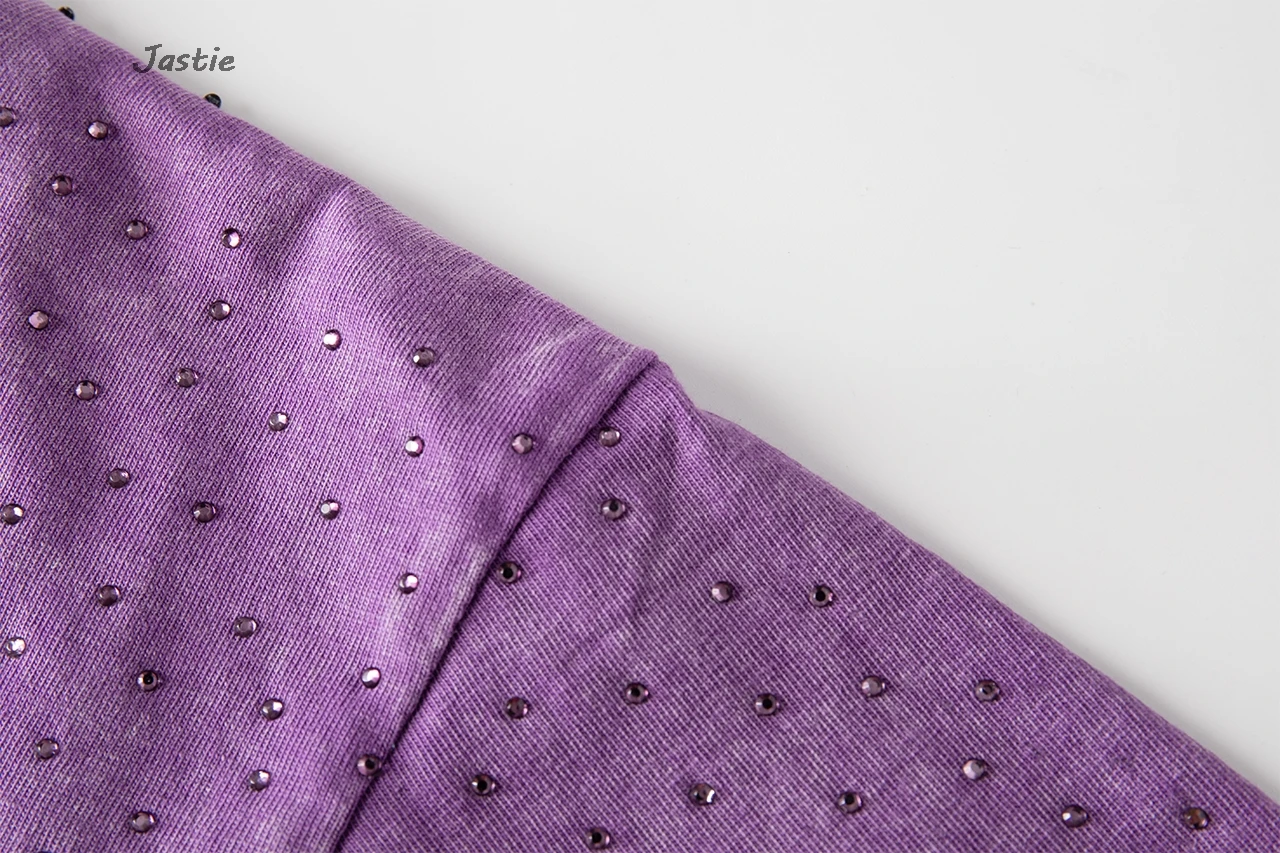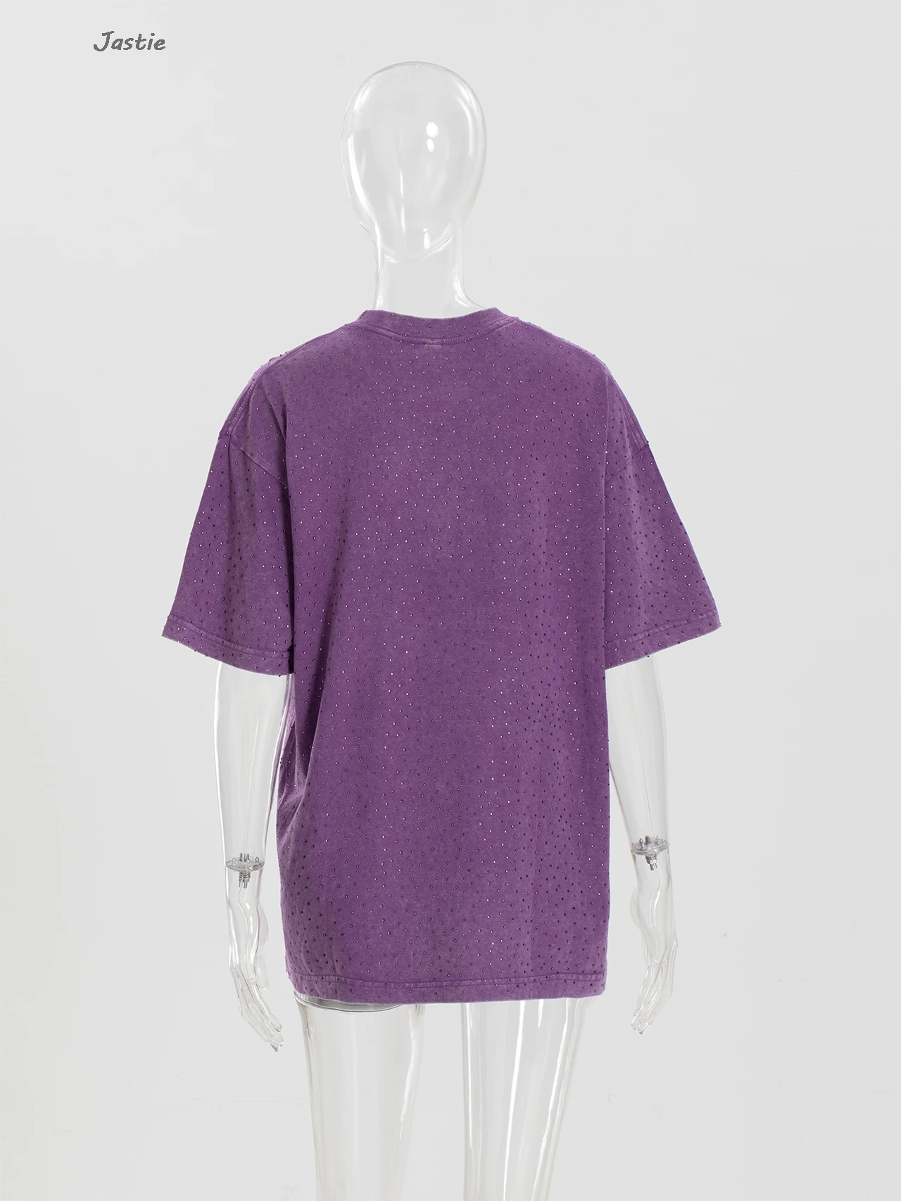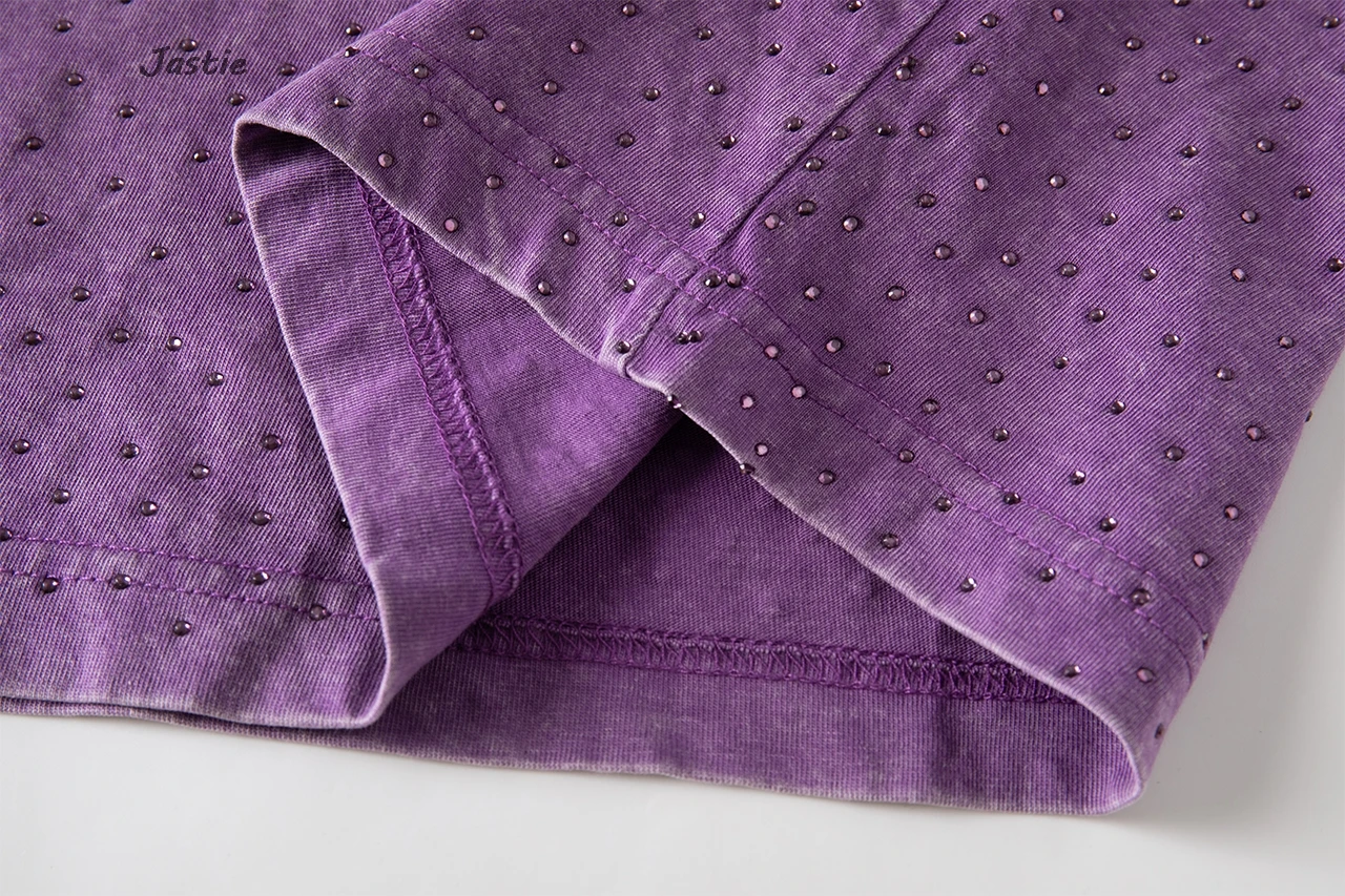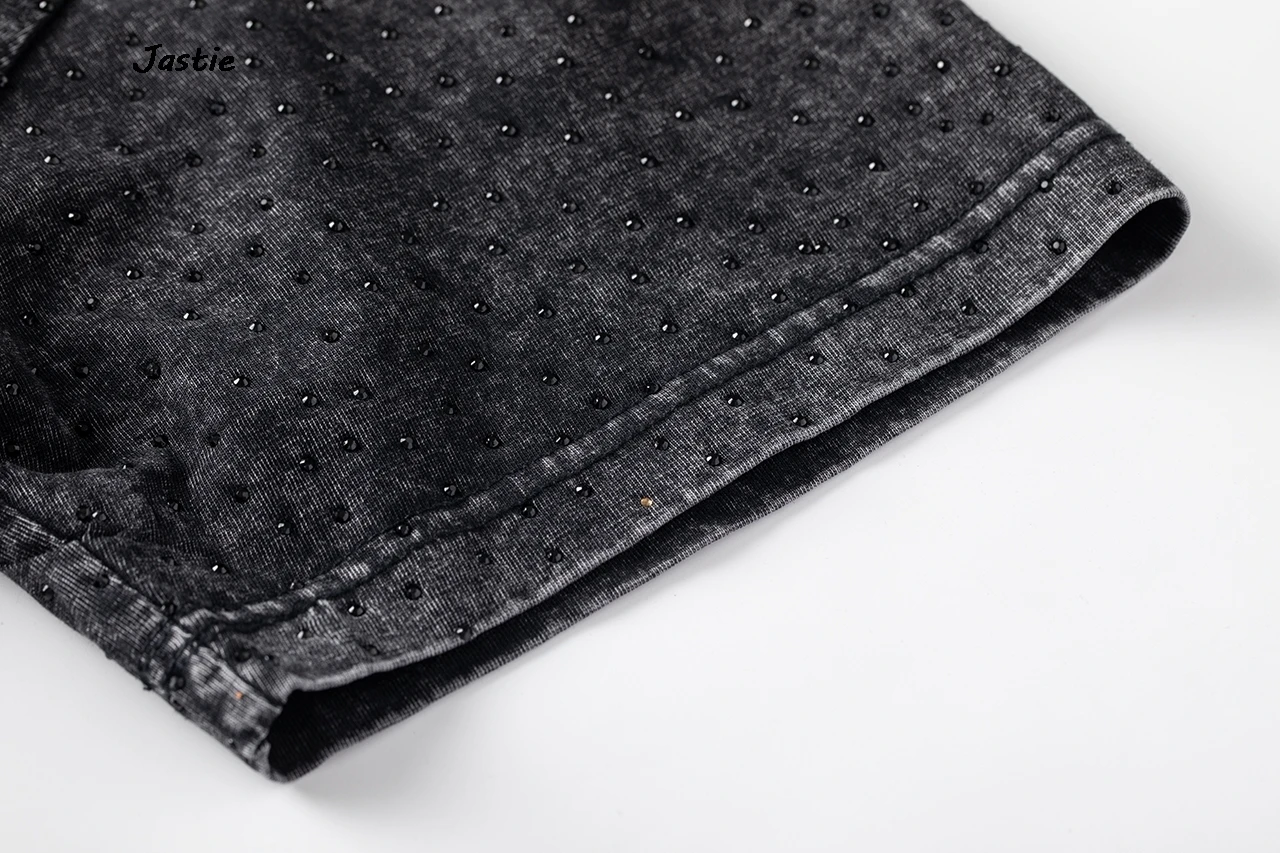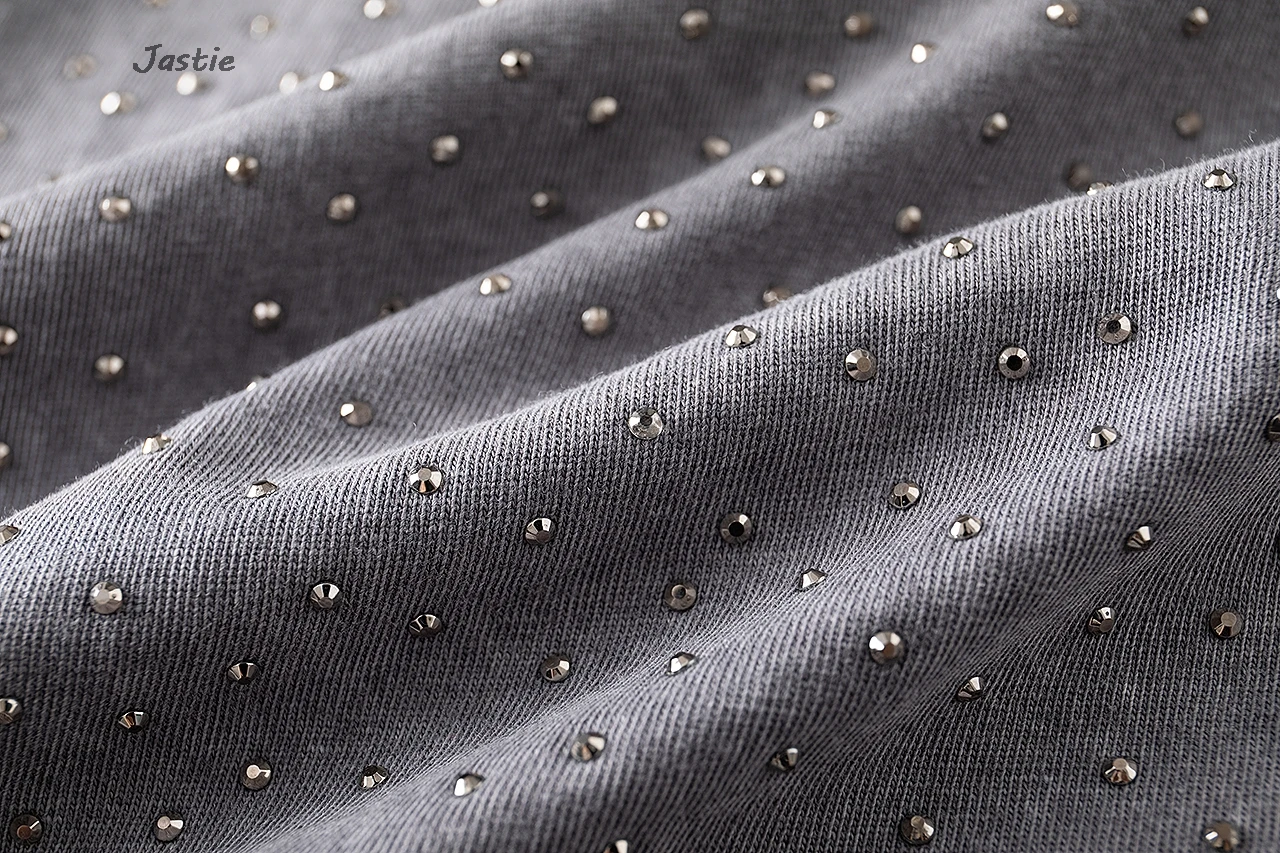 تي شيرت نسائي كاجوال من حجر الراين الأسود ، رقبة مستديرة ، تيشيرتات بأكمام قصيرة ، فضفاض ، متوسط الطول ، ملابس نساء الشوارع ، الصيف