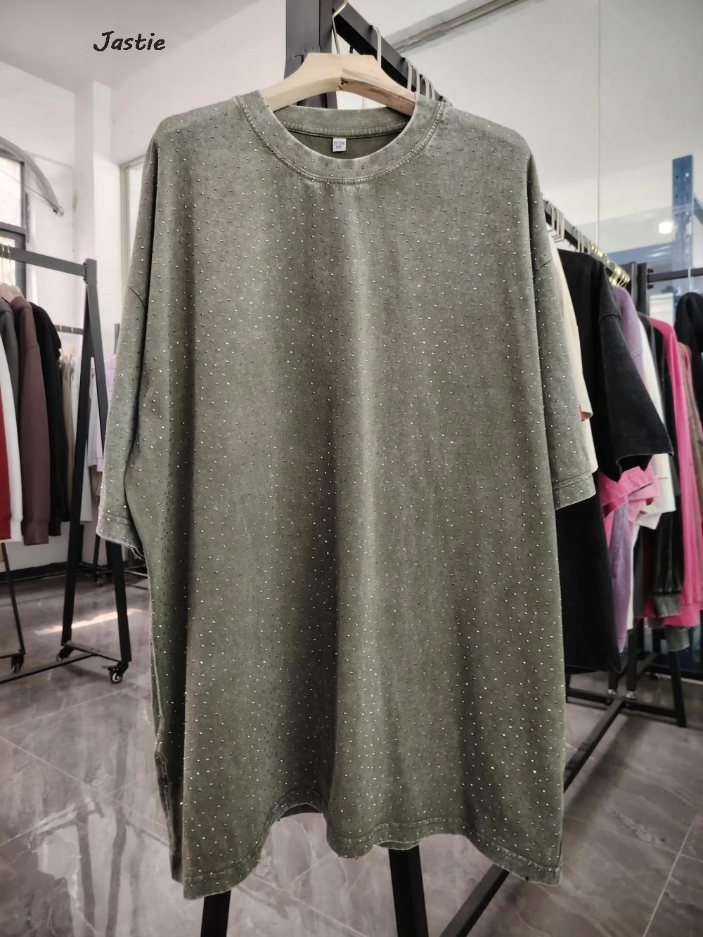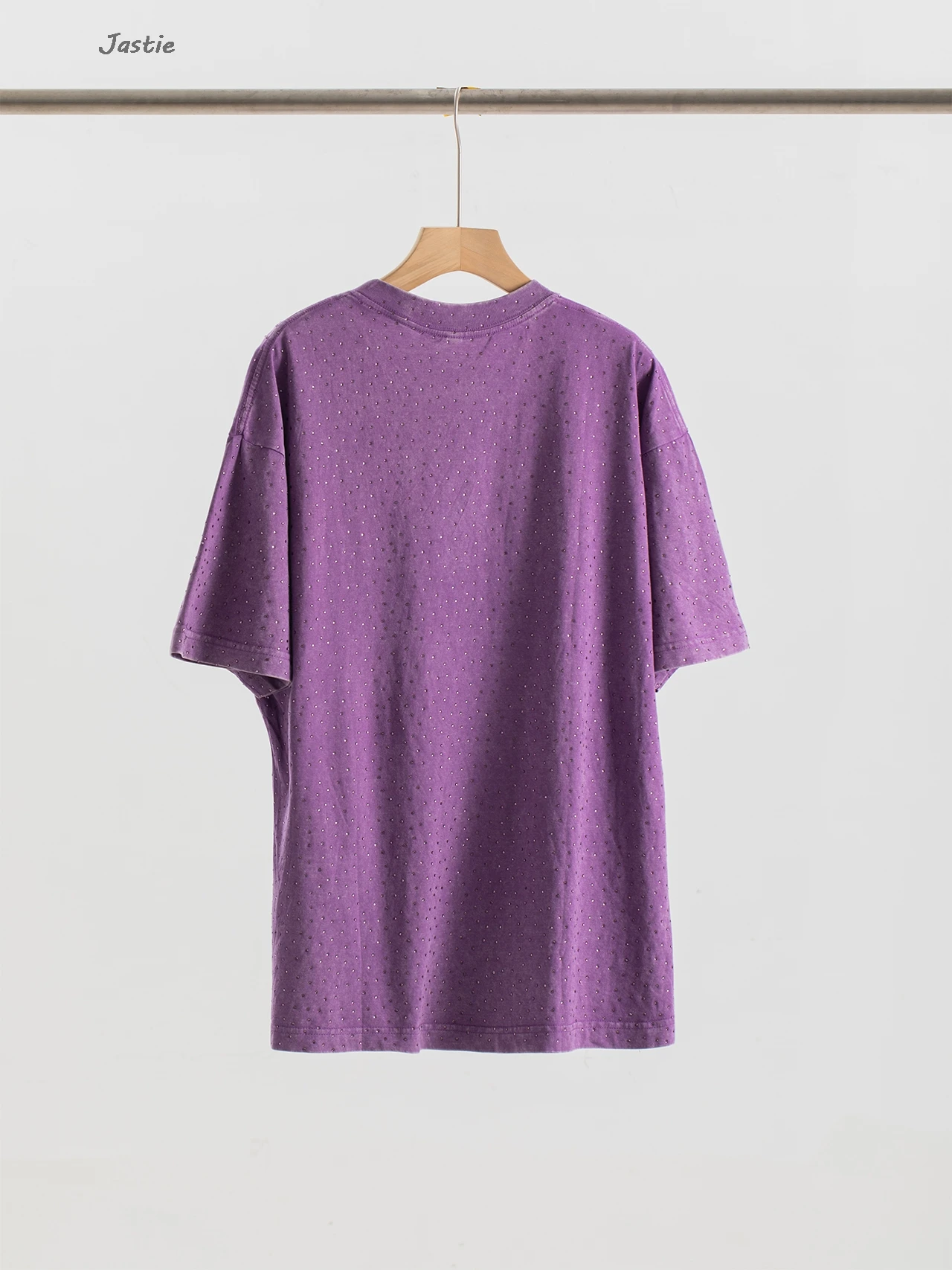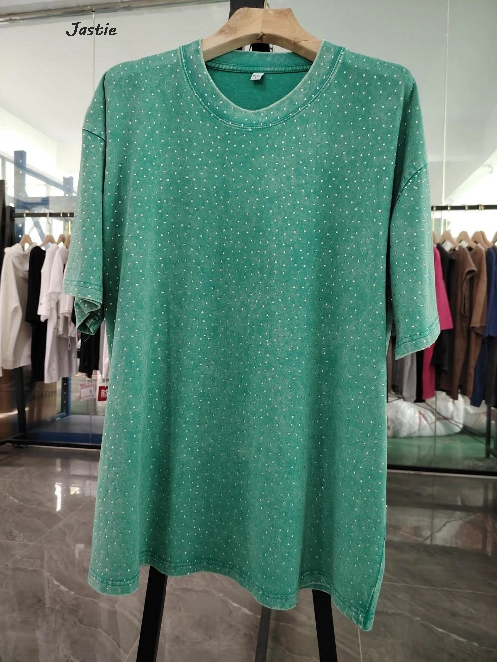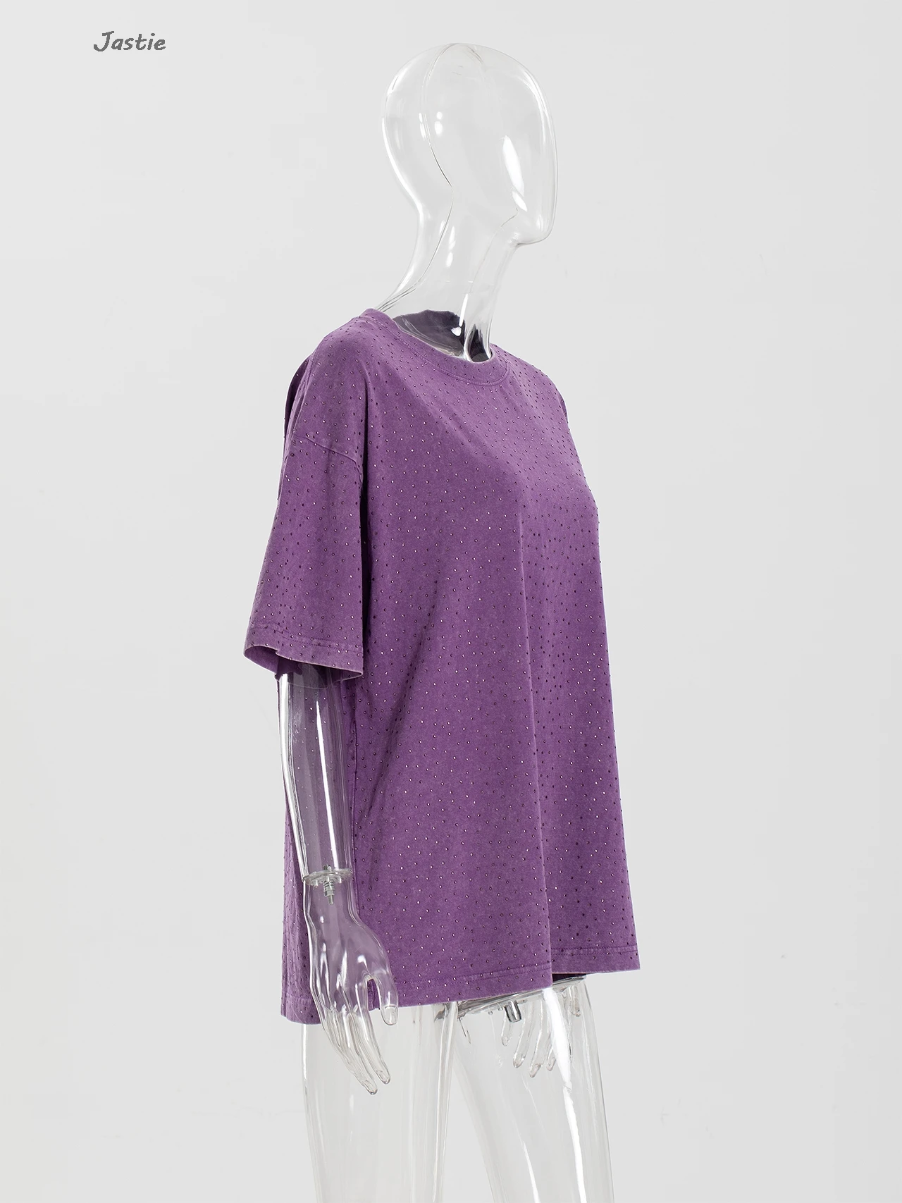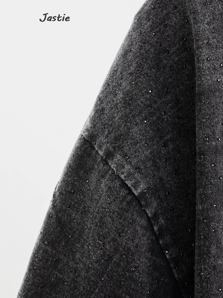 تي شيرت نسائي كاجوال من حجر الراين الأسود ، رقبة مستديرة ، تيشيرتات بأكمام قصيرة ، فضفاض ، متوسط الطول ، ملابس نساء الشوارع ، الصيف