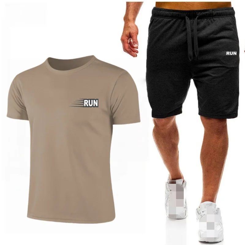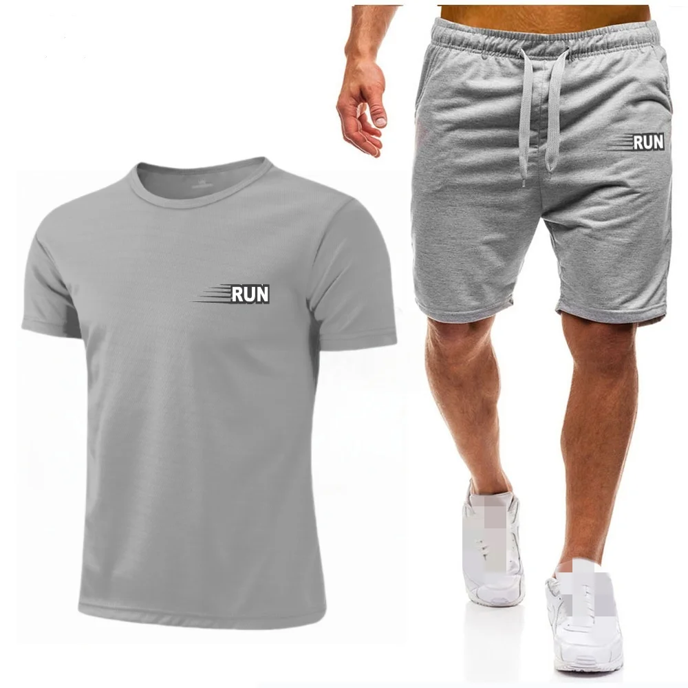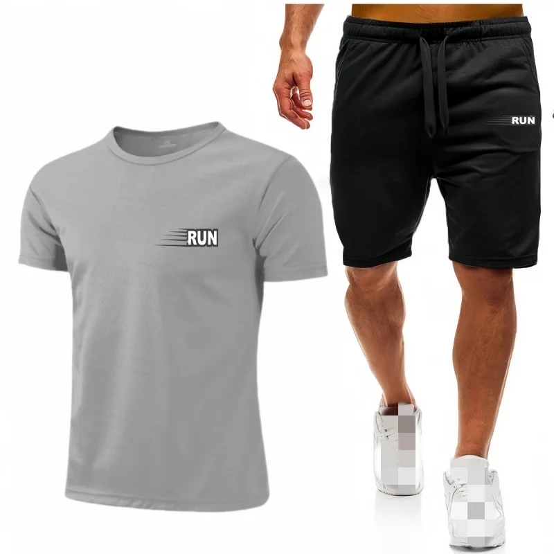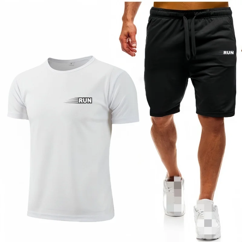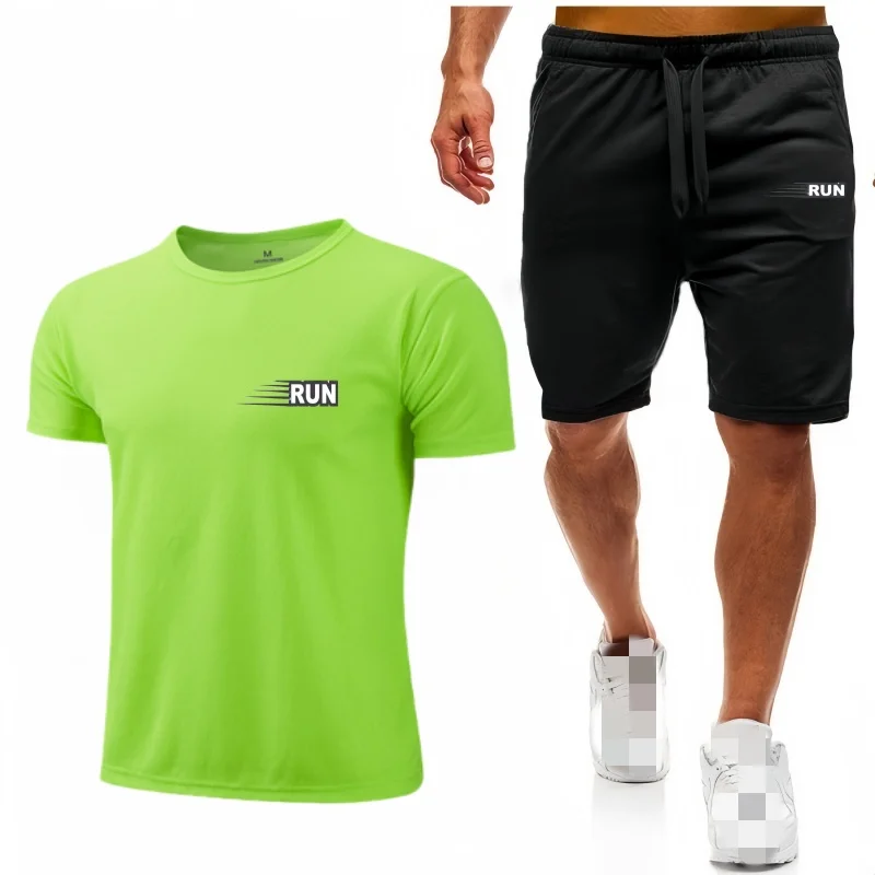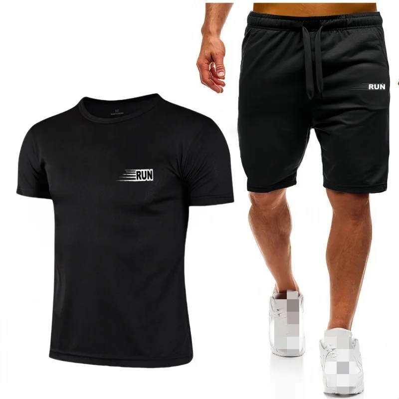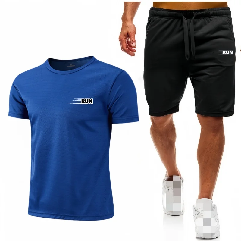 جديد الرجال مجموعة شبكة تي شيرت السراويل قطعتين ملابس رياضية اللياقة البدنية التدريب الجري سريعة الجافة تي شيرت مجموعة