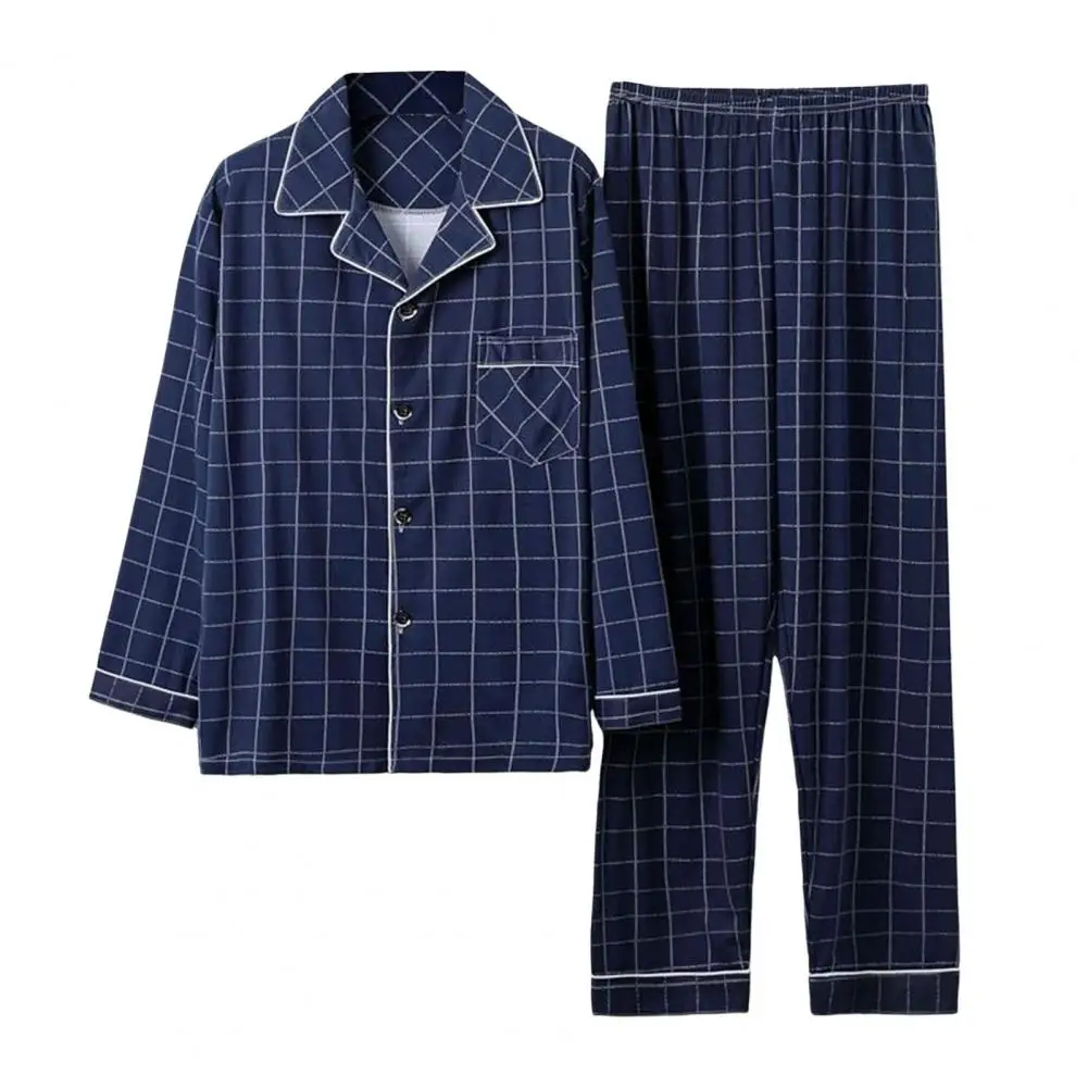 تتميز مجموعة ملابس الاسترخاء الرجالية بمقاس مريح، مما يوفر راحة لا مثيل لها.يعرض التصميم طية صدر السترة ذات الصدر الواحد، مما يجمع بين البساطة والجاذبية المتعلقة بالموضة.متعددة الاستخدامات بطبيعتها، يمكن ارتداء بدلة الملابس المنزلية هذه كمجموعة كاملة أو كفصلات.