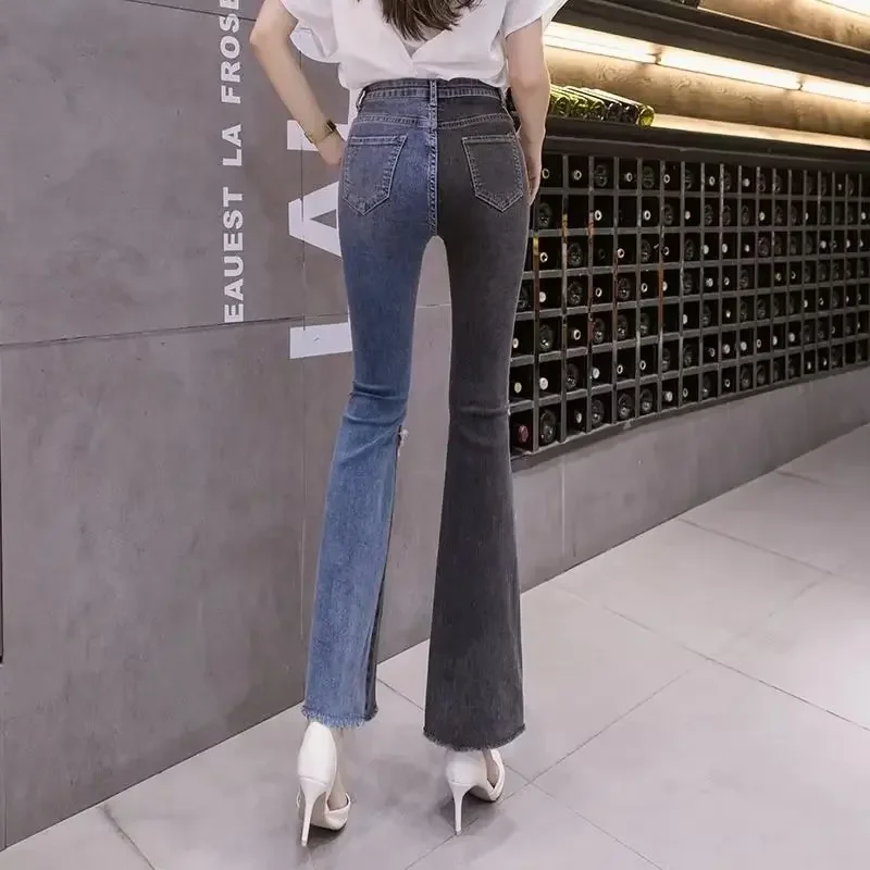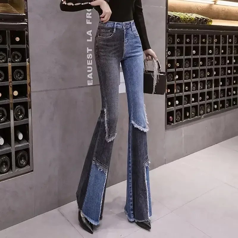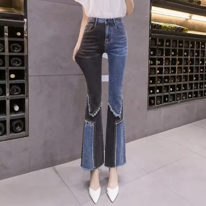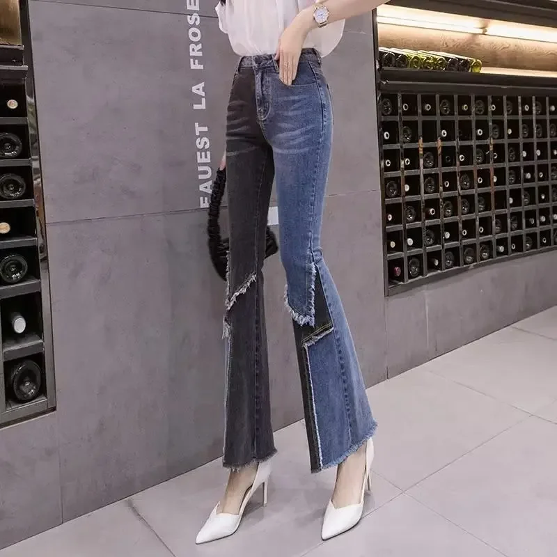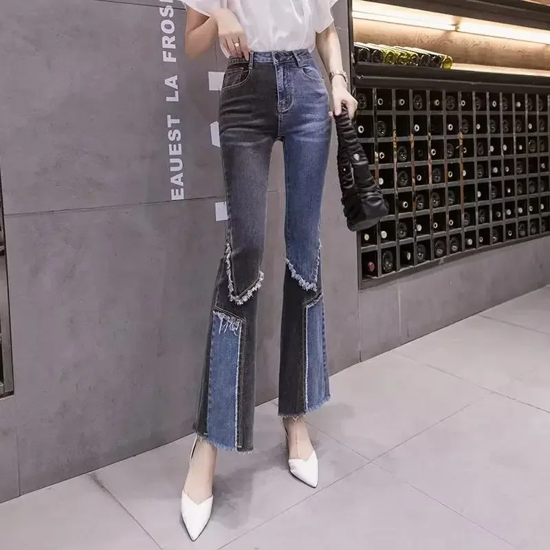 جديد 2024 جينز ربيعي وخريفي عالي الخصر للتخسيس جينز نسائي فضفاض مناسب بخصر مطاطي بطول الكاحل من قماش الدنيم