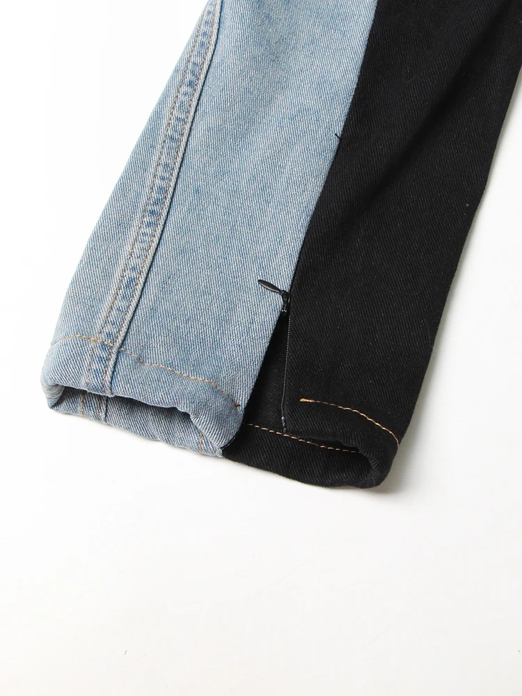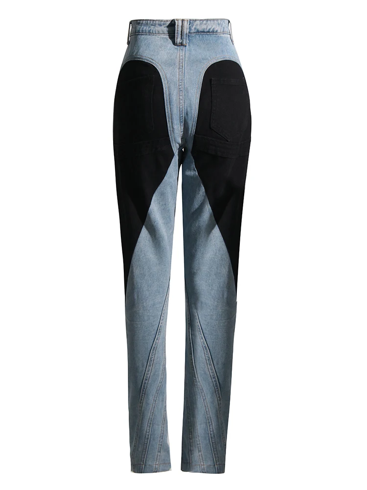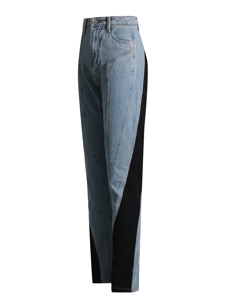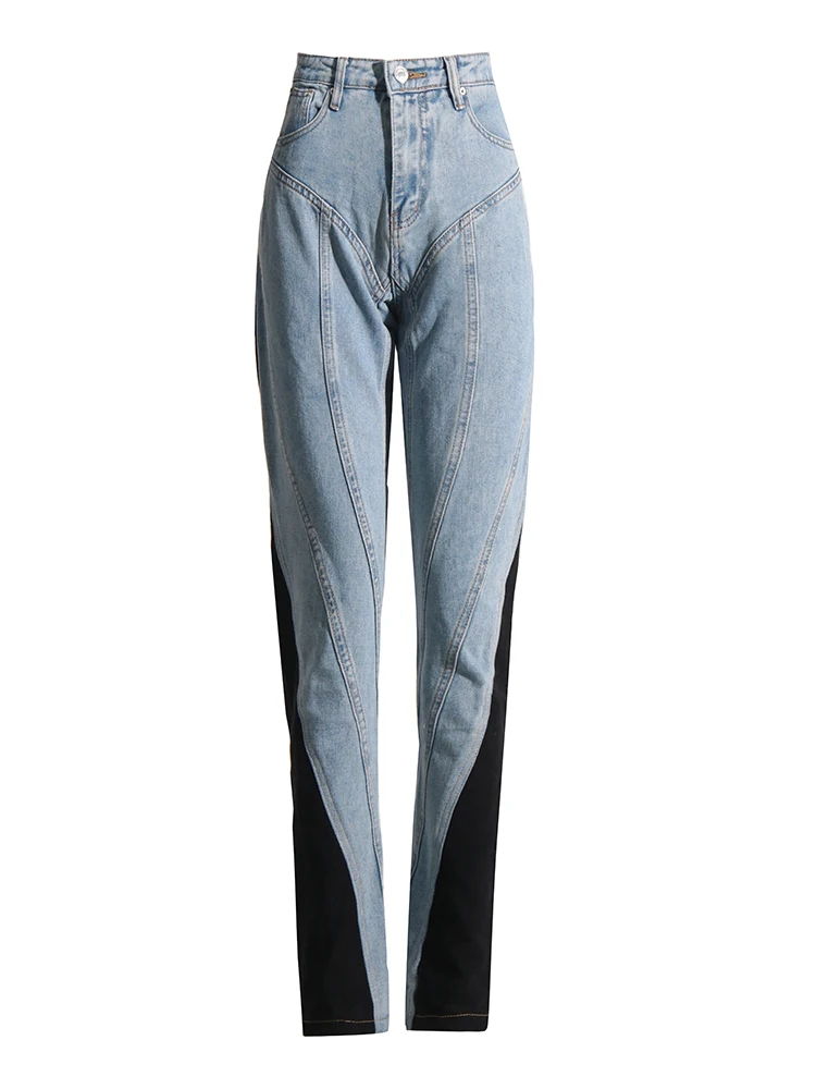 جينز مرقع عالي الخصر للنساء ، زر ، ملاصق للجسم غير رسمي ضيق ، بنطال واسع الساق ، ملابس عصرية للنساء ، جينز ملون