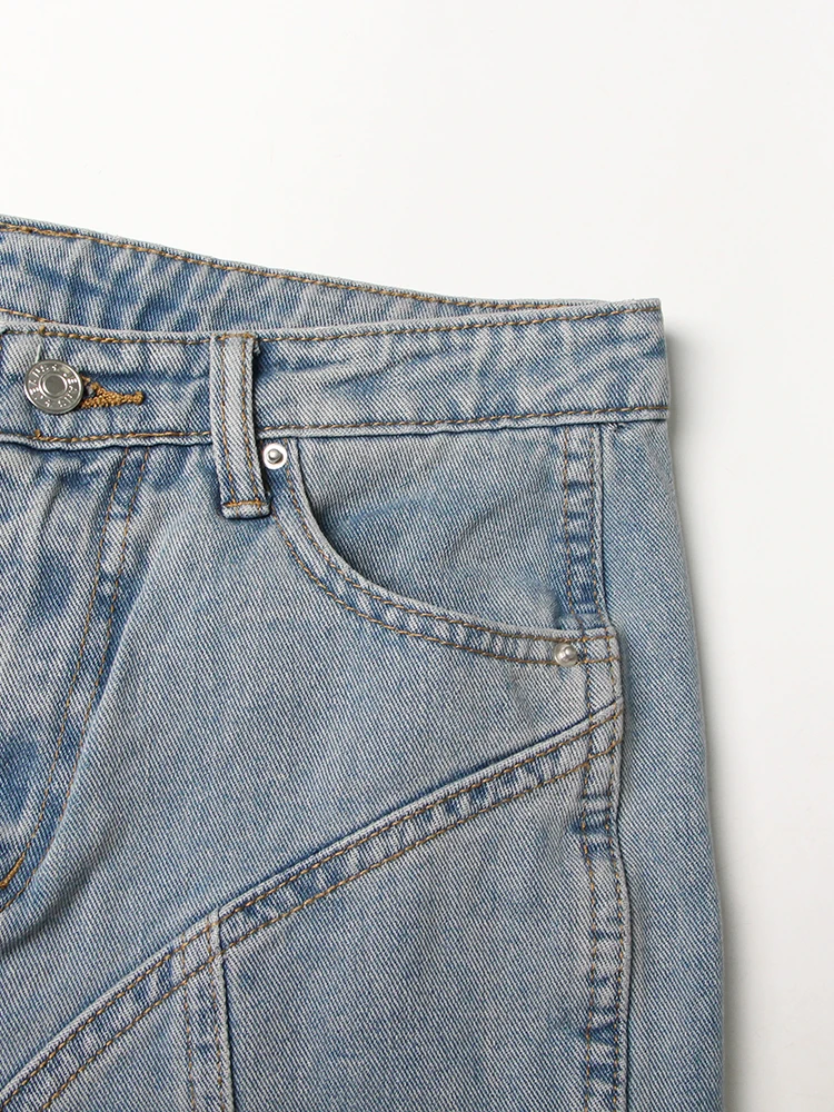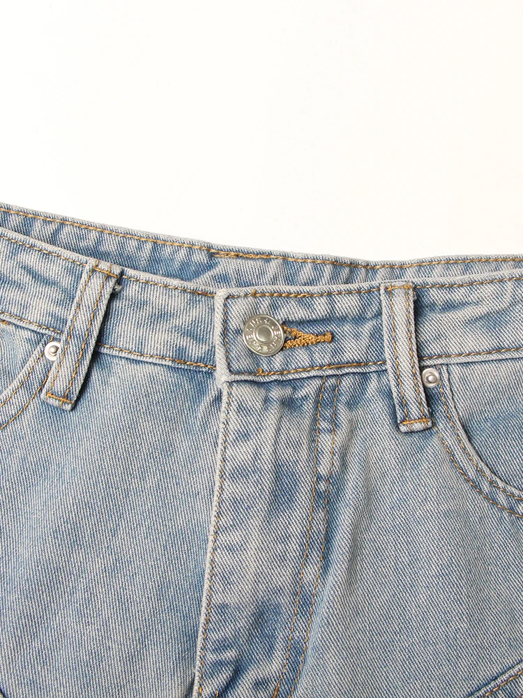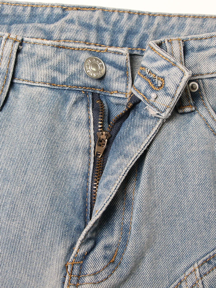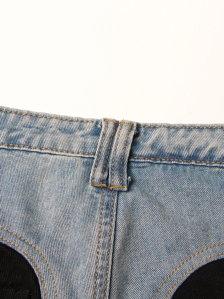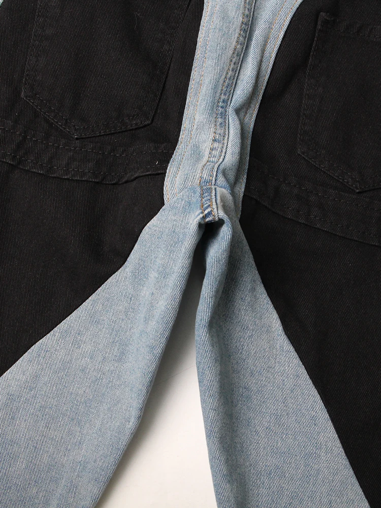 جينز مرقع عالي الخصر للنساء ، زر ، ملاصق للجسم غير رسمي ضيق ، بنطال واسع الساق ، ملابس عصرية للنساء ، جينز ملون