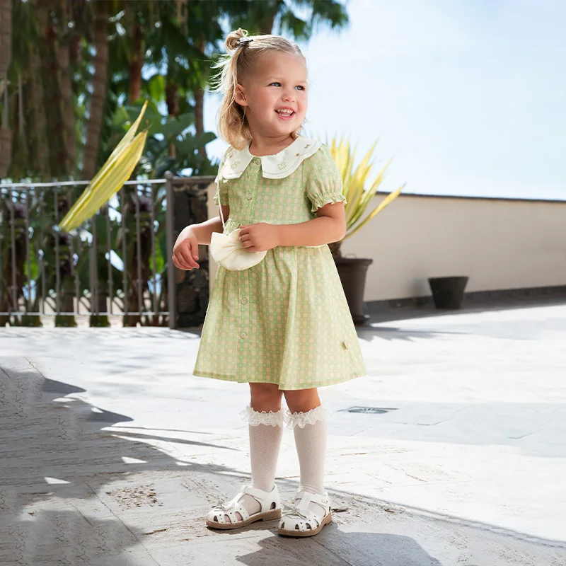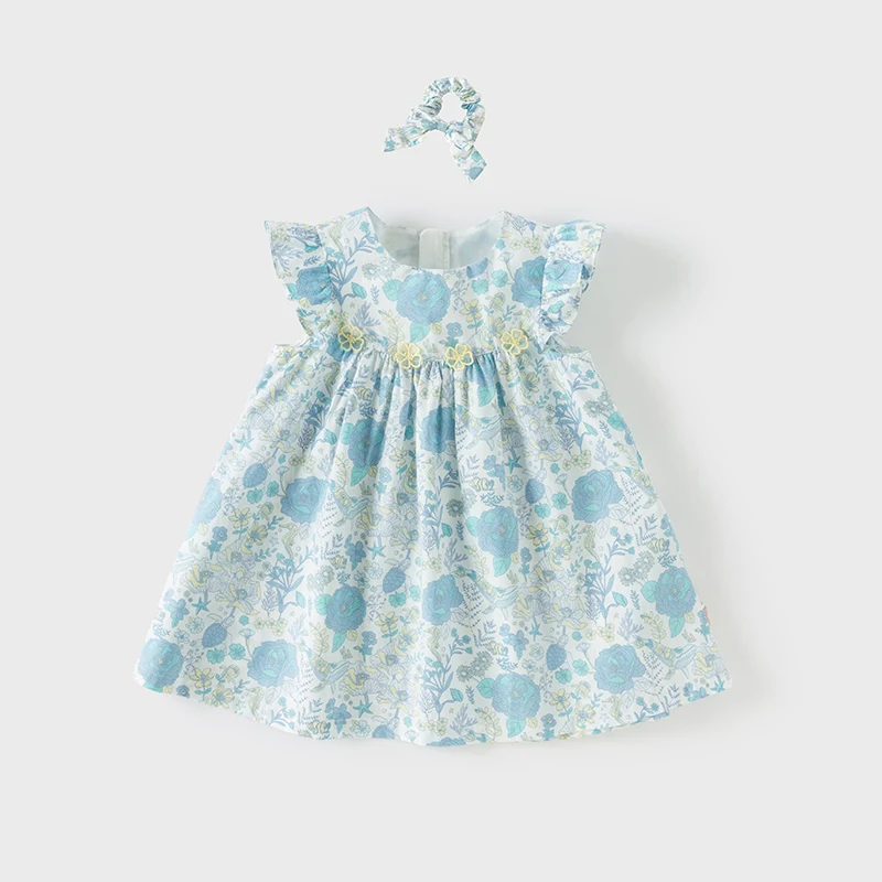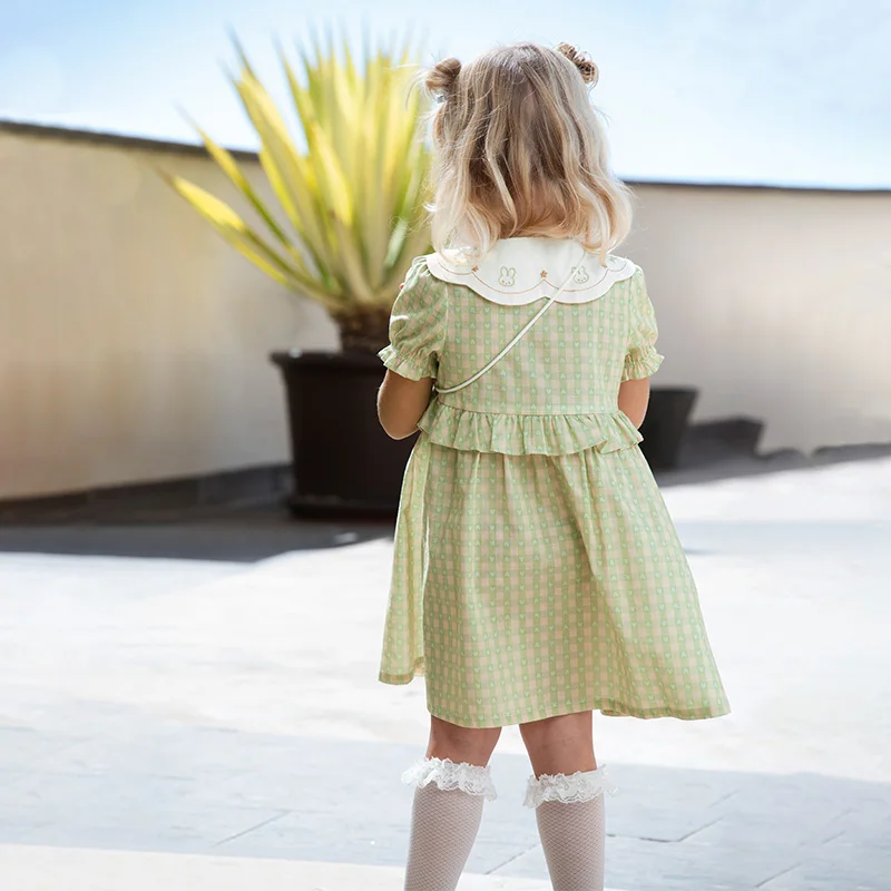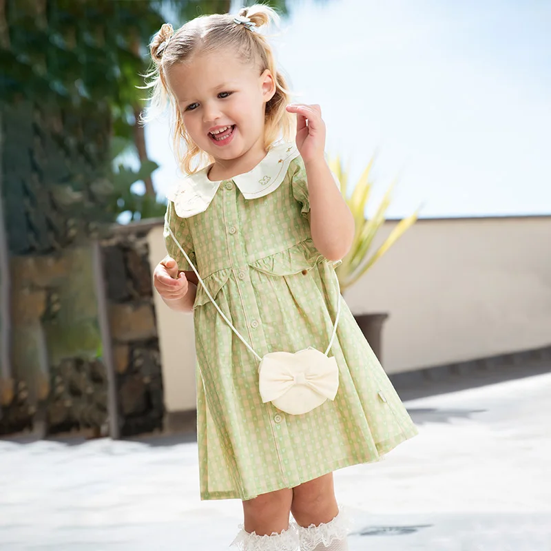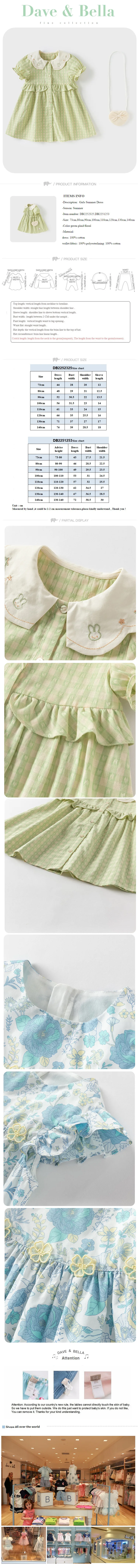 ديف بيلا بنات طفل فستان الأميرة الصيف سحر الحلو أنيقة للأطفال الأخضر منقوشة فستان رقيق لطيف محفظة الطرف DB 2252325