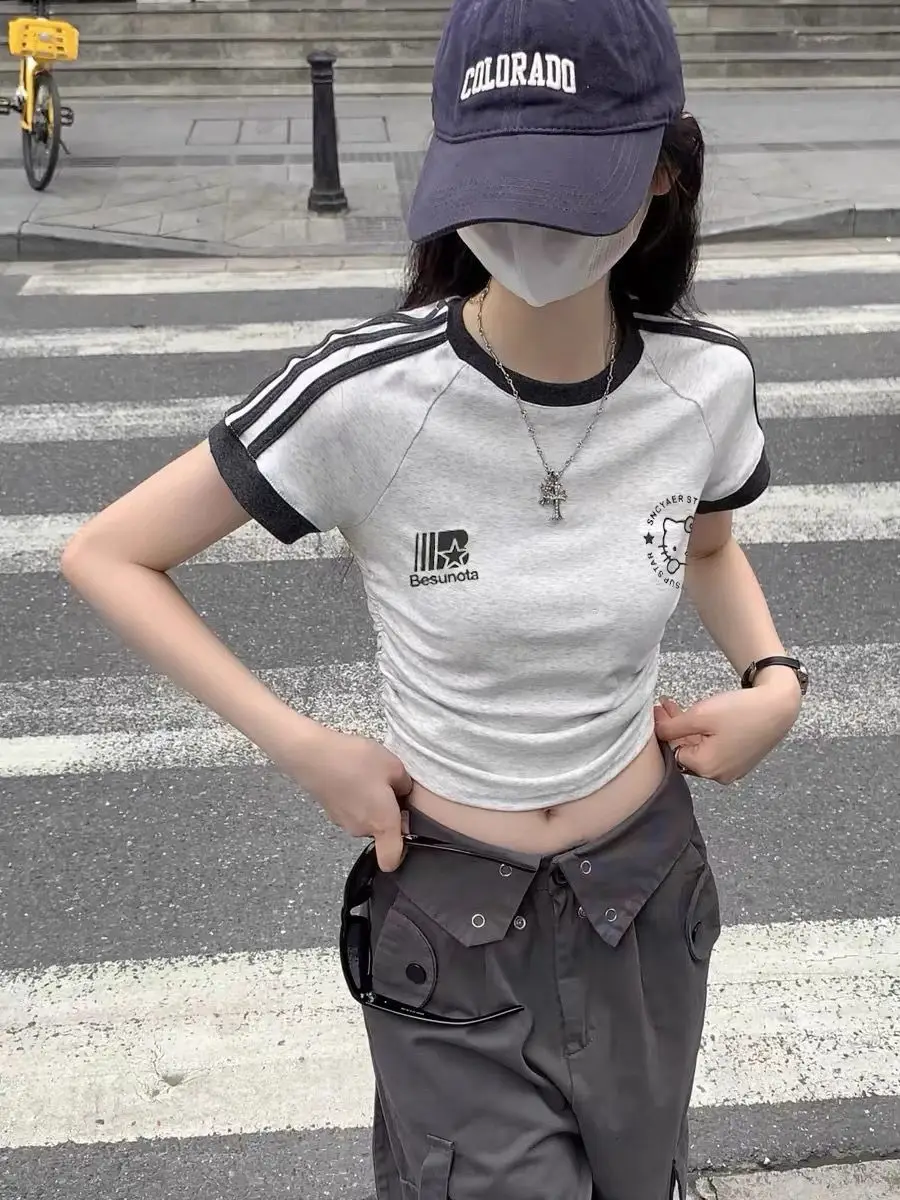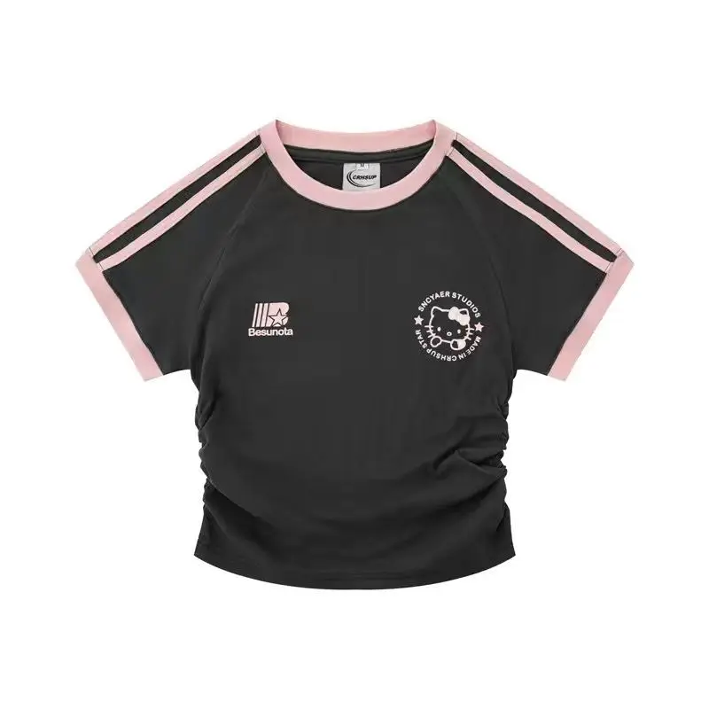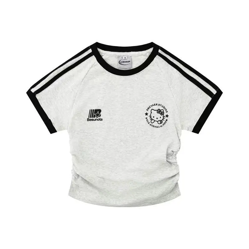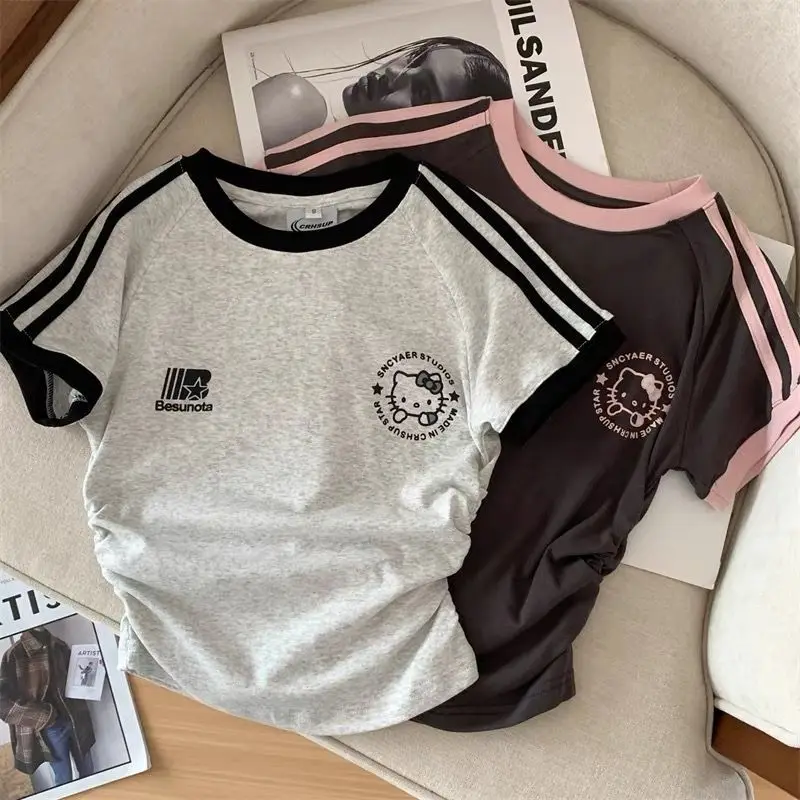 سانريوس مرحبا كيتي فتاة القطن تي شيرت أنيمي الصيف قصيرة الأكمام بلايز لطيف ملابس رياضية فضفاضة غير رسمية الكرتون طاقم الرقبة البلوز