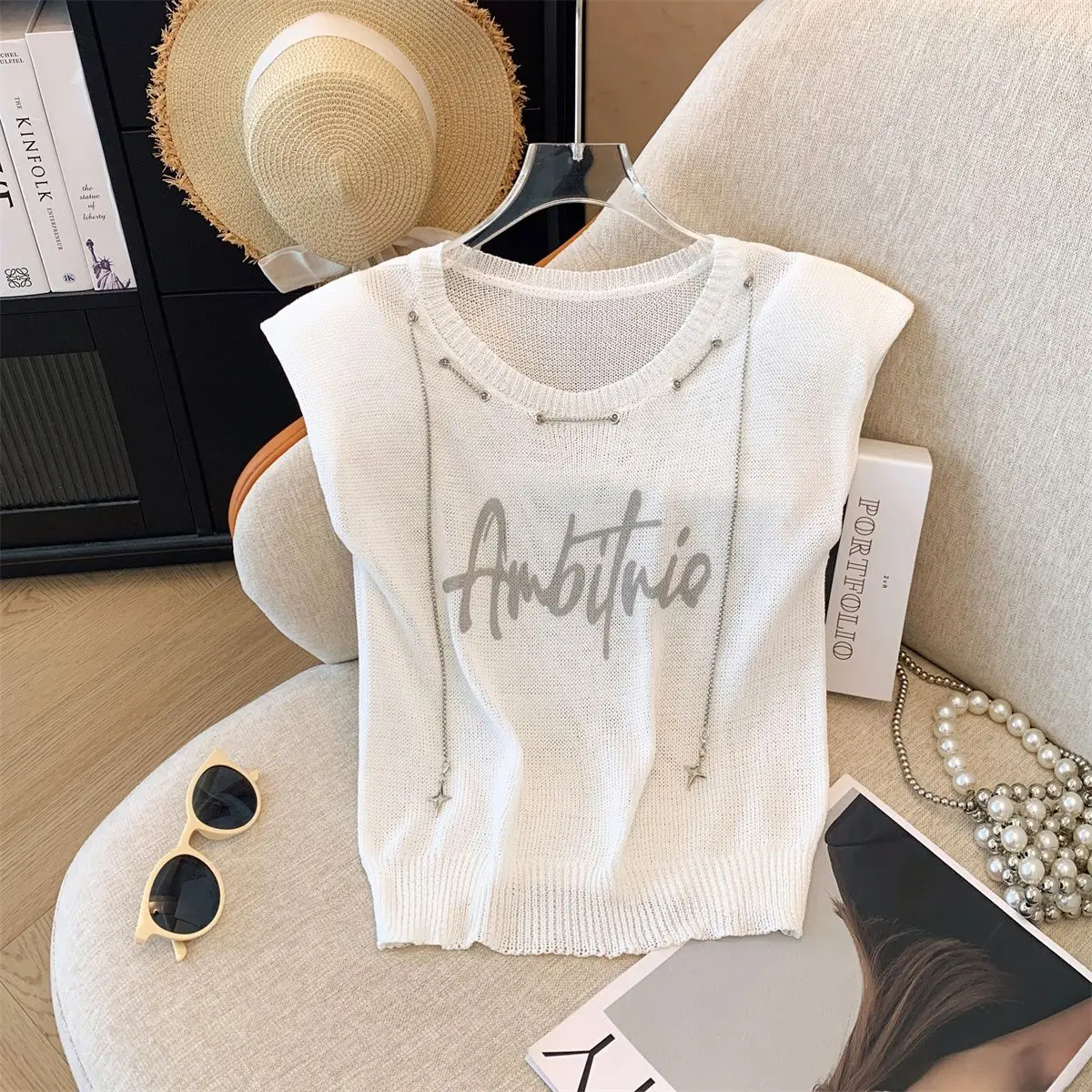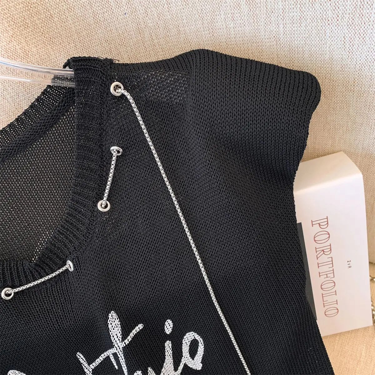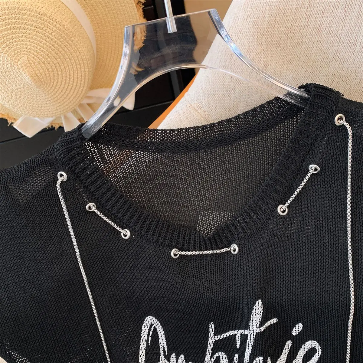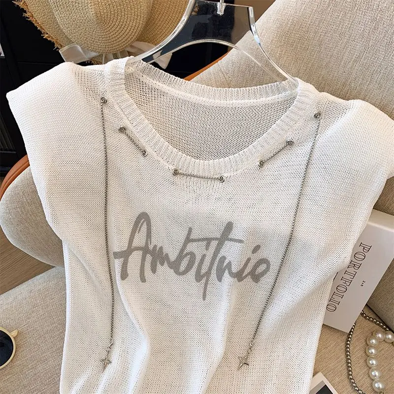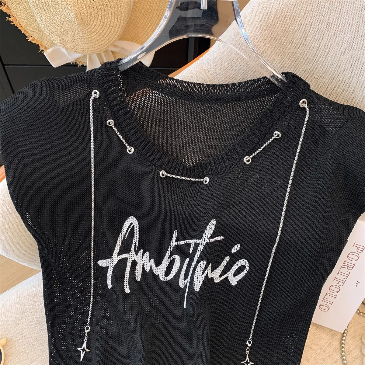 سترة برقبة دائرية بطباعة أحادية الشكل ، بلوزة عصرية مقطوعة ، سترة بأكمام فضفاضة وضيقة متعددة الاستخدامات ، سلسلة ، جديدة ، صيفية