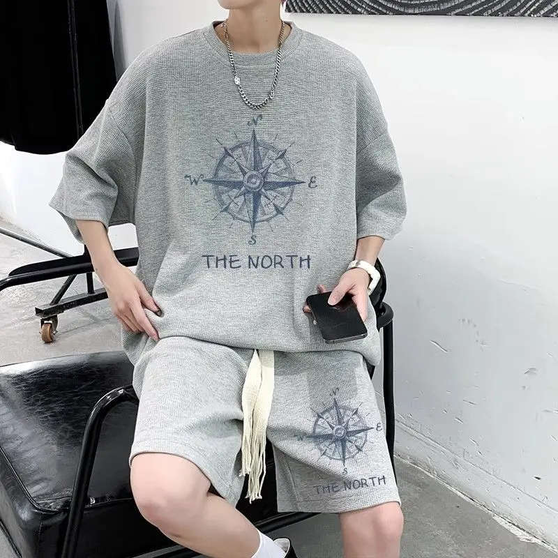 شورت رجالي برقبة دائرية وأكمام قصيرة تي شيرت مقاوم للتجاعيد وقابل للتنفس نسيج علوي بدلة رياضية متعددة الاستخدامات