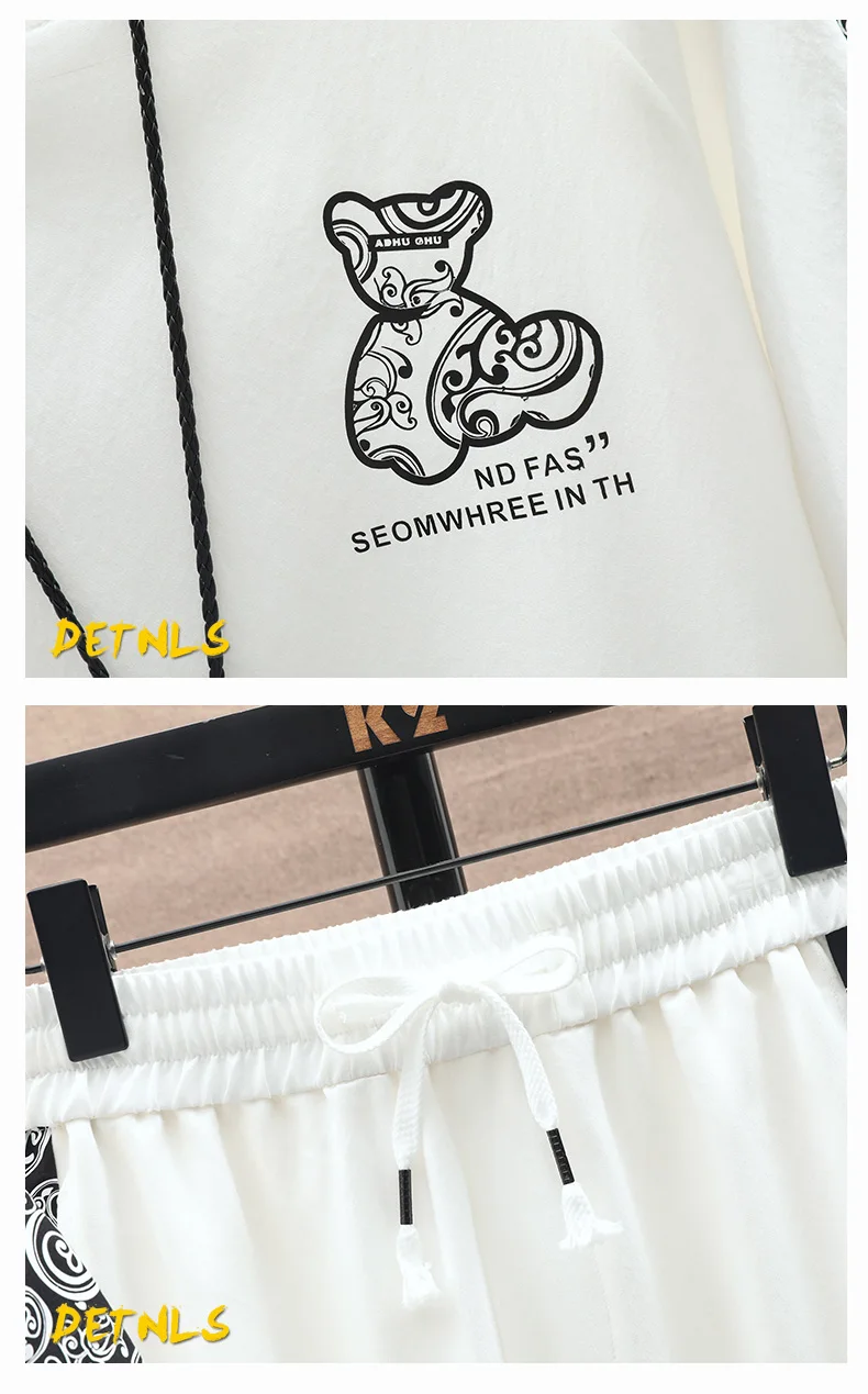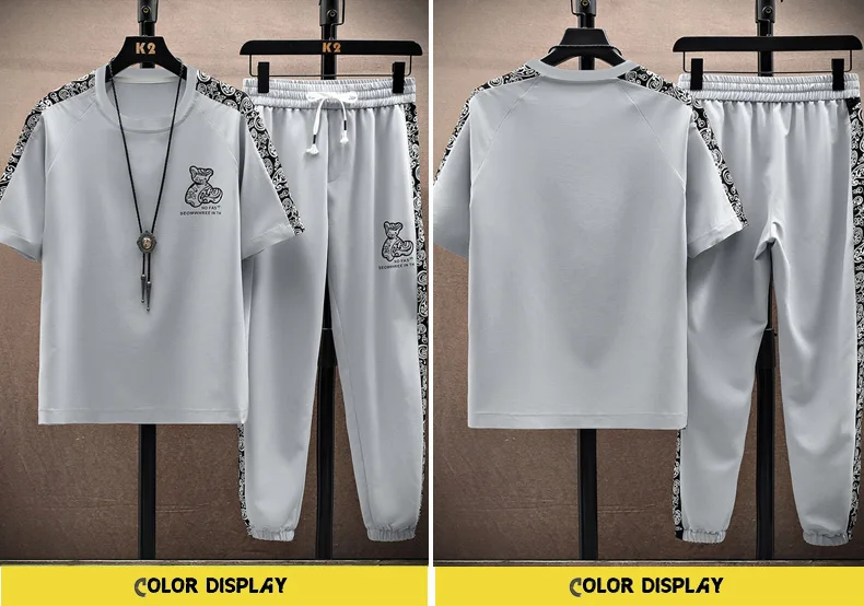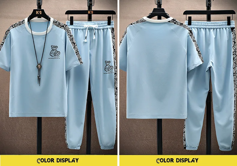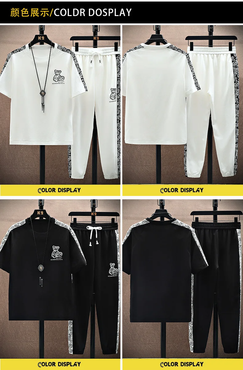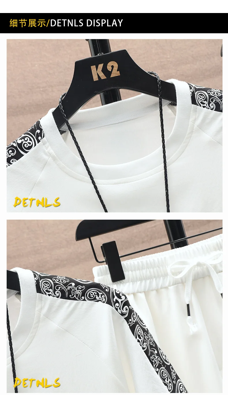 طقم بذلة رياضية من الحرير الجليدي للرجال ، تي شيرت وبنطال بأكمام قصيرة ، بنطال رياضي غير رسمي كلاسيكي ، الصيف ، بنطلون ، تيشيرتات على الموضة ، 2