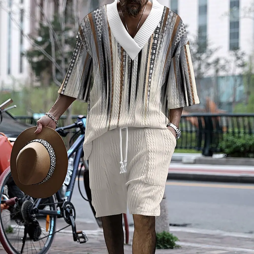 طقم تي شيرت رجالي مطبوع ثلاثي الأبعاد رائع من قطعتين وشورت ، ملابس برقبة على شكل حرف V ، بأكمام قصيرة ، جودة عالية ، جديد ، الصيف ، ، ، ، ، ، ، ، من