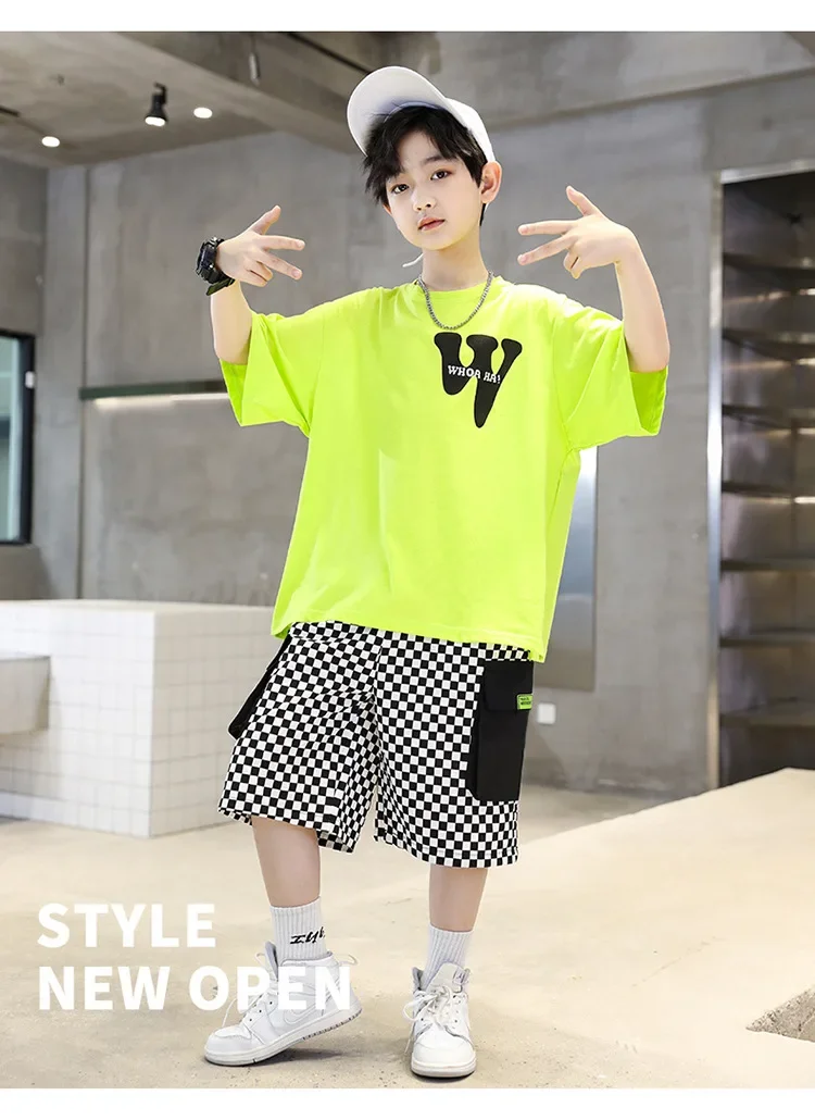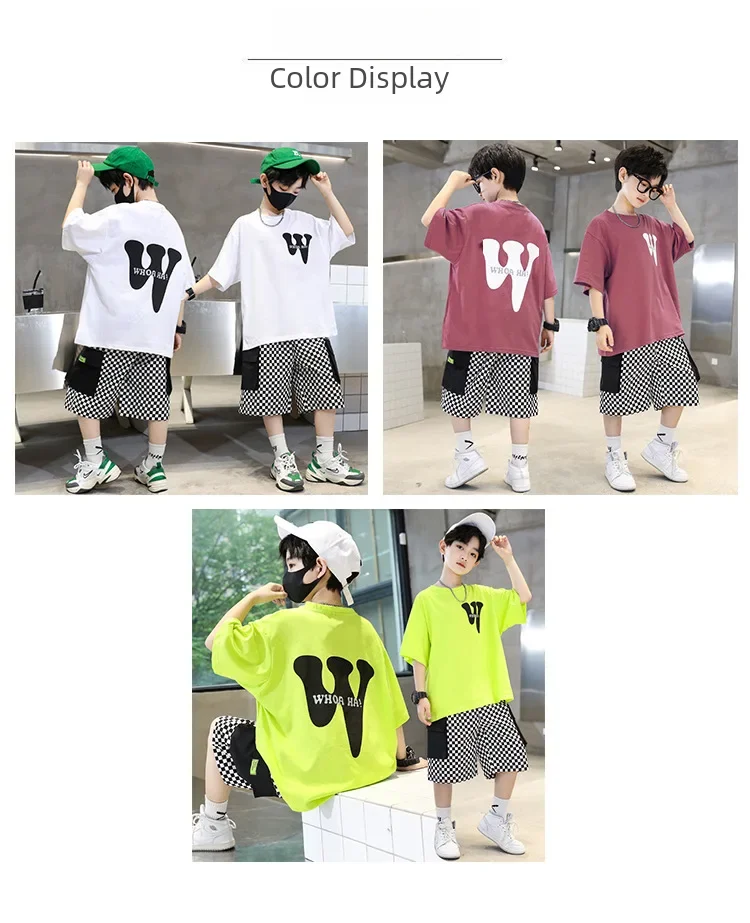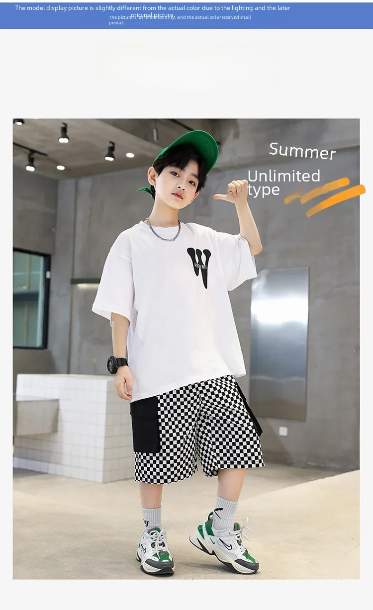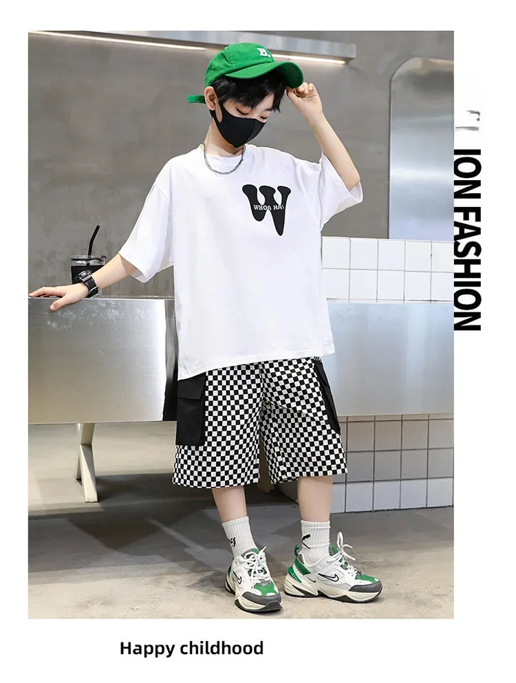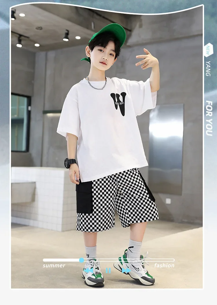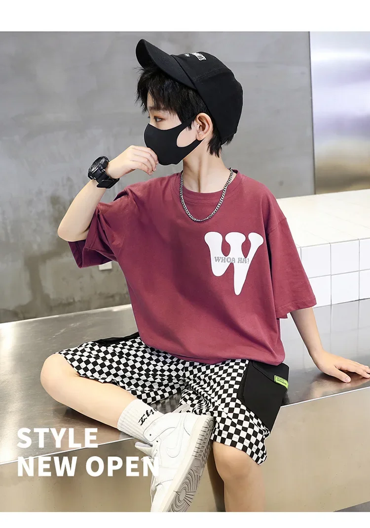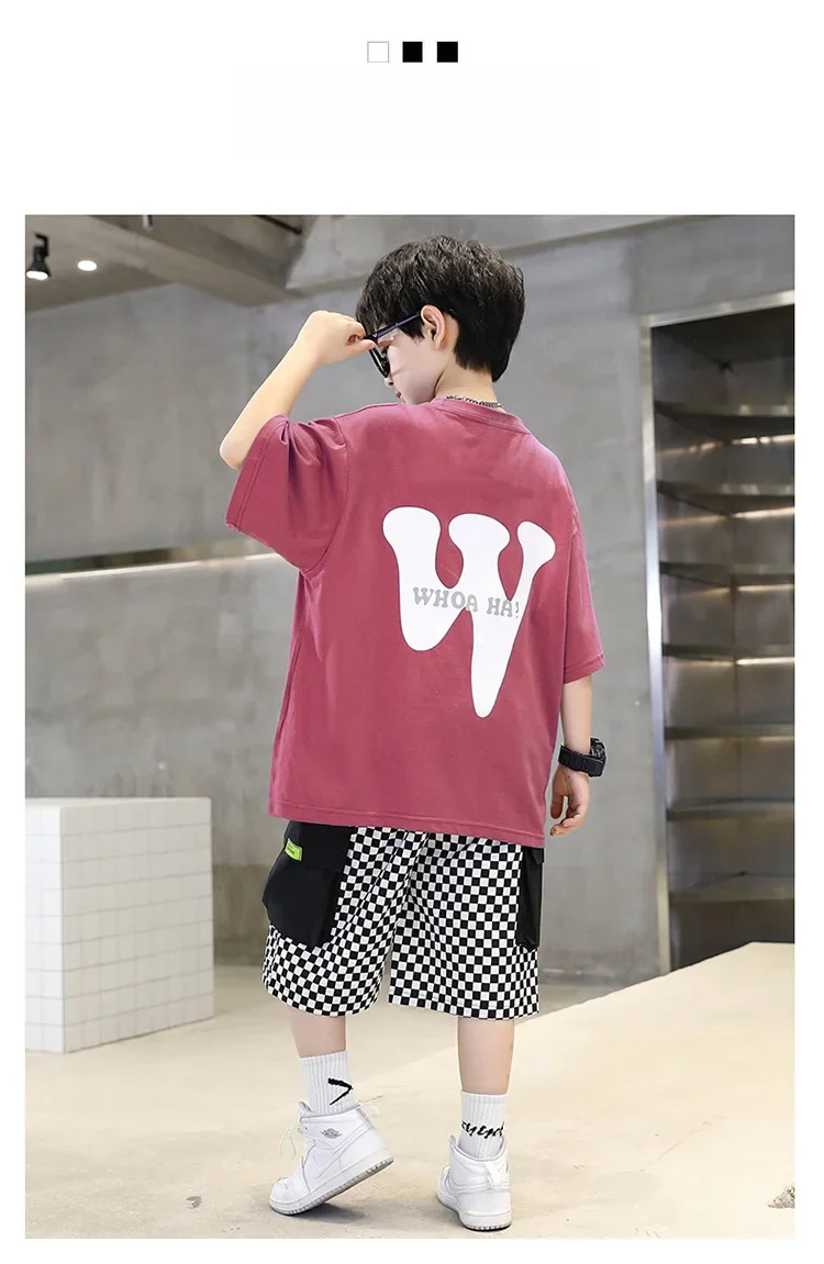 طقم قميص وسراويل قصيرة الأكمام للأولاد ، بدلة صيفية للأولاد الصغار ، ملابس رجالية قوية في الشوارع ، طراز جديد ،