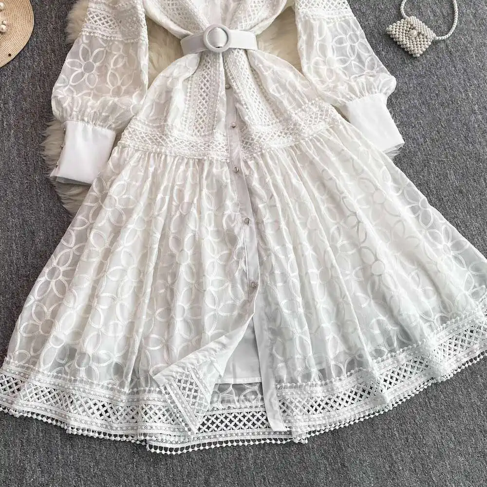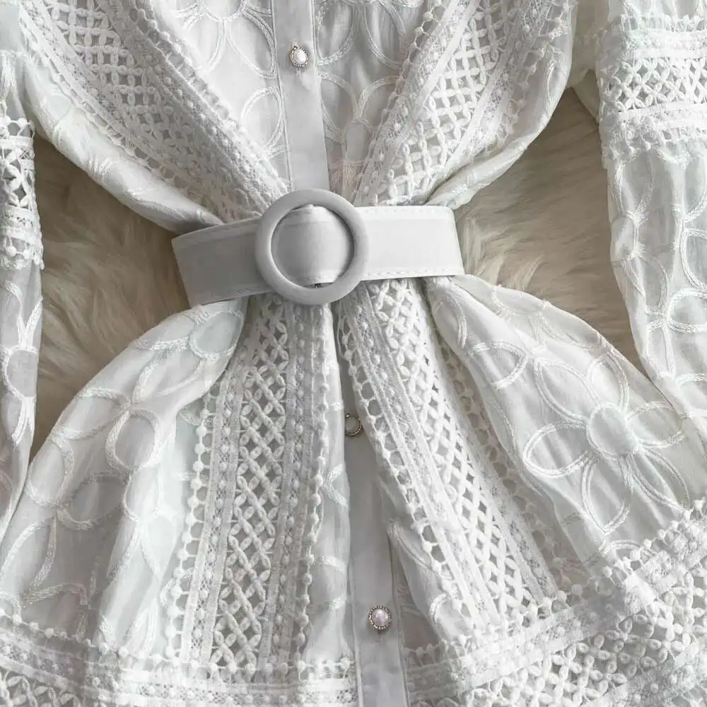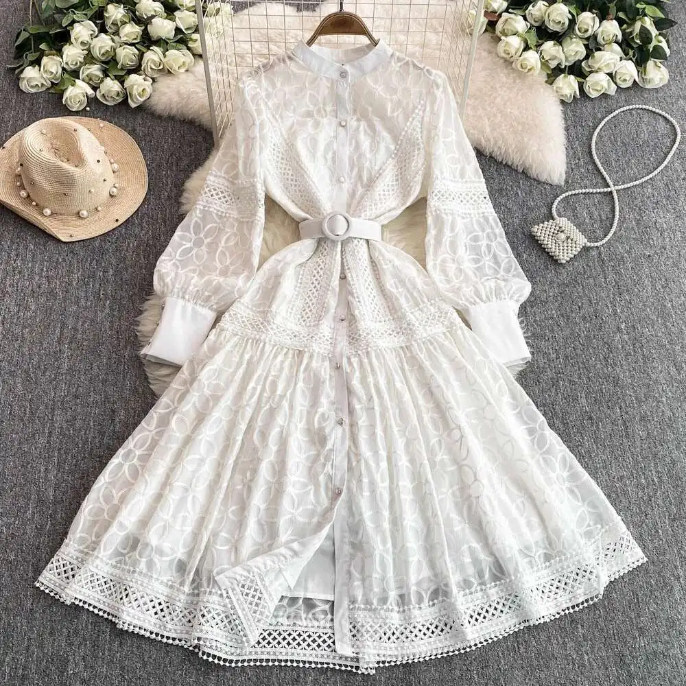 فساتين ميدي بيضاء فاخرة للنساء صيفية على طراز القصر واحدة الصدر مطرزة باللؤلؤ والدانتيل للحفلات المسائية وحفلات الزفاف فستان طويل