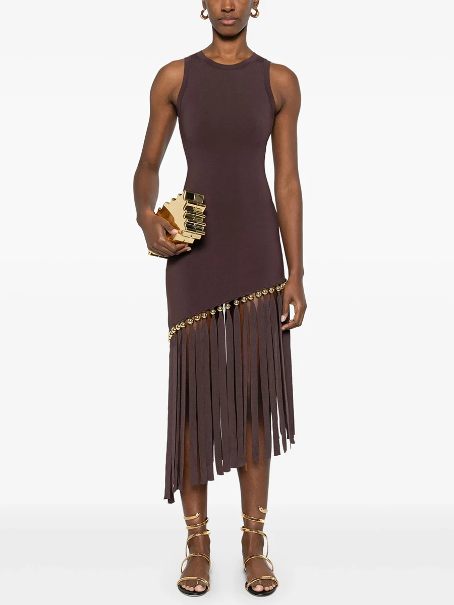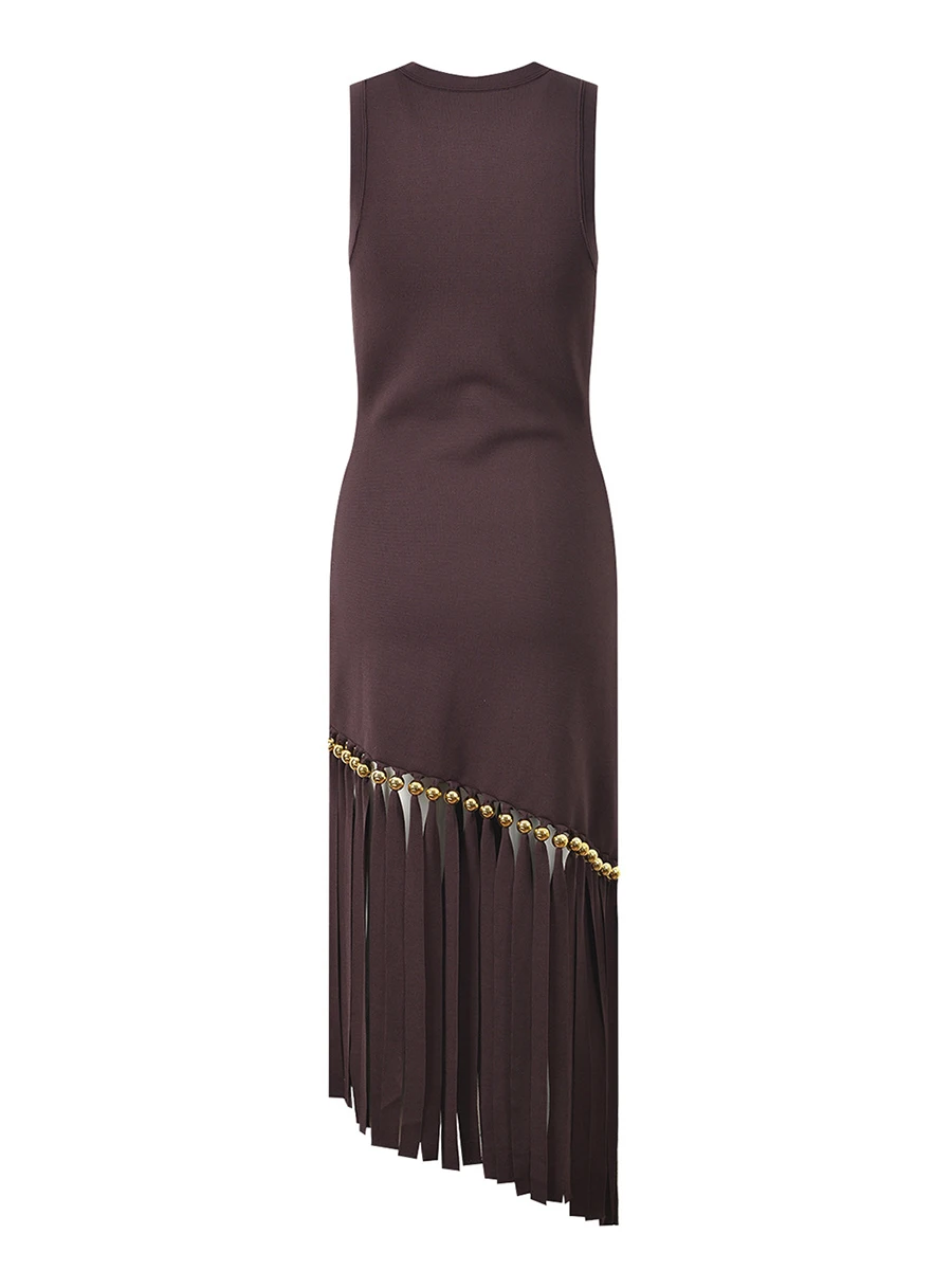 فساتين VGH بقصة ضيقة ومزاجية متينة للنساء برقبة دائرية بدون أكمام وخصر عالي وشرابات فستان أنيق طراز نسائي جديد