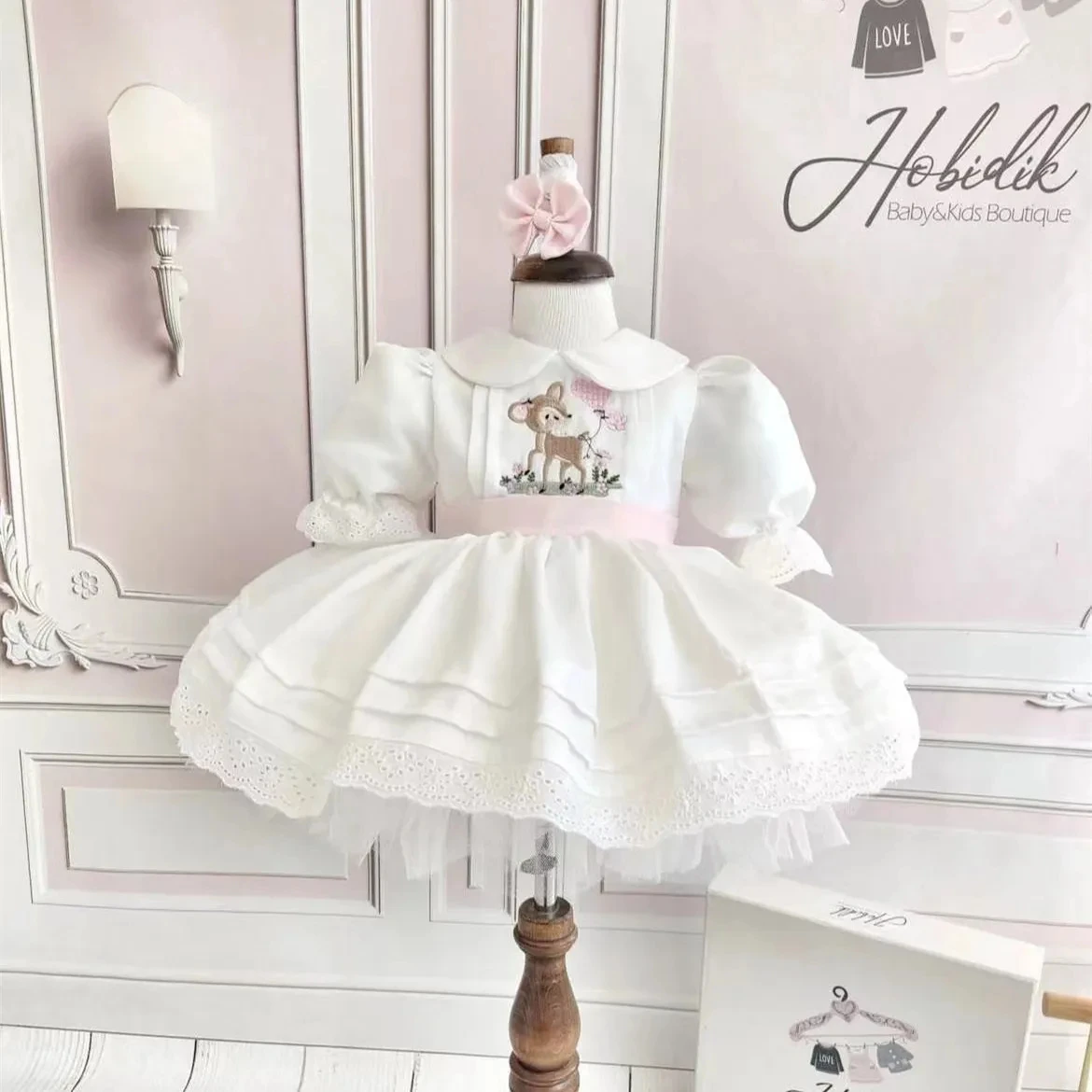 فستان أميرة تركي عتيق للفتيات الصغيرات ، تطريز غزال أبيض ، أعياد الميلاد والعطلات ، تصوير عيد الفصح ، الصيف ، 0-12 عام